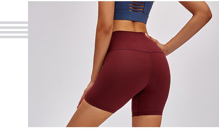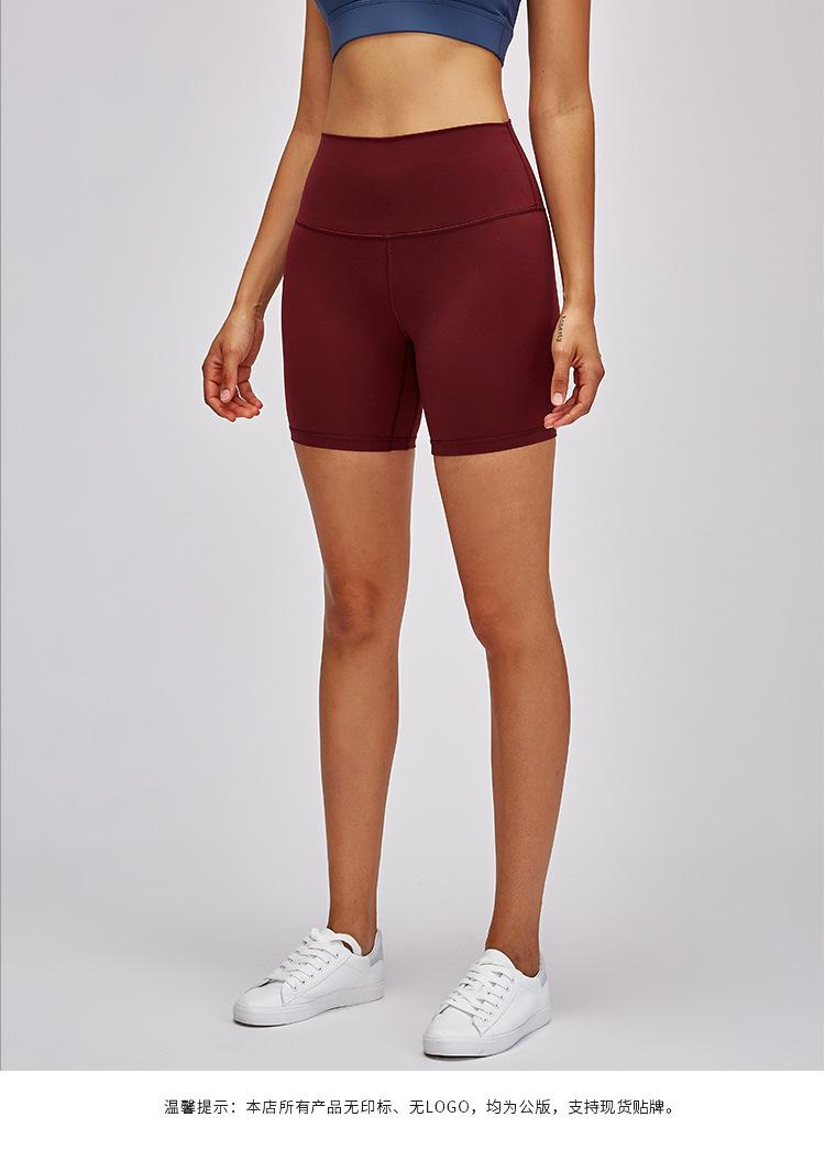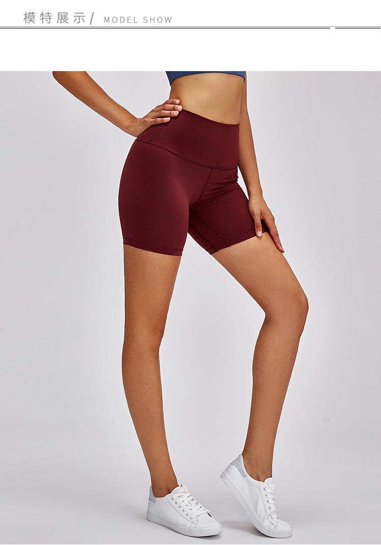 Europeo y Americano Nuevo Cintura Alta Levanta Cadera Ajustado Elástico Entrenamiento Deportes Pantalones Cortos Calientes Mujeres Color Sólido Sensación Desnuda Shorts de Yoga
