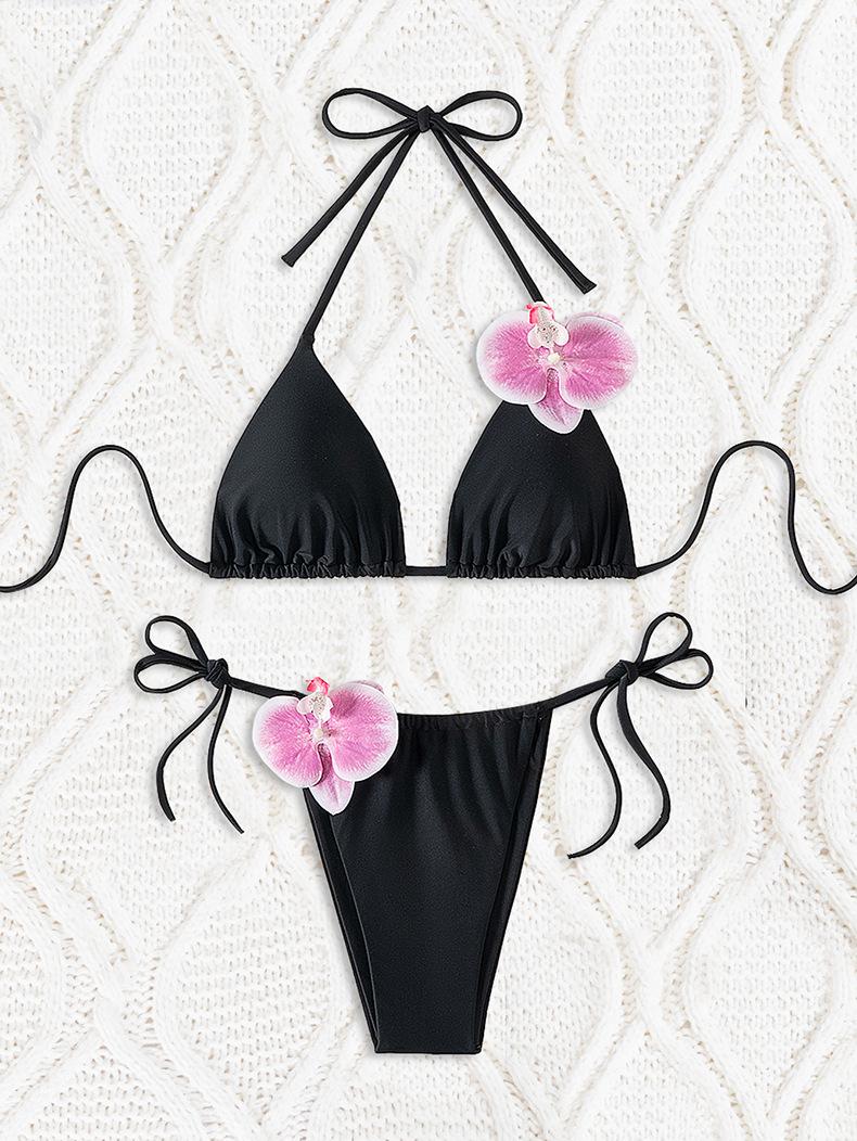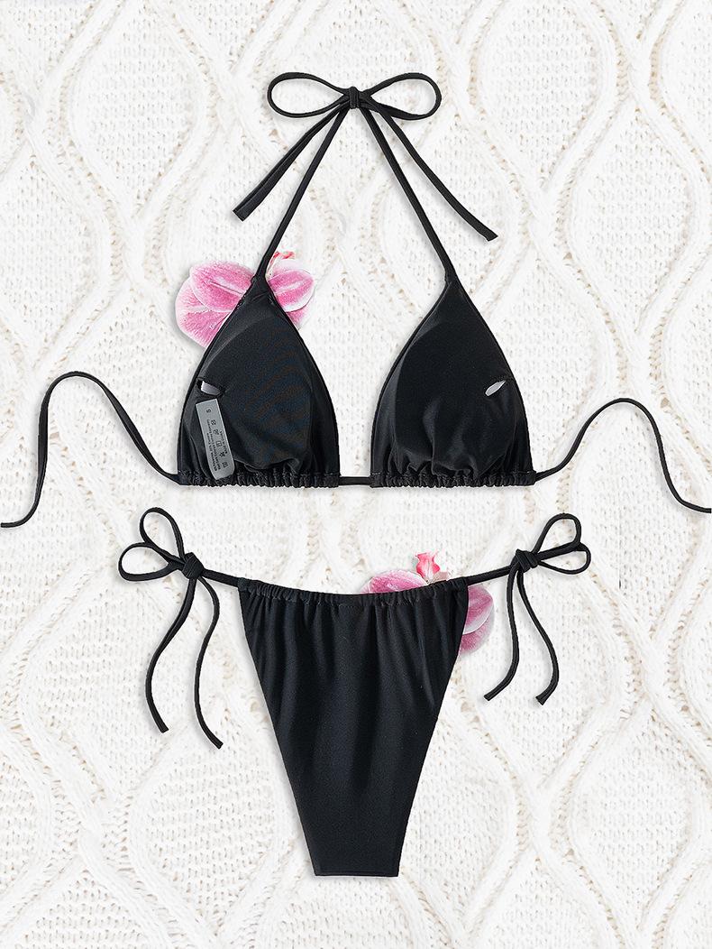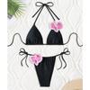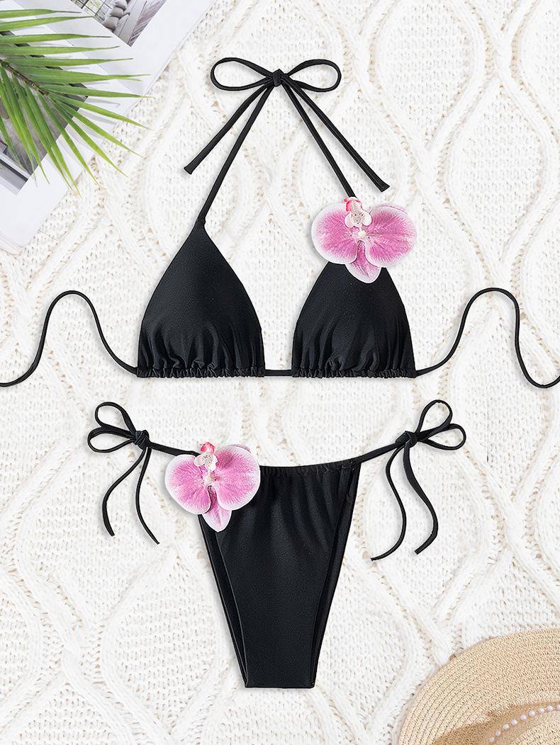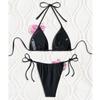 Traje de Baño Dividido Transfronterizo Nuevo 2025 Sexy Bikini Negro Traje de Baño Calcomanía Exportación Bikini Ropa de Playa Europea y Americana