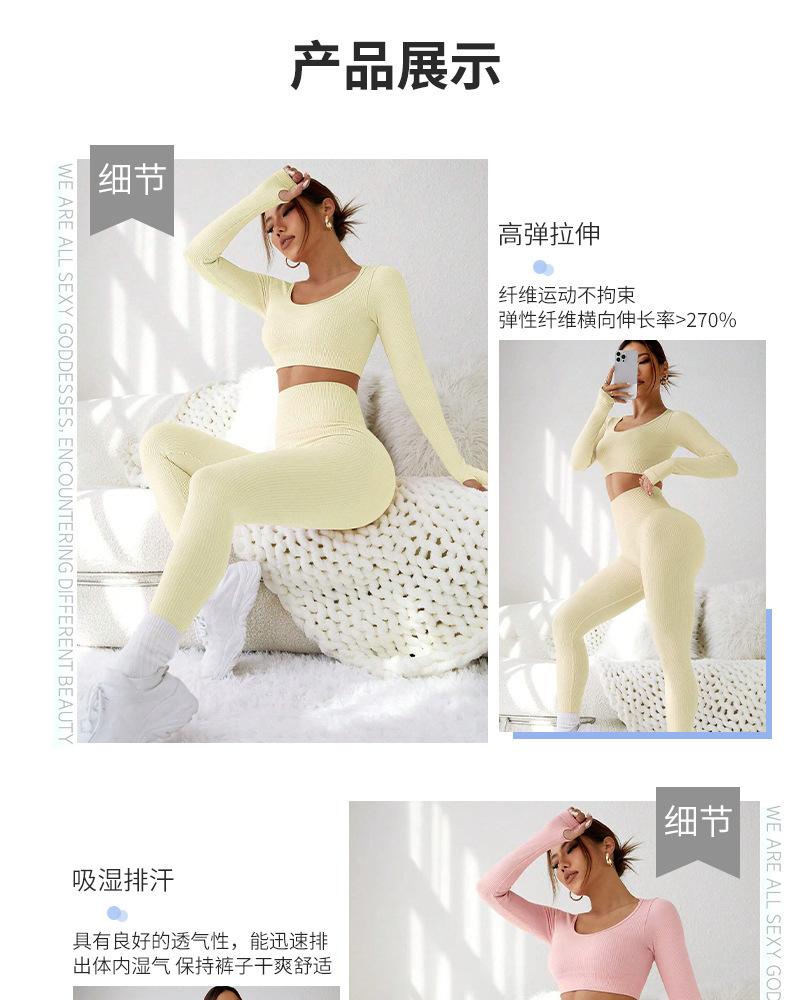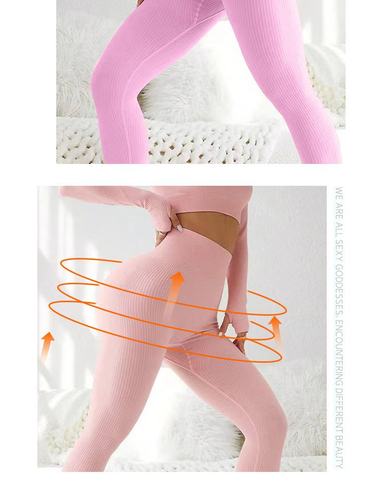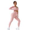 Traje Deportivo Seamless Europeo y Americano para Mujer, Pantalones de Fitness Levanta Glúteos Melocotón, Ropa de Yoga para Correr al Aire Libre, Conjunto de Dos Piezas de Manga Larga con Espalda Hermosa