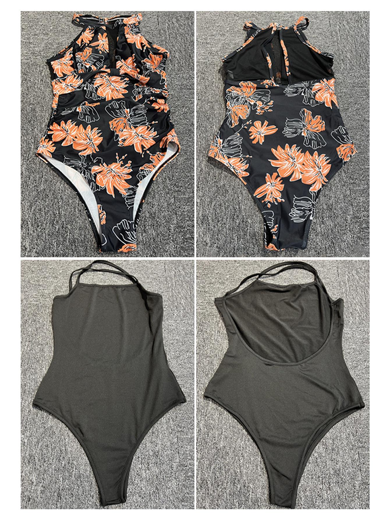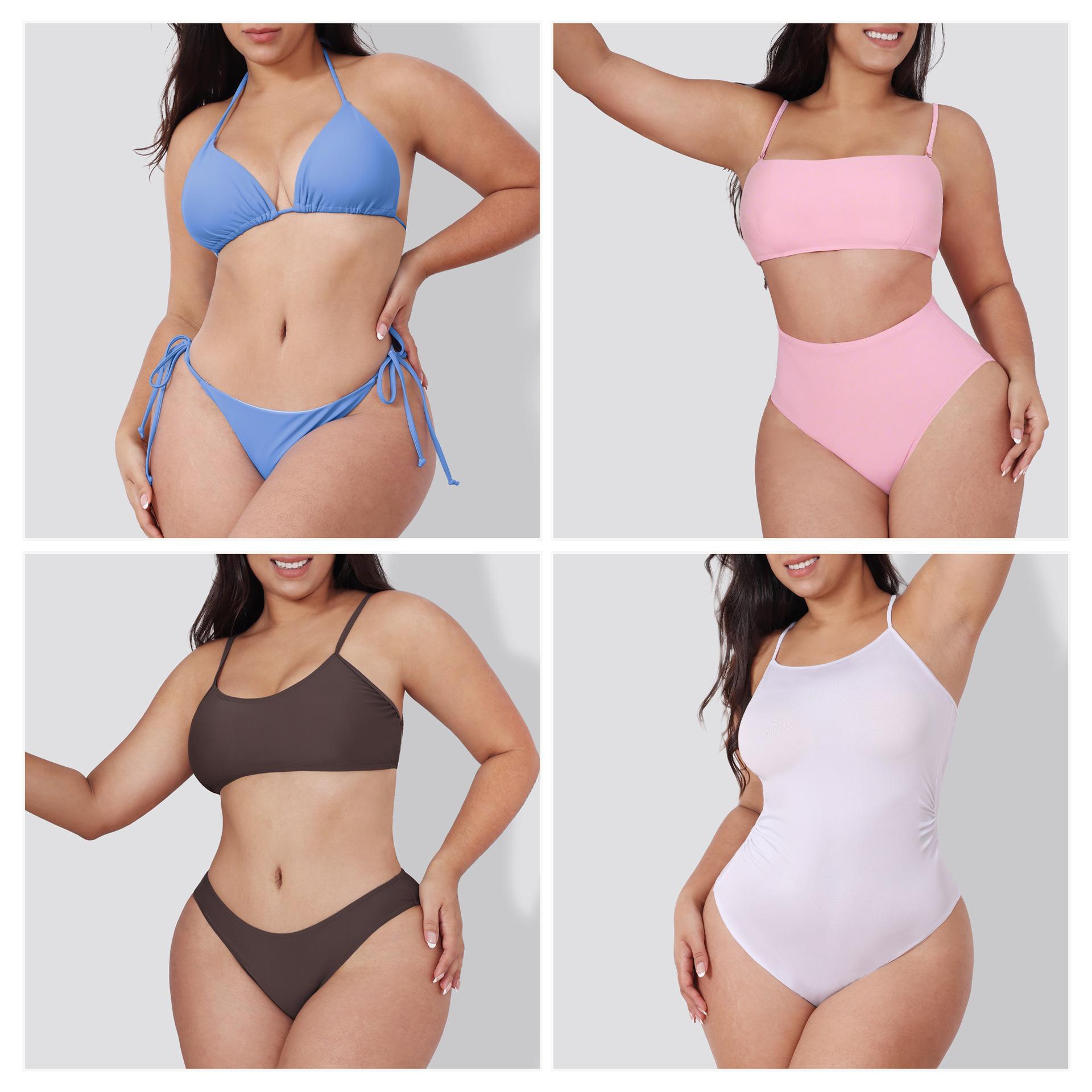 Traje de Baño Talla Grande Cubre Carne Comercio Exterior Bikini Push-Up Espalda Cruzada Descubierta Traje de Baño Triángulo de Una Pieza para Aguas Termales Personalización para Mujer