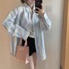 Cárdigan de Manga Larga Nuevo Transfronterizo Europeo y Americano de Primavera y Otoño Rayado Suelto Talla Grande Top Casual