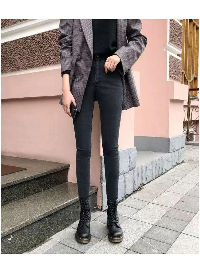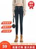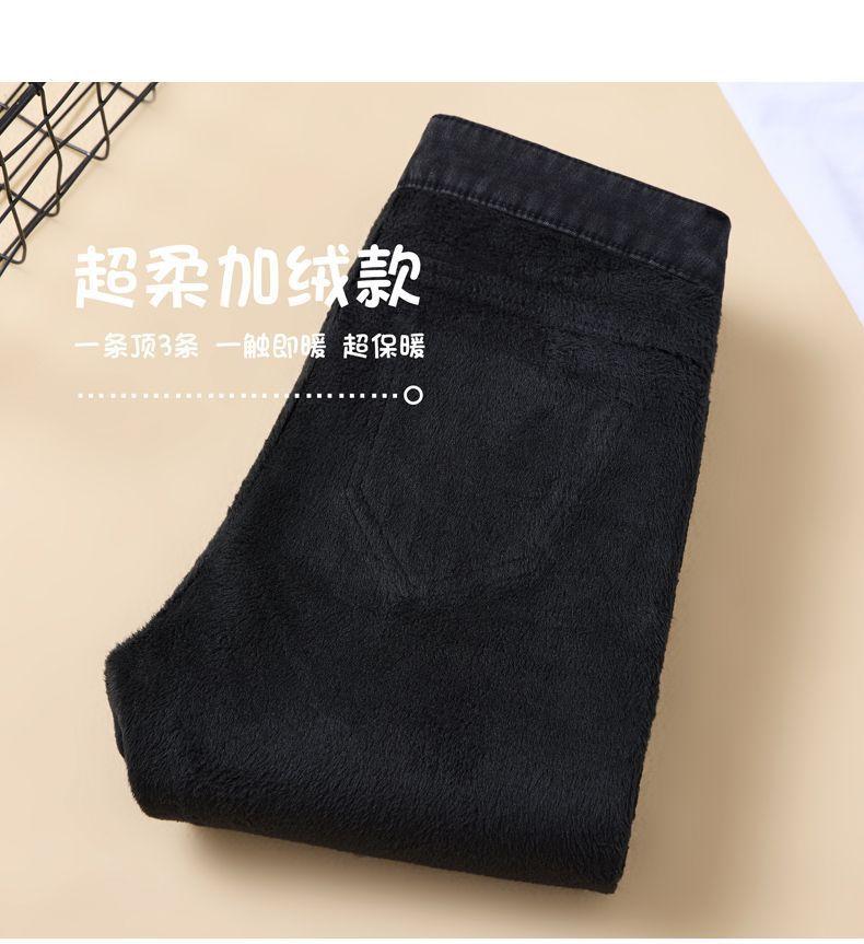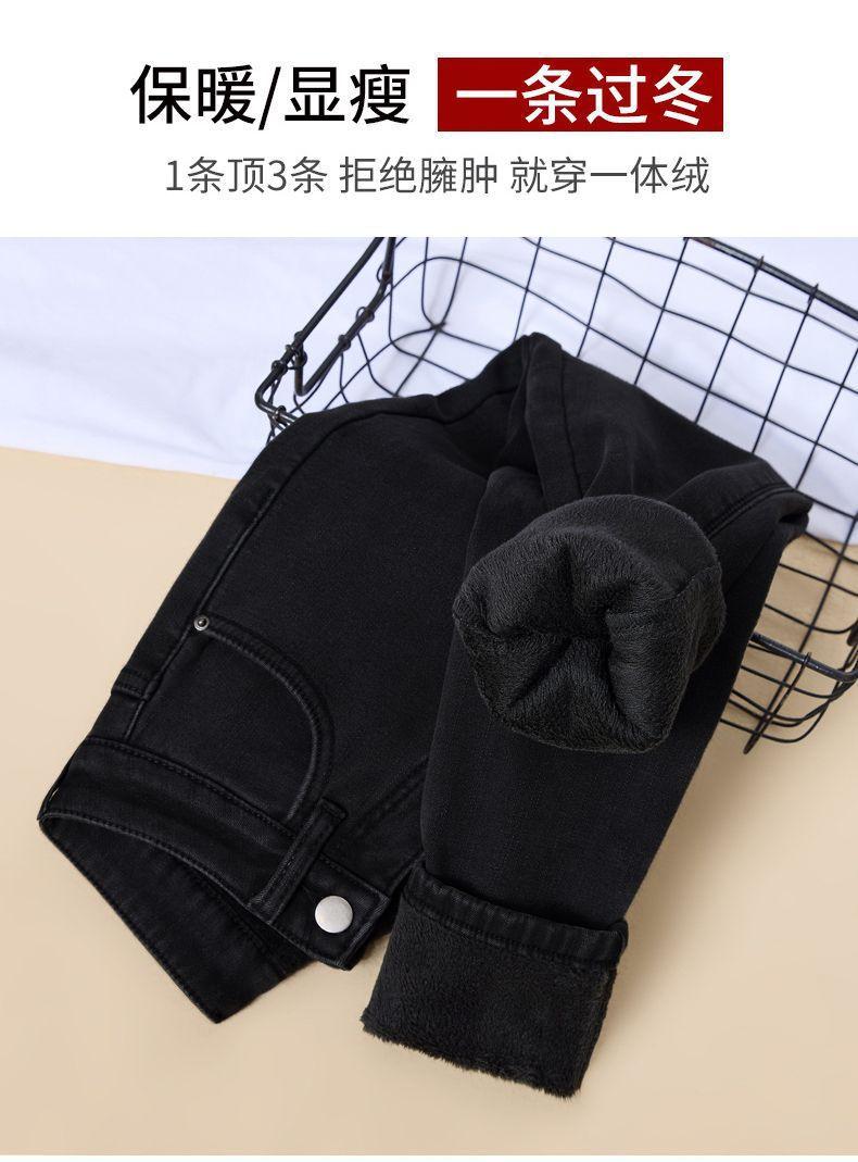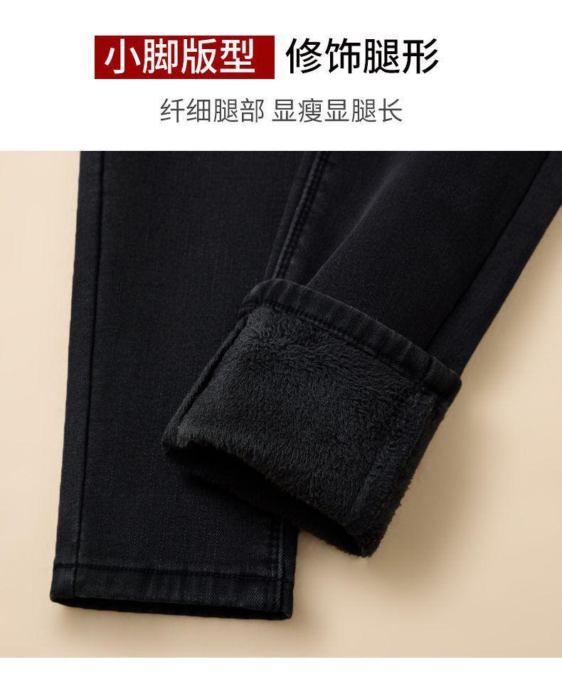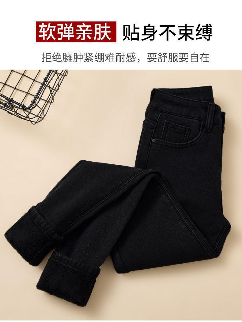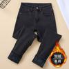 Jeans Slim para Mujer Primavera 2025 Nuevo Invierno Forrado de Felpa Cintura Alta Look Adelgazante Elásticos Ajustados Pantalones Lápiz para Pies Pequeños