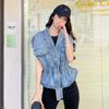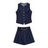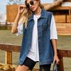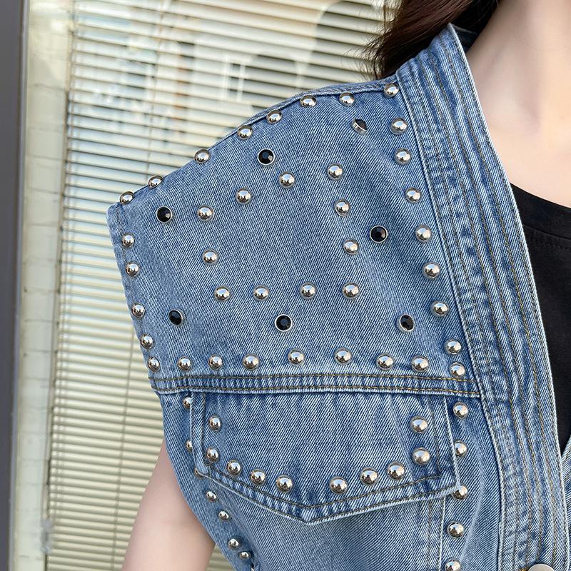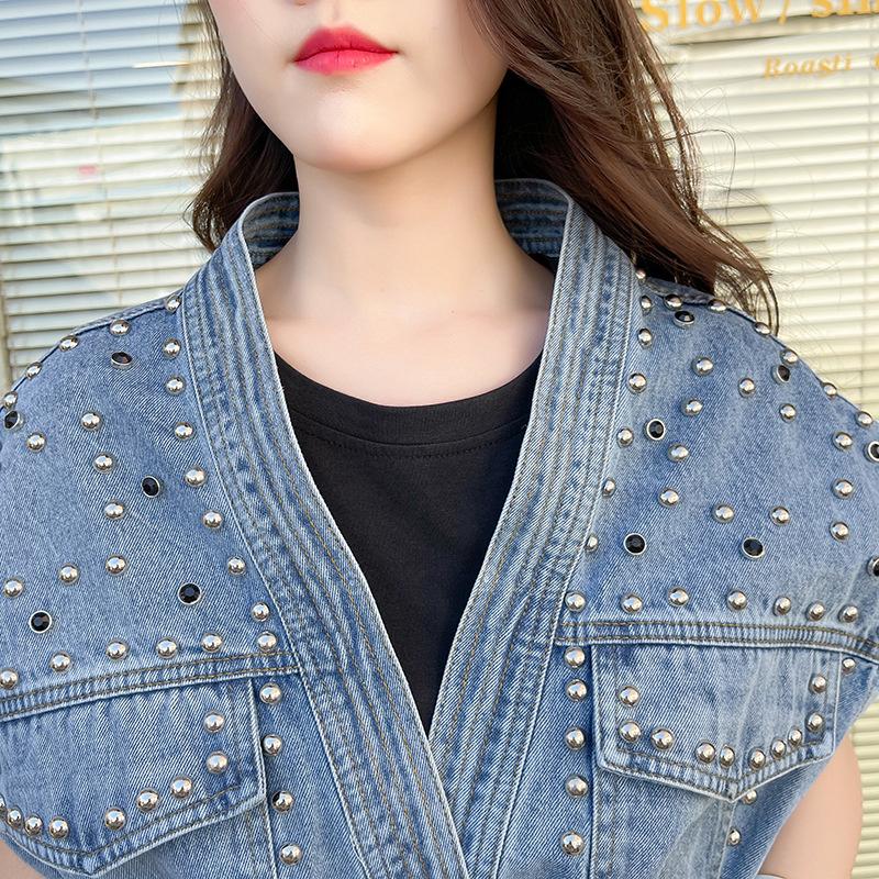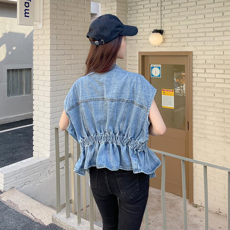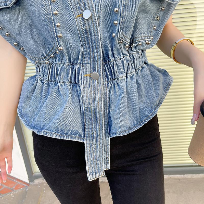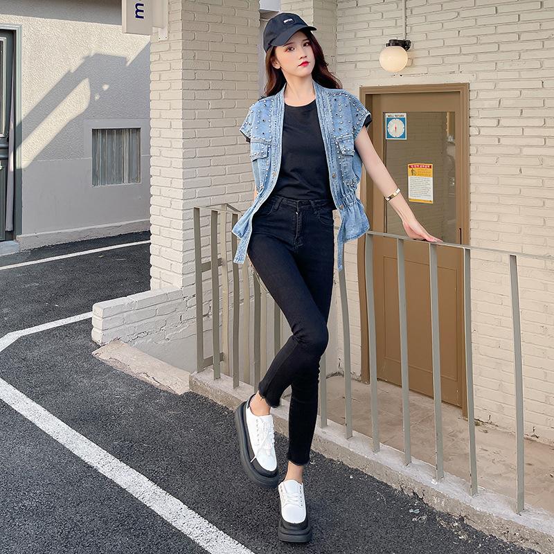 Nuevo Estilo Transfronterizo Cintura con Cuentas Adelgazante Holgado Versátil Sin Mangas Suave Top Chaleco de Mezclilla