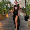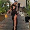 Vestido Sexy de Moda con Encaje Calado de Abertura Alta y Corte Slim sin Mangas, Novedad de Venta Caliente para Mujer