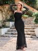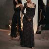 Estilo Europeo y Americano para Mujer Nuevo Sexy Elegante Chaleco Manga Larga Tirantes Gancho Encaje de Pestañas Vestido con Tirantes