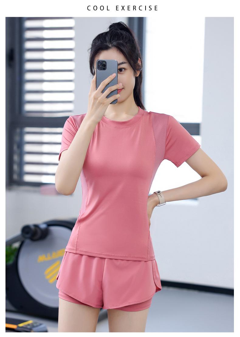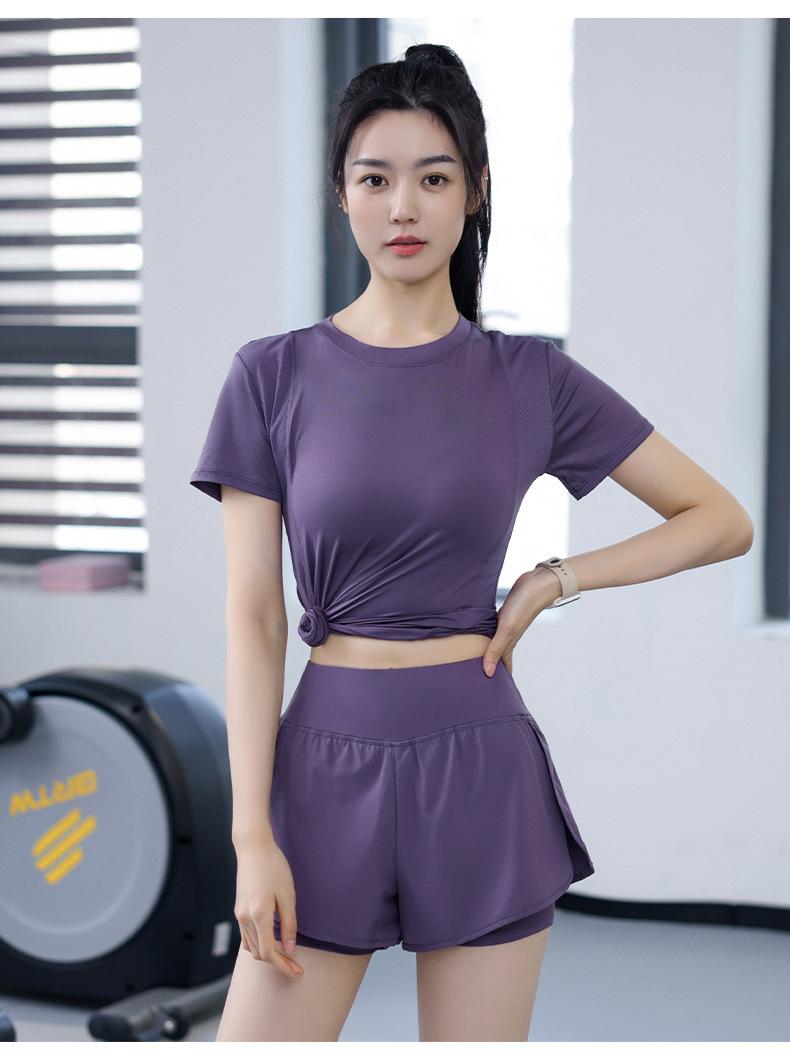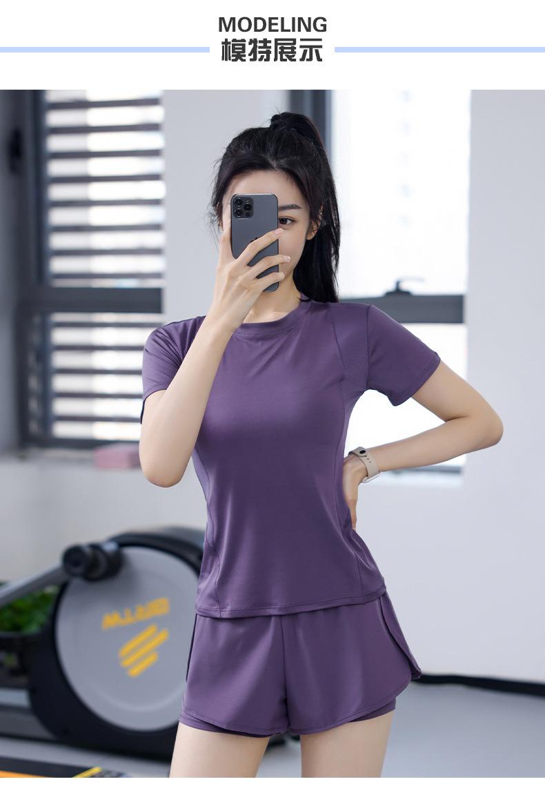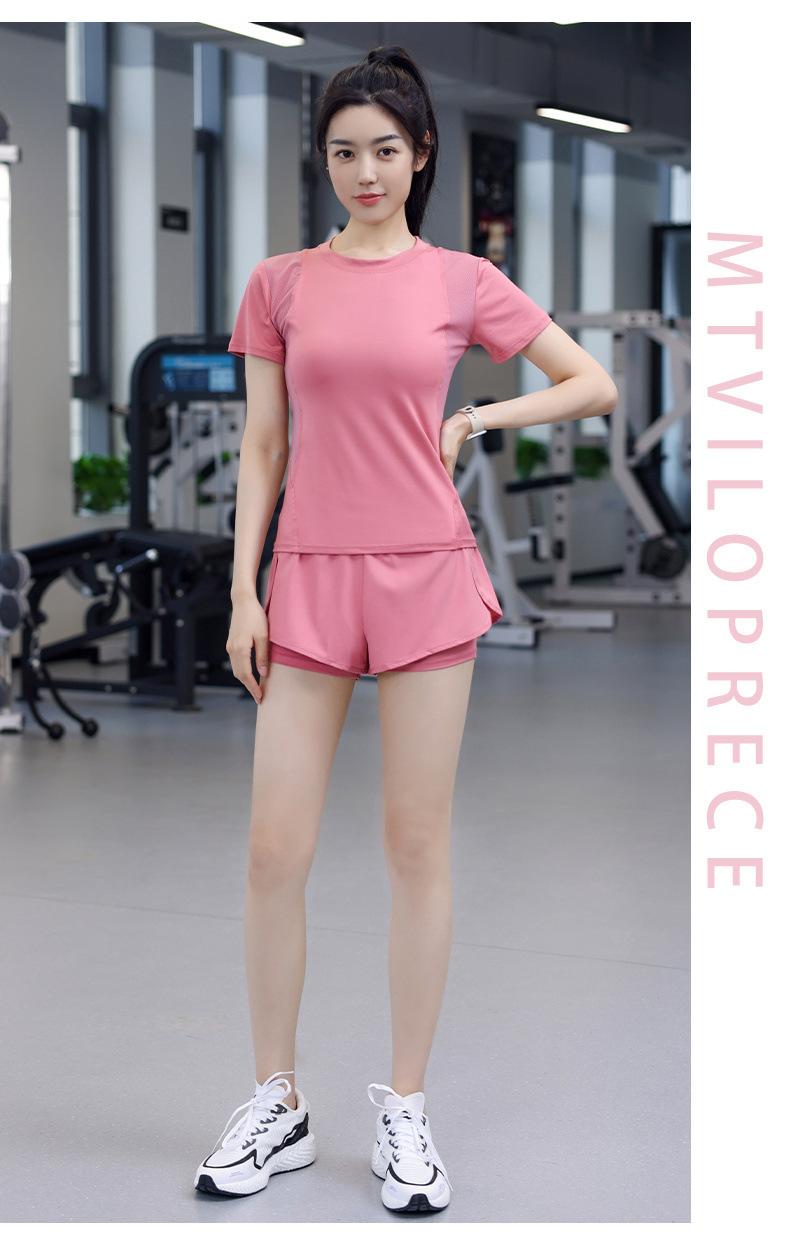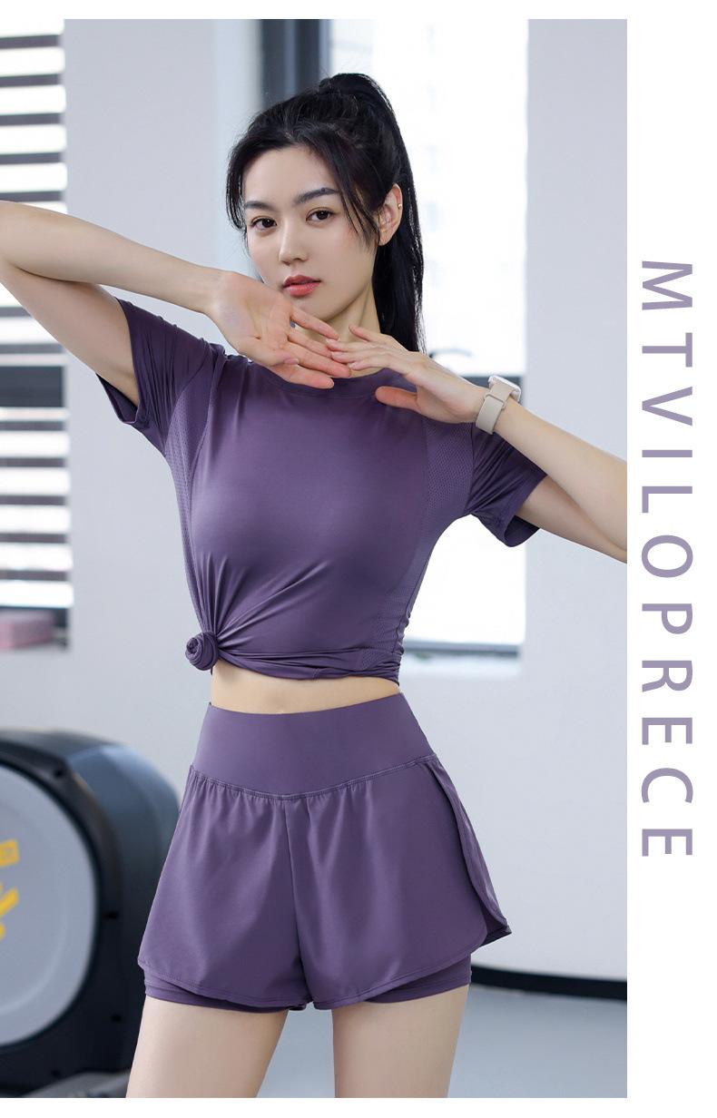 Traje de Ropa de Yoga para Mujer Conjunto de Dos Piezas de Entrenamiento de Manga Corta Nuevo 2025 Profesional de Alta Elasticidad Nude Deportivo para Correr Top