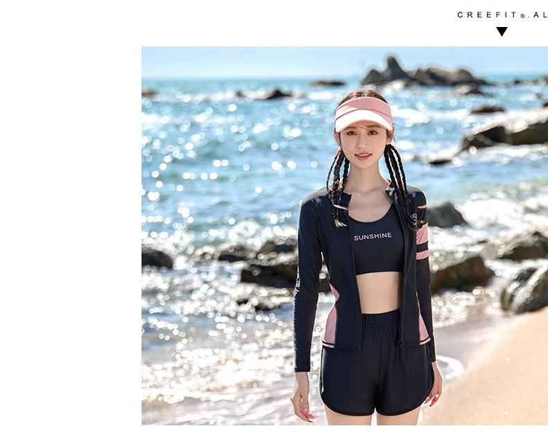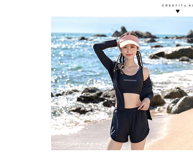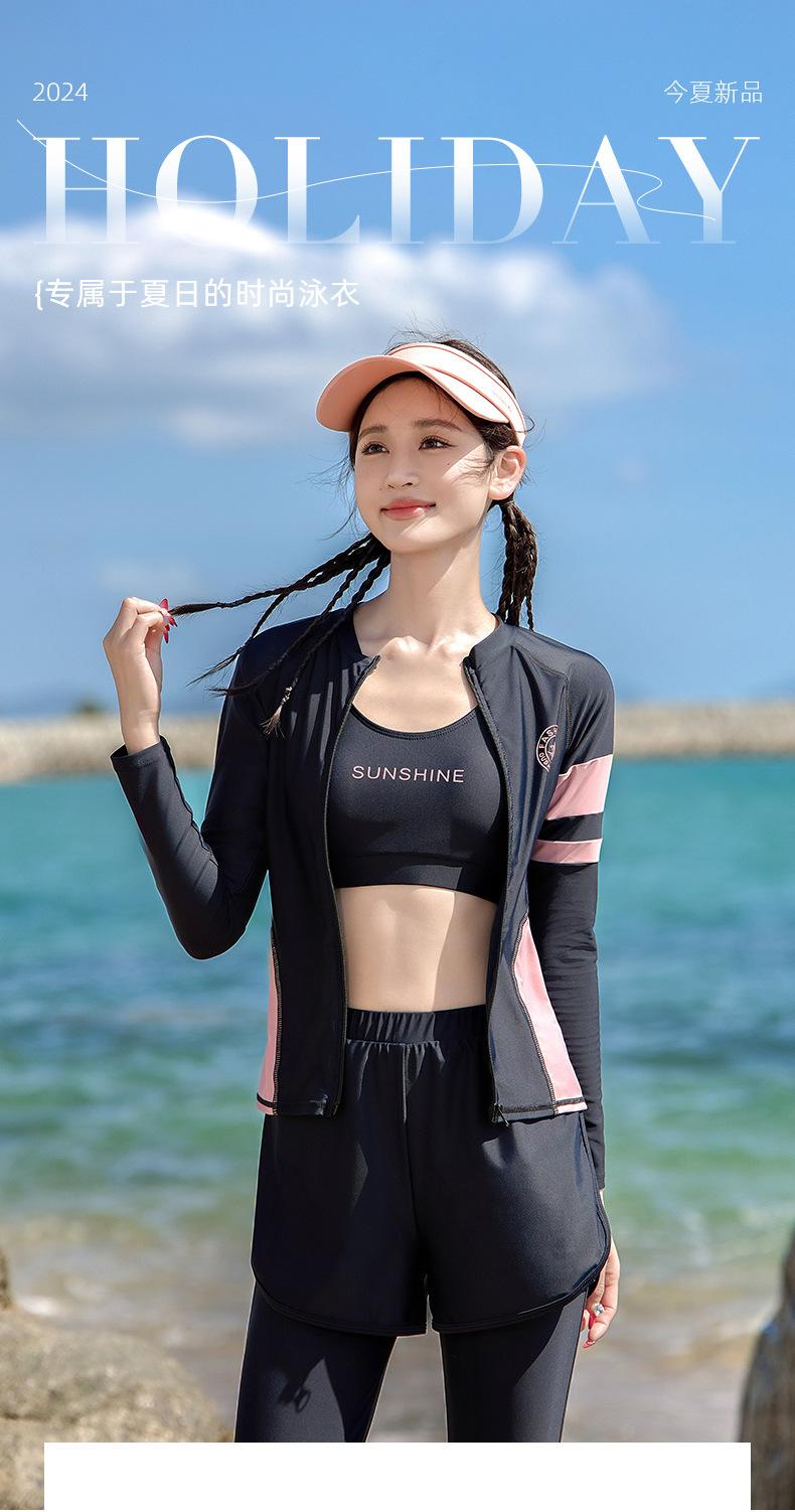 Traje de Baño Separado para Mujer 2024 Nuevo Estilo Natación Protección Solar Set de Cuatro Piezas Conservador Manga Larga Pantalón Largo Deportivo Surf Traje de Medusa