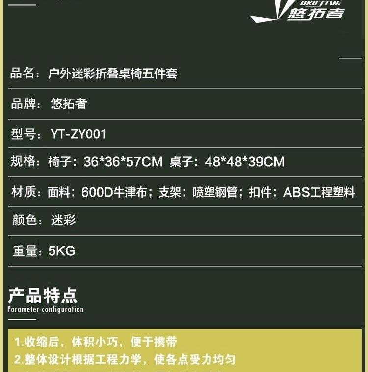 Juego de Mesa y Silla Plegable de Camuflaje Youtuoer de 5 Piezas Yt-Zy001