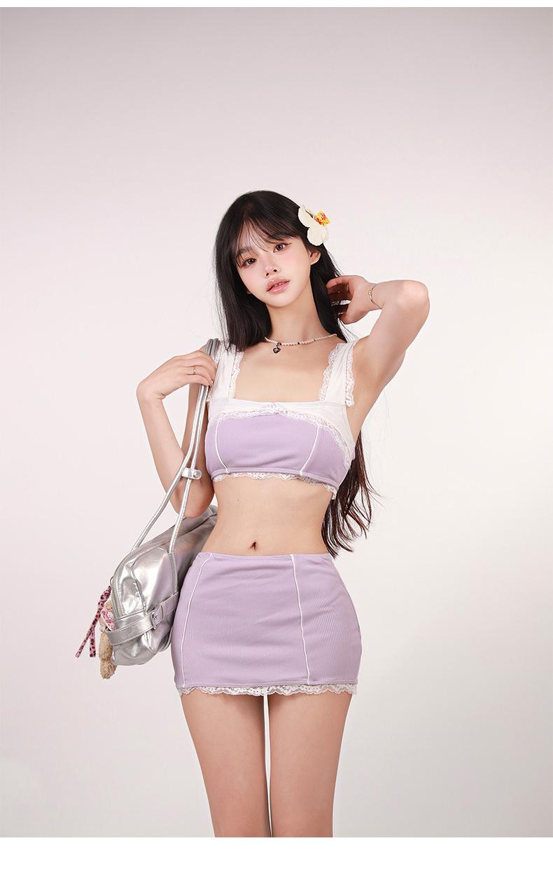 Traje de baño para mujer dividido senos pequeños sexy bikini traje de baño para aguas termales versión coreana adelgazante sin espalda falda púrpura súper hada