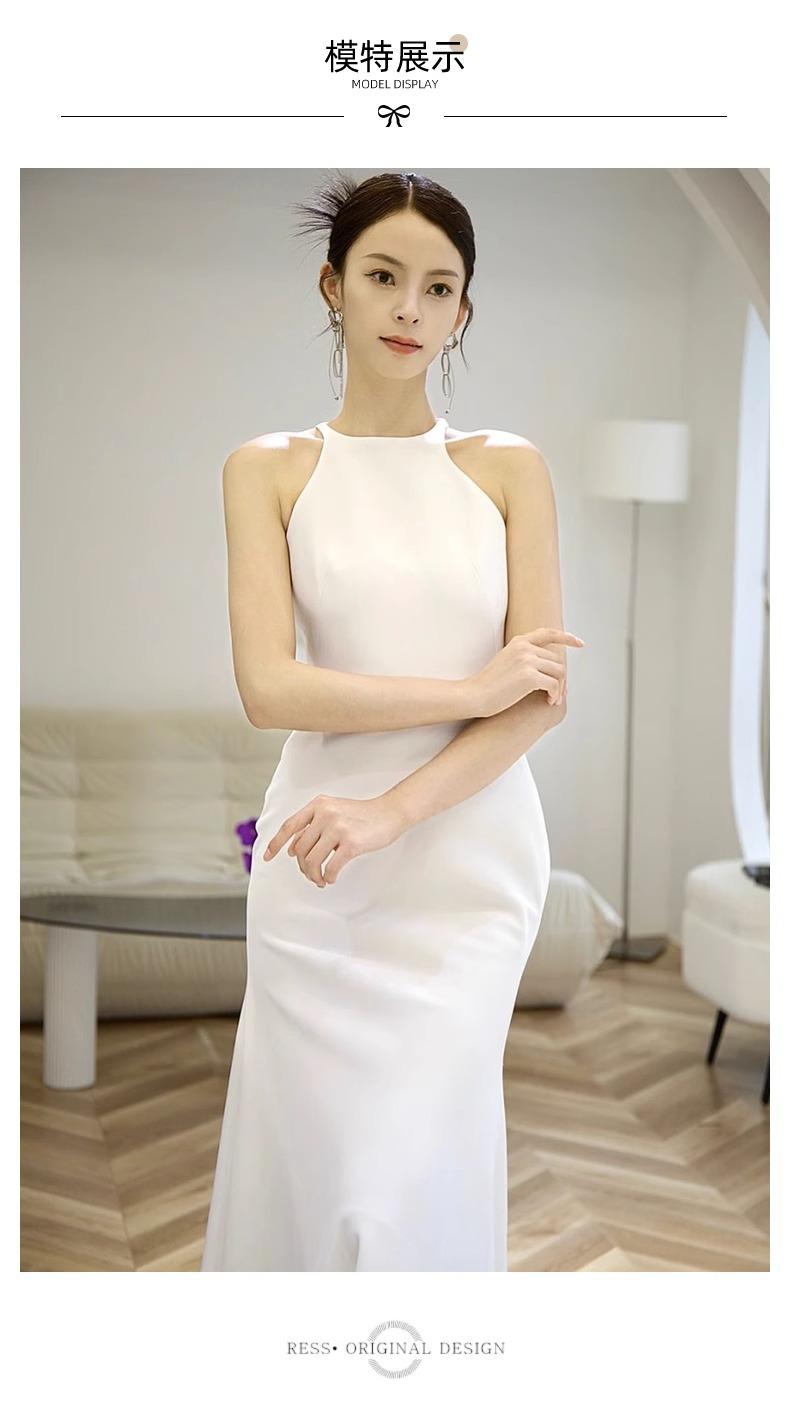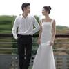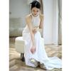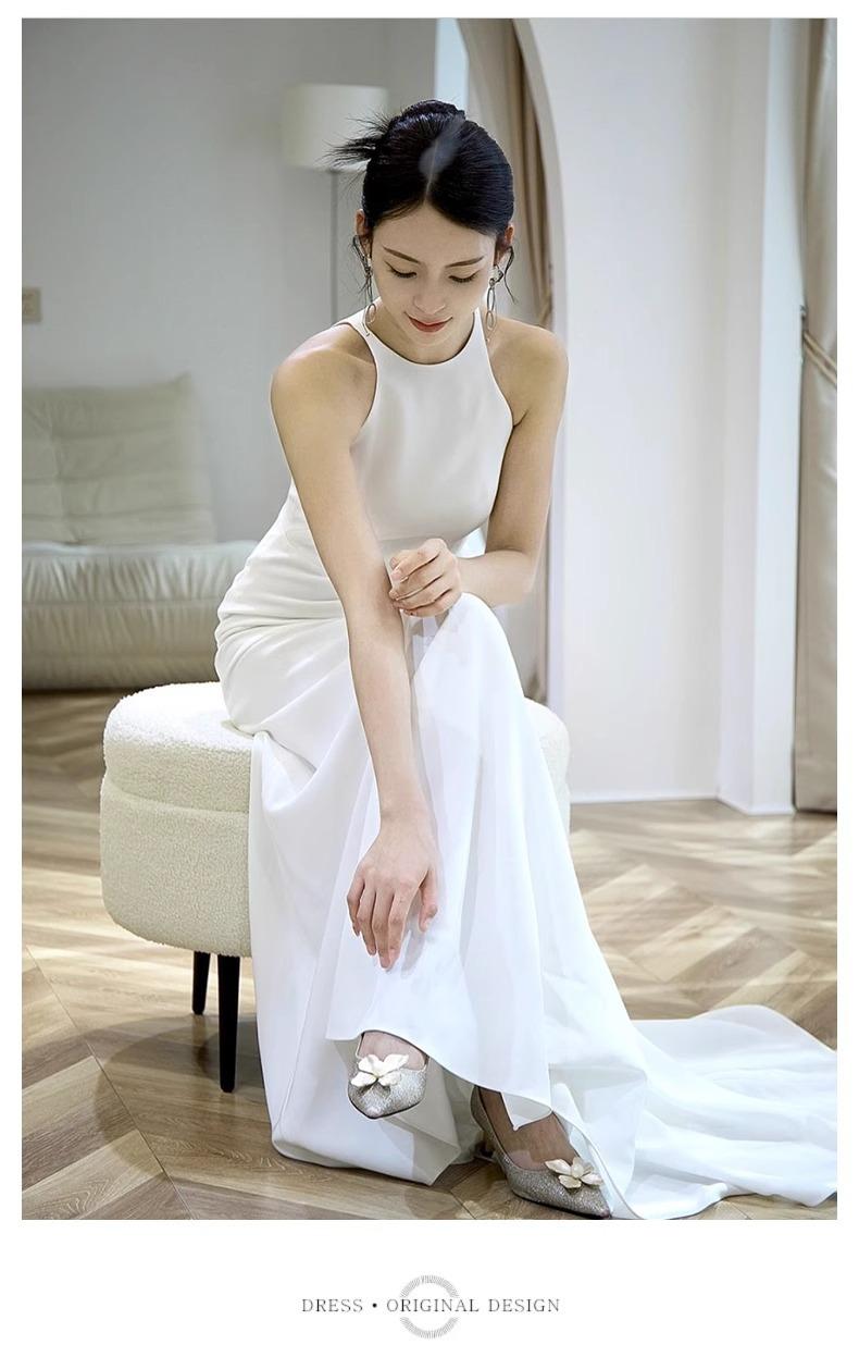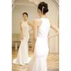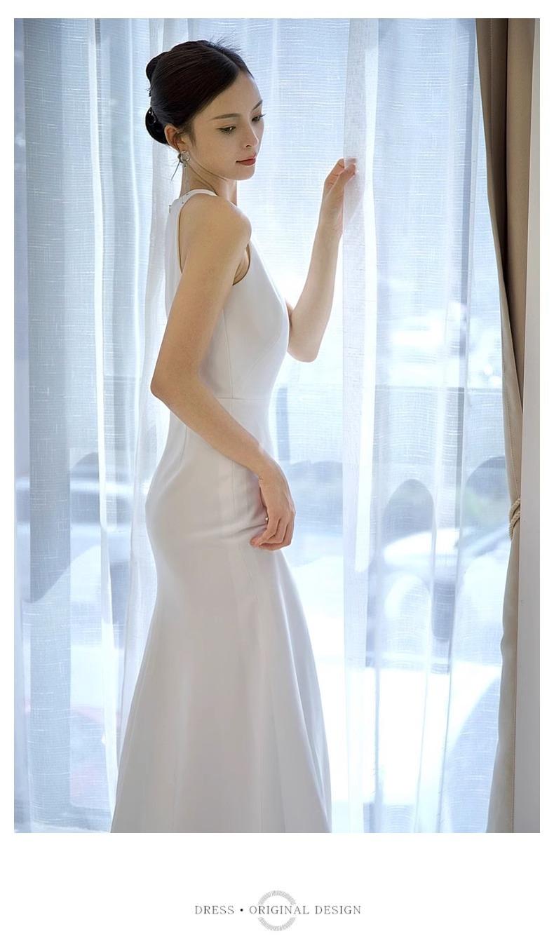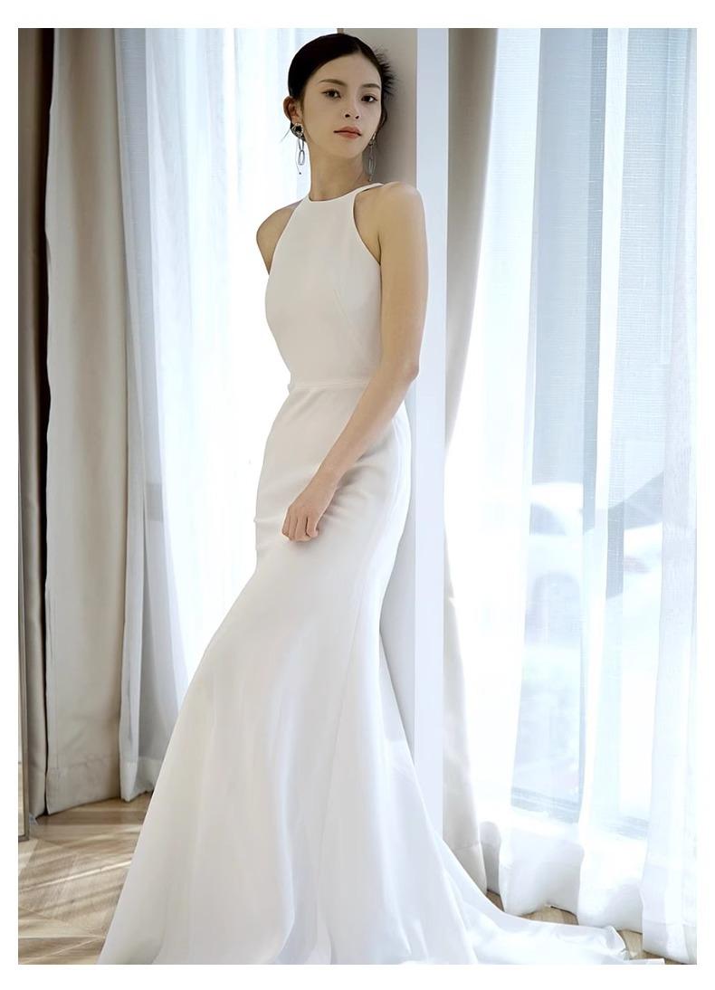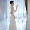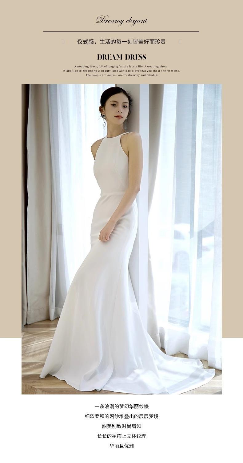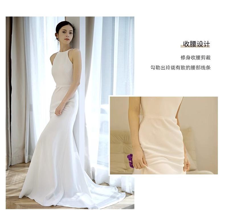 Vestido de Novia Francés Ligero 2025 Nuevo Blanco Sencillo Satén Salida Velo Novia Alta Gama Cola de Pescado Vestido de Novia
