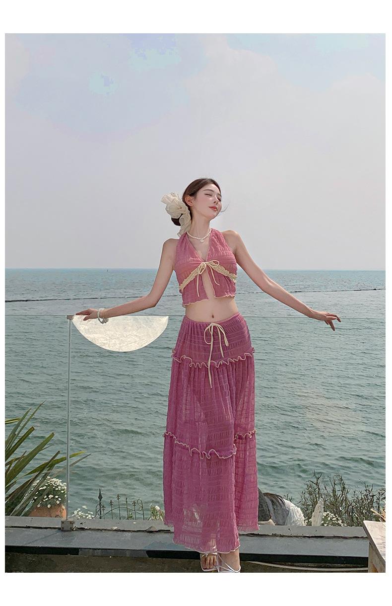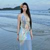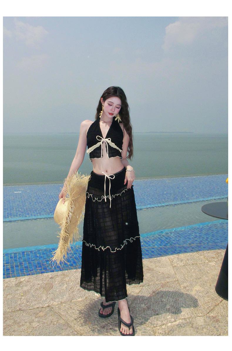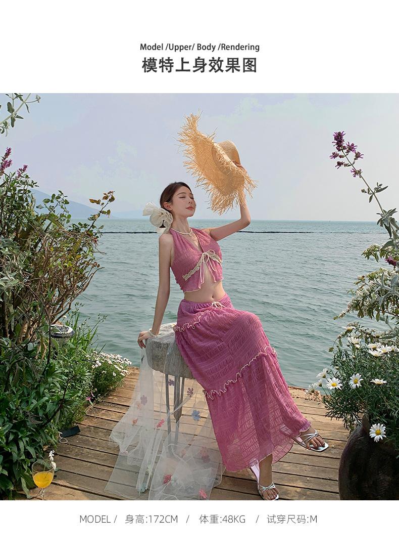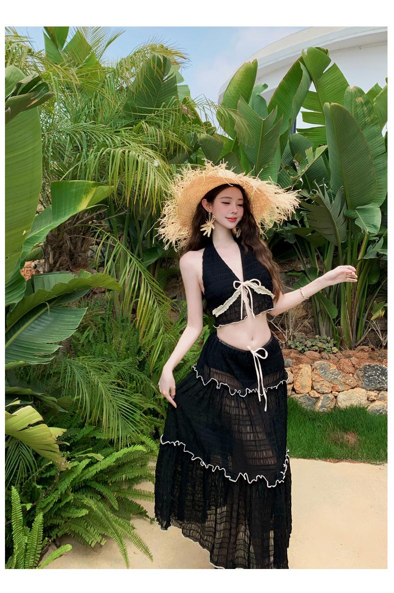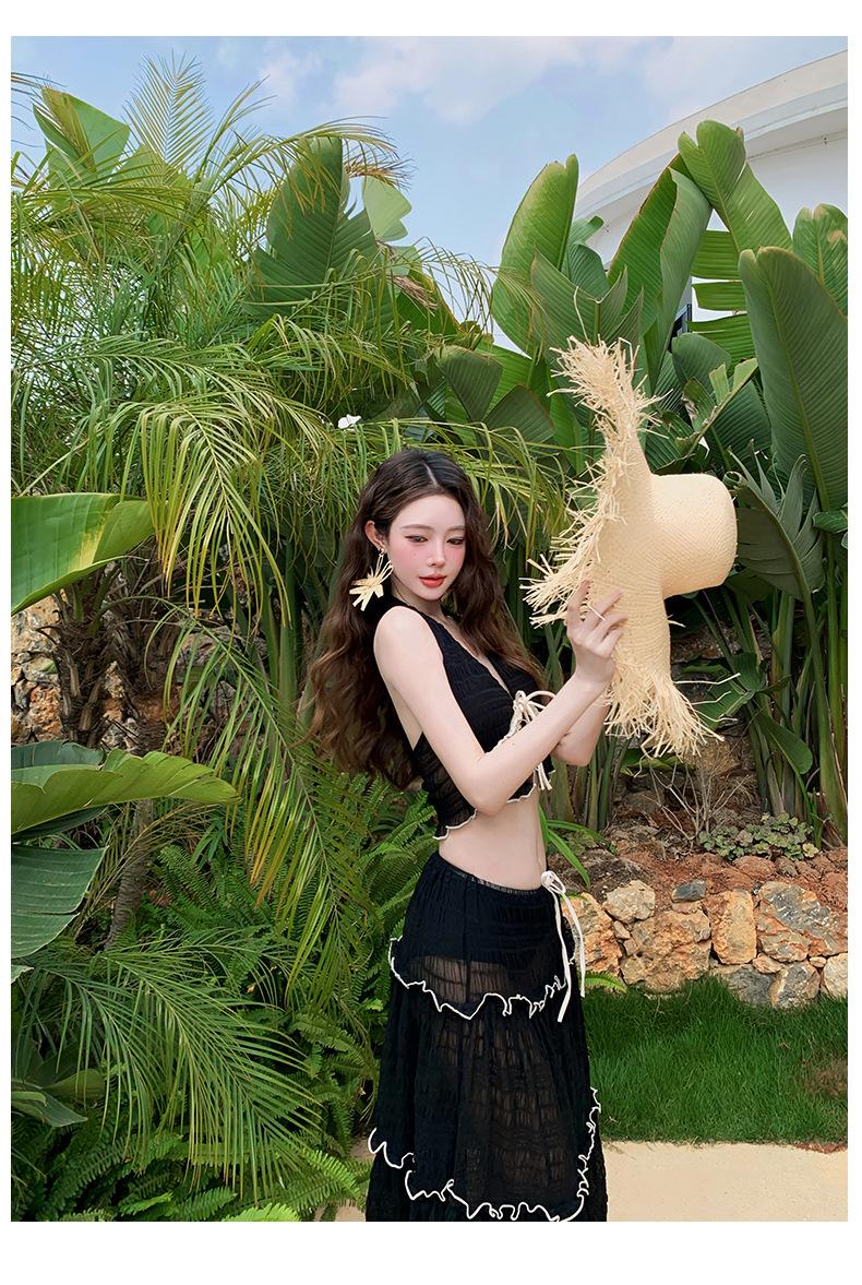 Verano 2025 Nuevo Hermoso Fotografía de Playa Temperamento de Alta Gama Diosa Vestido Largo con Abertura Traje de Baño Traje de Baño de Mujer