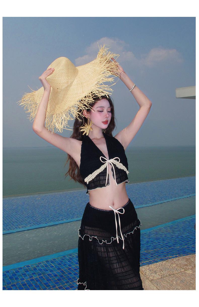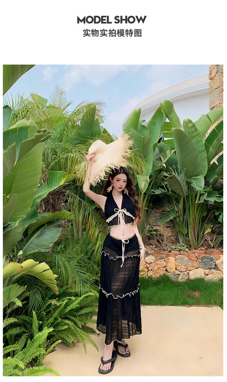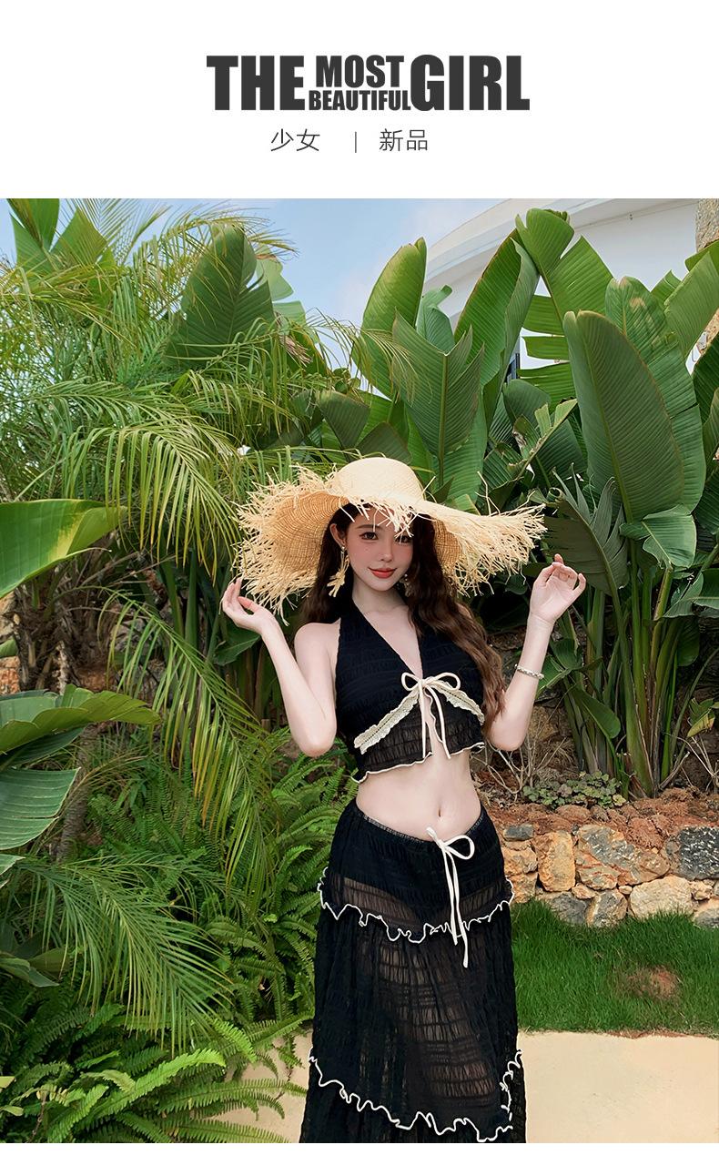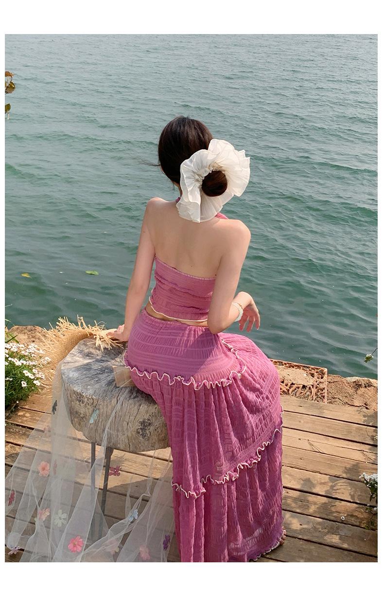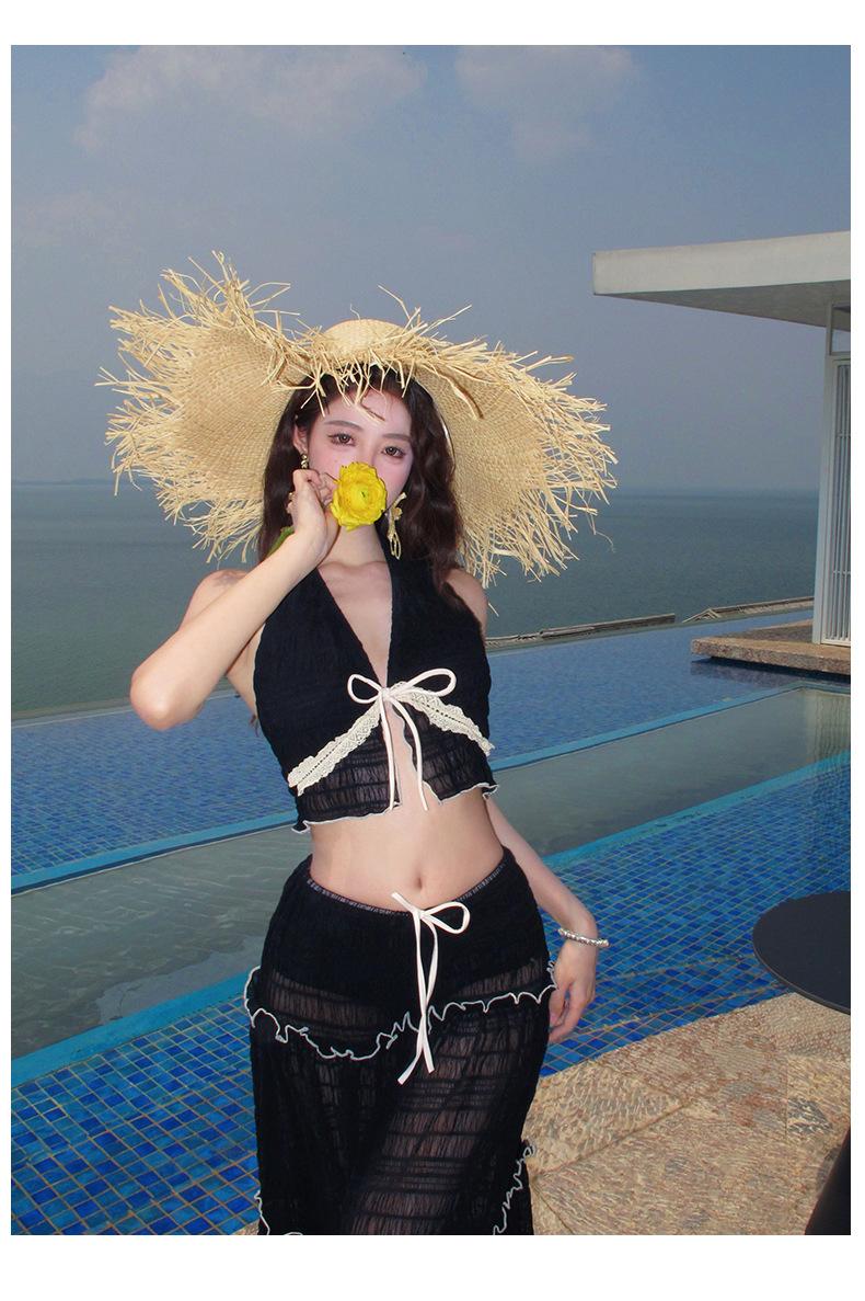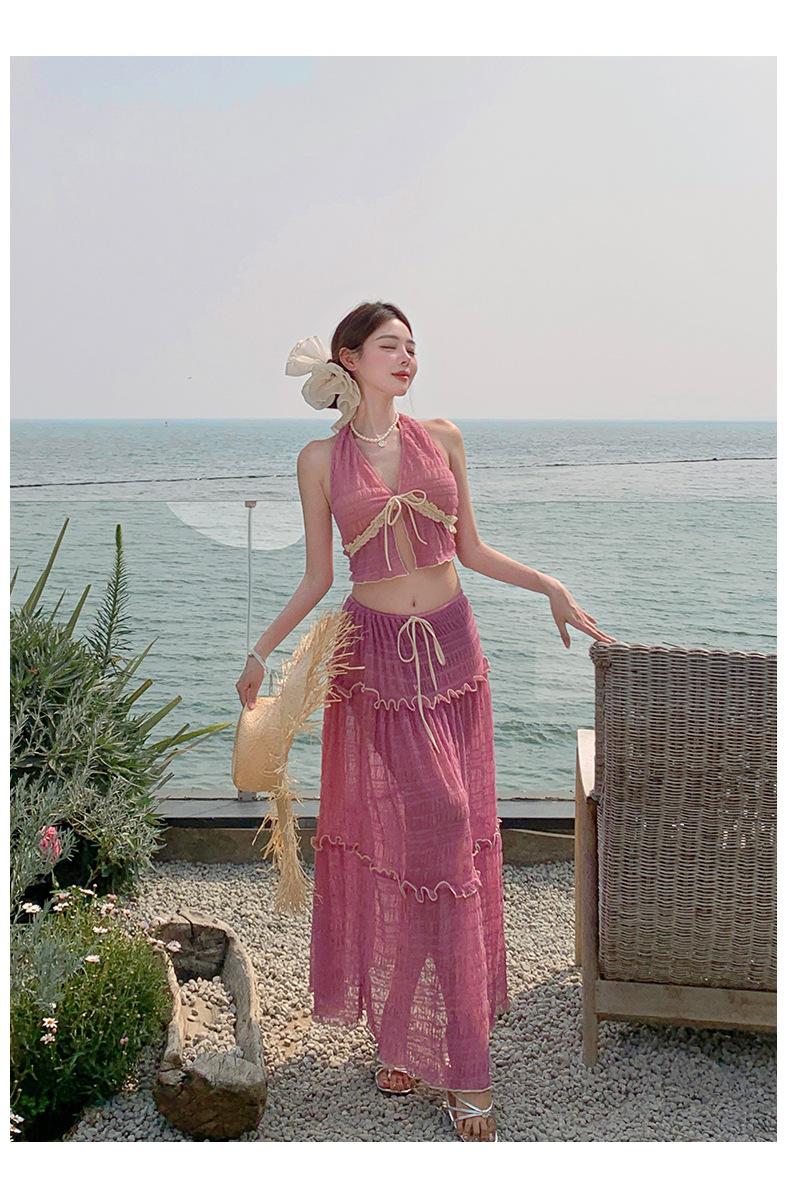 Verano 2025 Nuevo Hermoso Fotografía de Playa Temperamento de Alta Gama Diosa Vestido Largo con Abertura Traje de Baño Traje de Baño de Mujer