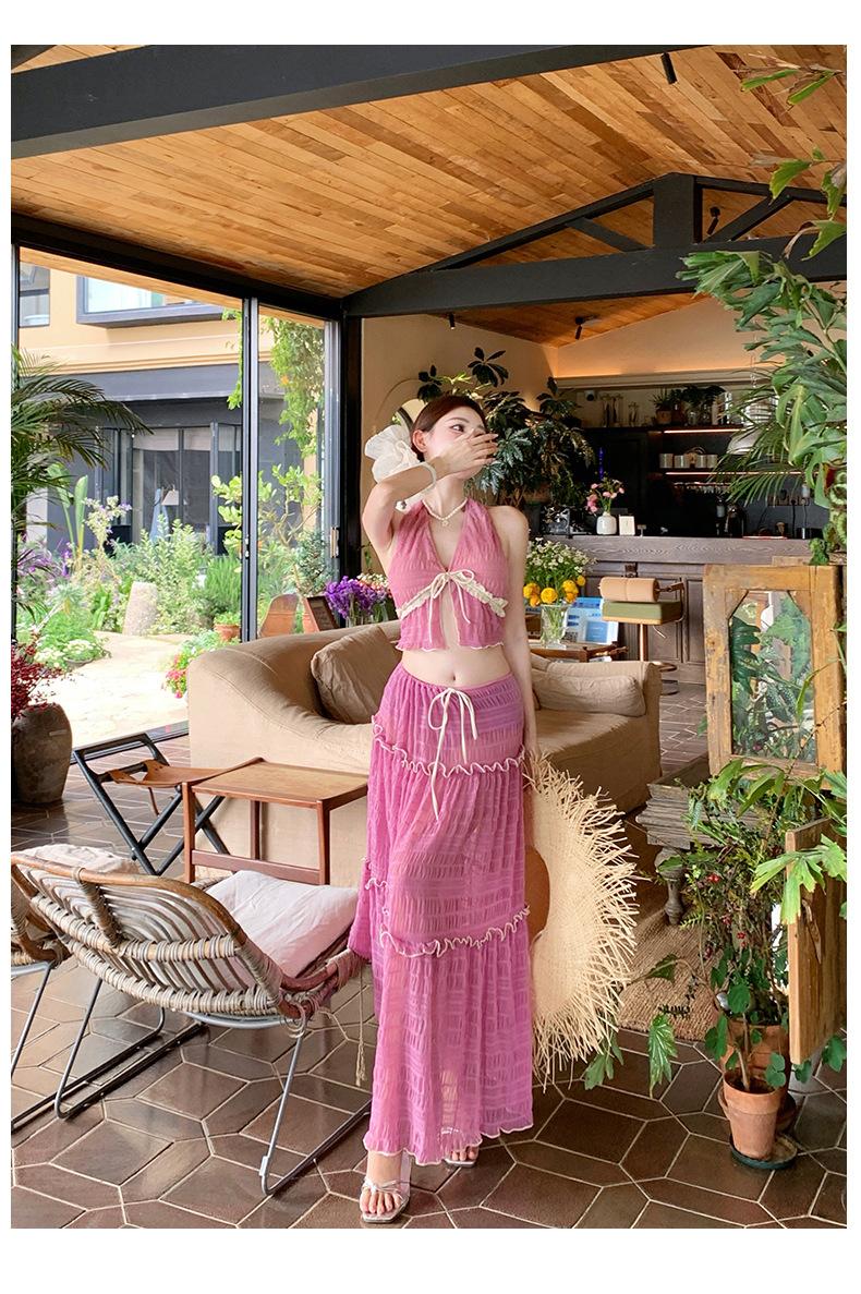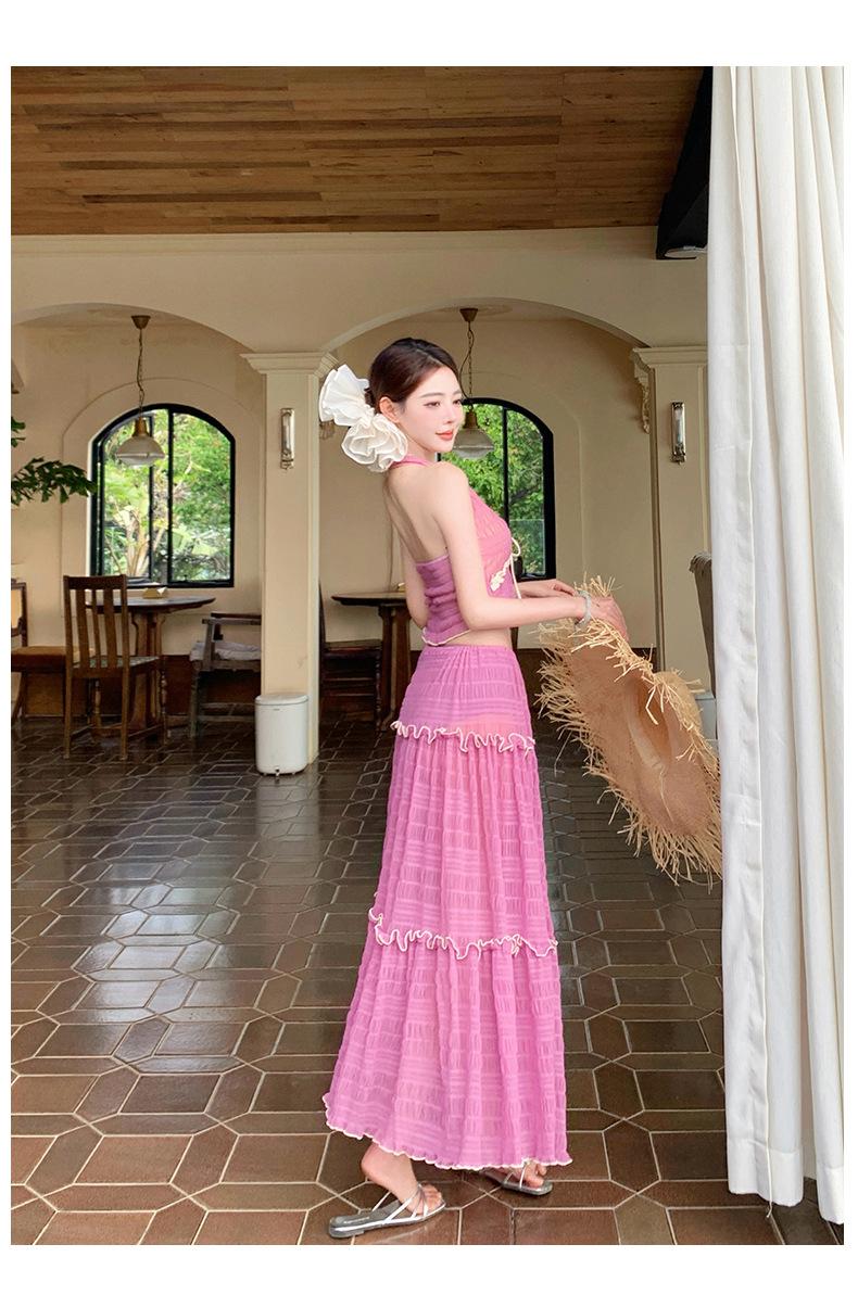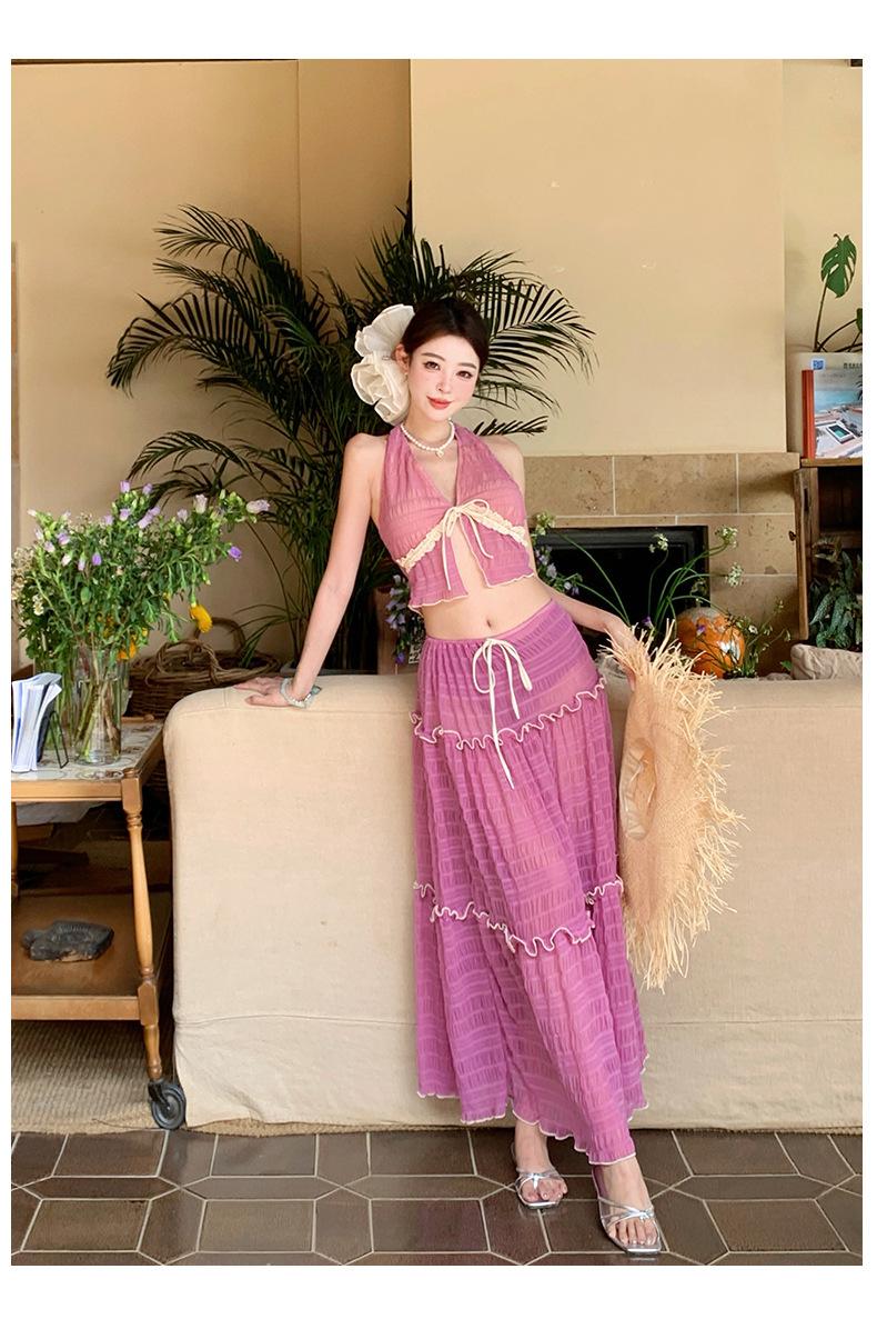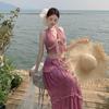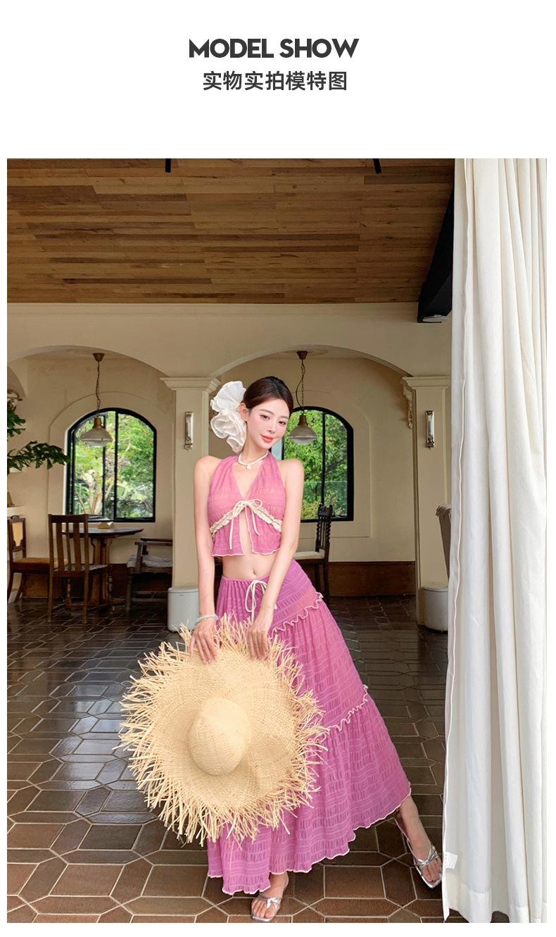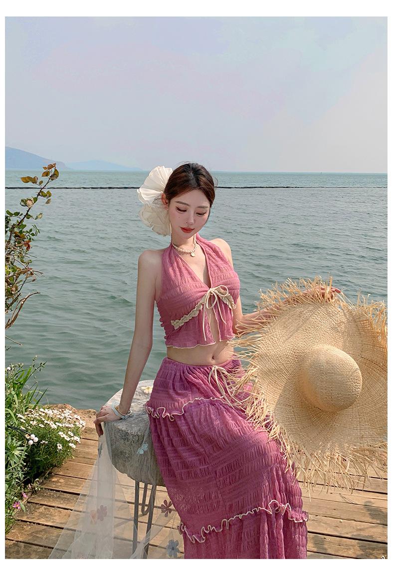 Verano 2025 Nuevo Hermoso Fotografía de Playa Temperamento de Alta Gama Diosa Vestido Largo con Abertura Traje de Baño Traje de Baño de Mujer