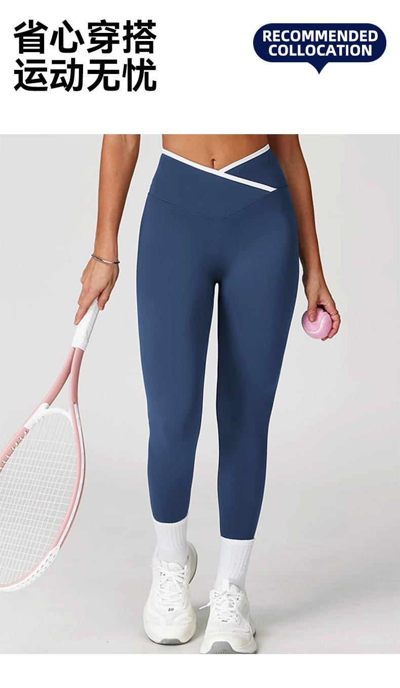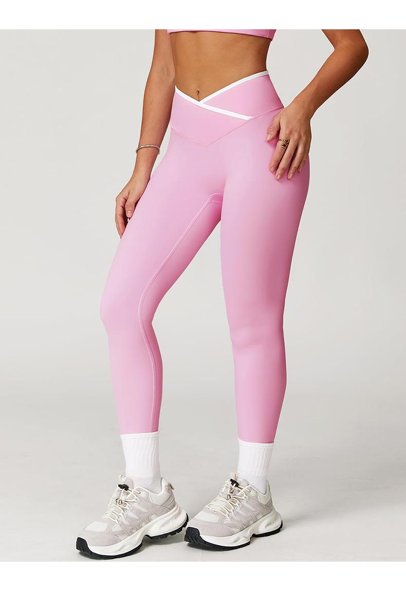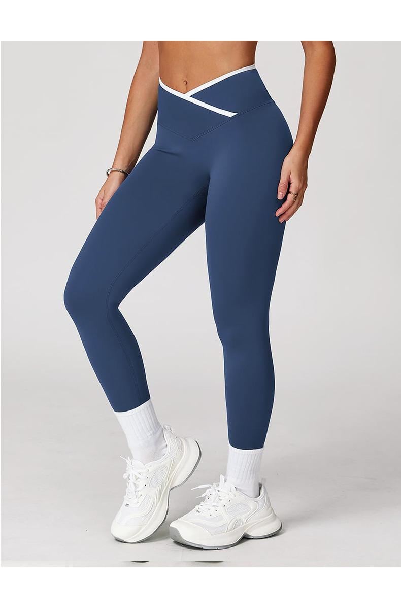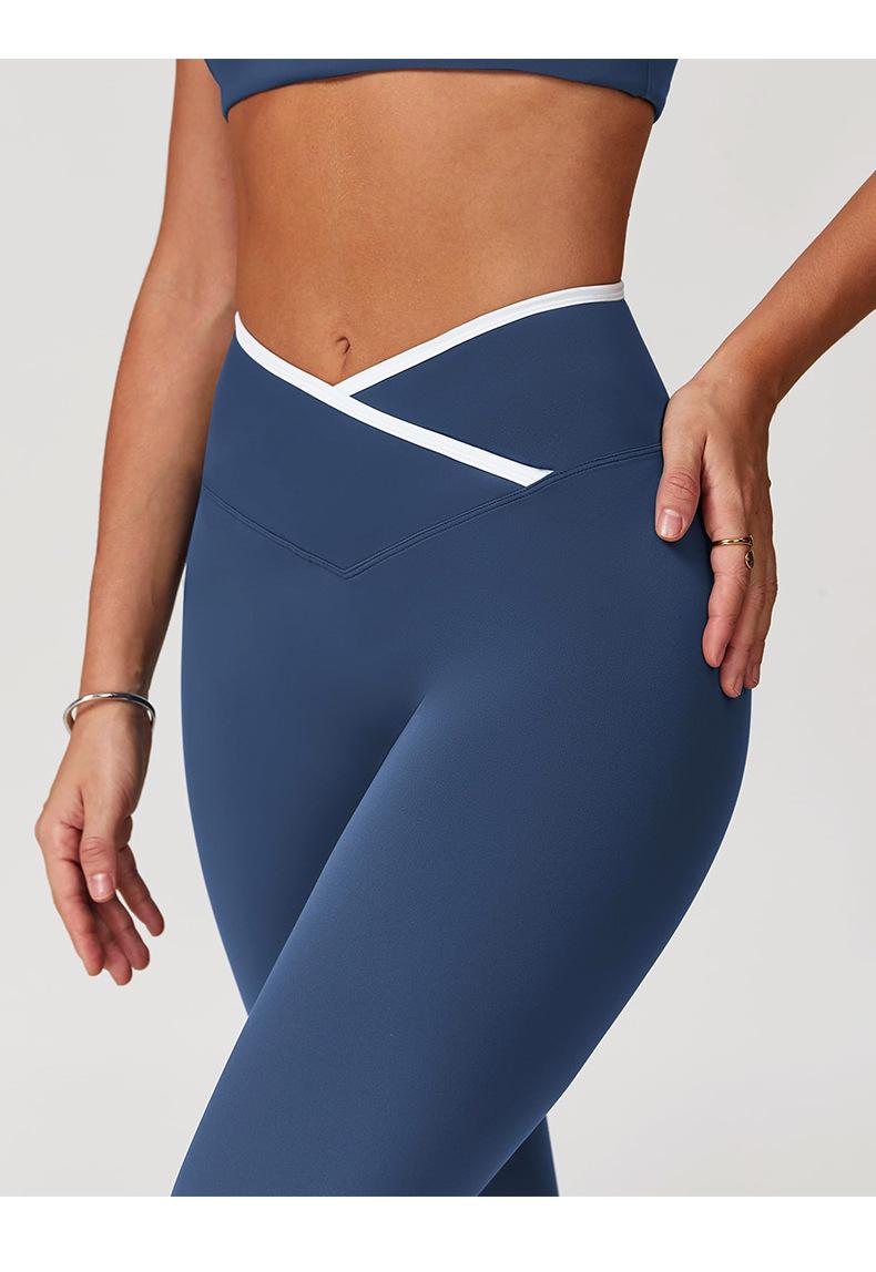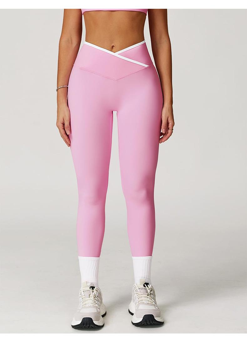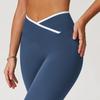 Pantalones de Yoga de Estilo Caliente Europeo y Americano con Bloques de Color, Cintura Cruzada, Mallas Deportivas, Cintura Alta, Levanta Cadera, Elásticos, para Entrenamiento, Fitness