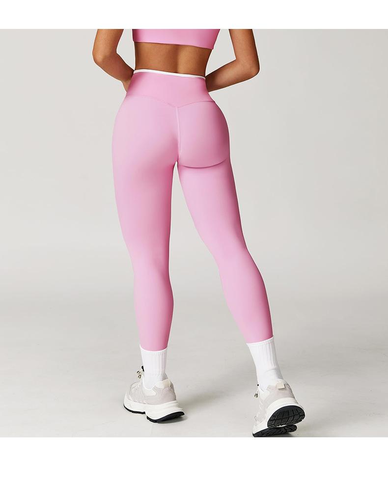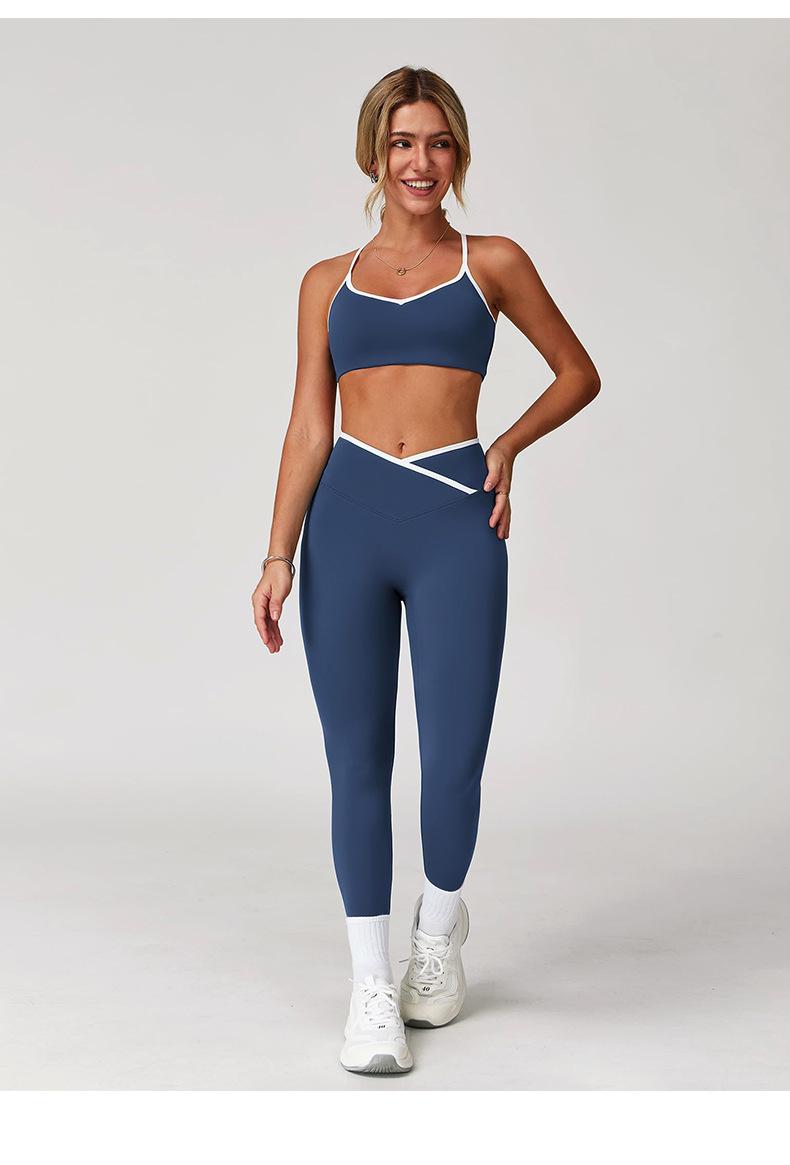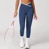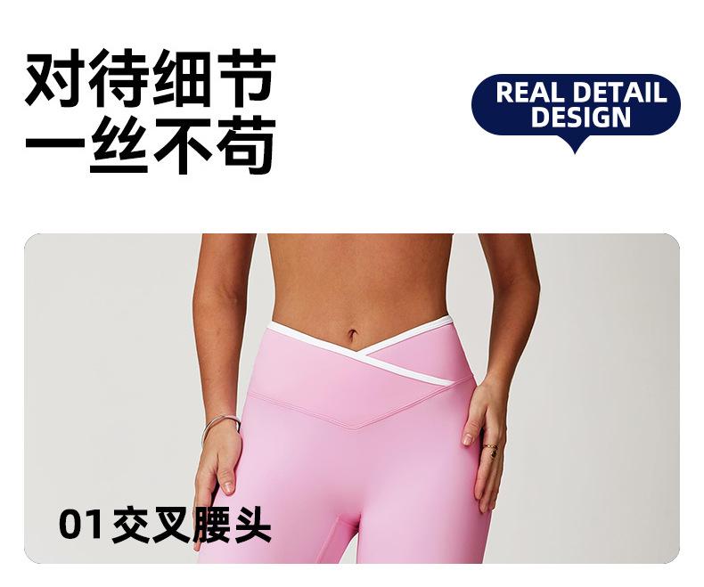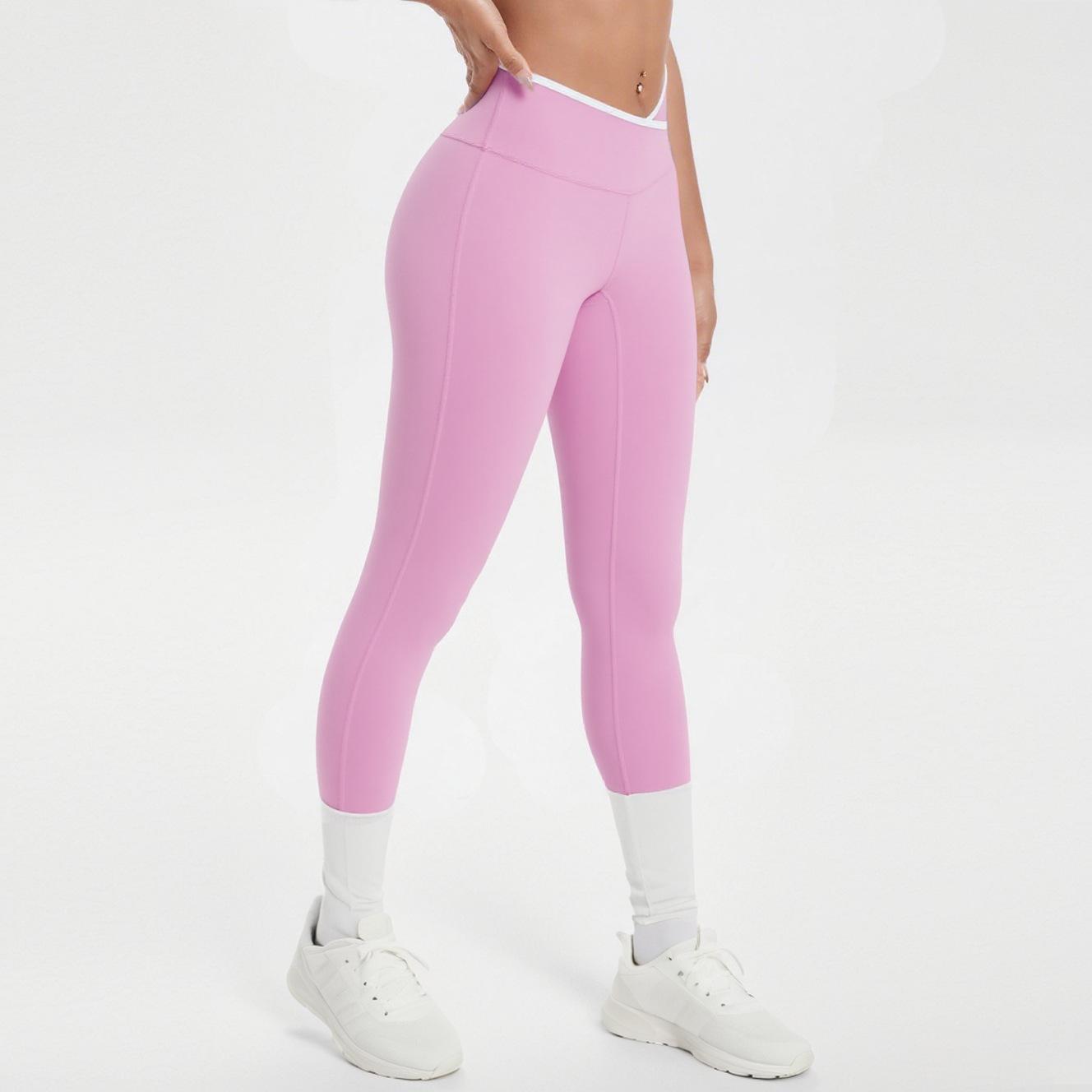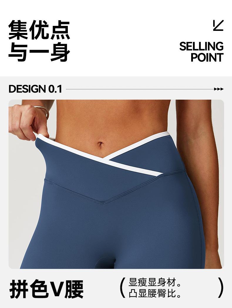 Pantalones de Yoga de Estilo Caliente Europeo y Americano con Bloques de Color, Cintura Cruzada, Mallas Deportivas, Cintura Alta, Levanta Cadera, Elásticos, para Entrenamiento, Fitness