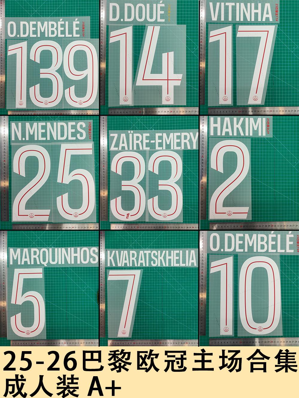 25-26 Paris Champions League Home Adult A+ 2#HAKIMI, 25-26 Paris Champions League Home Adult A+ 5#MARQUINHOS, ...