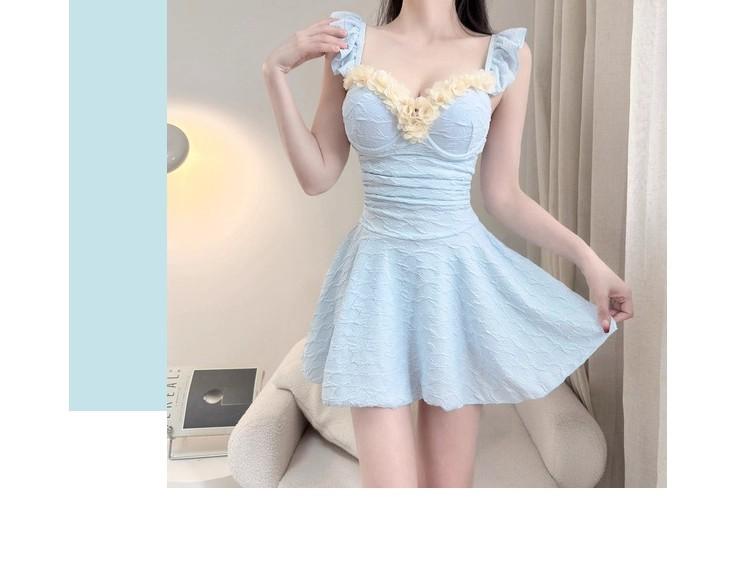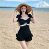 Traje de baño Mujer Alta gama 2025 Nuevo Exquisito Estilo Falda Enterizo Conservador Control de Abdomen Adelgazante Busto Pequeño Push-up Vacaciones Aguas Termales