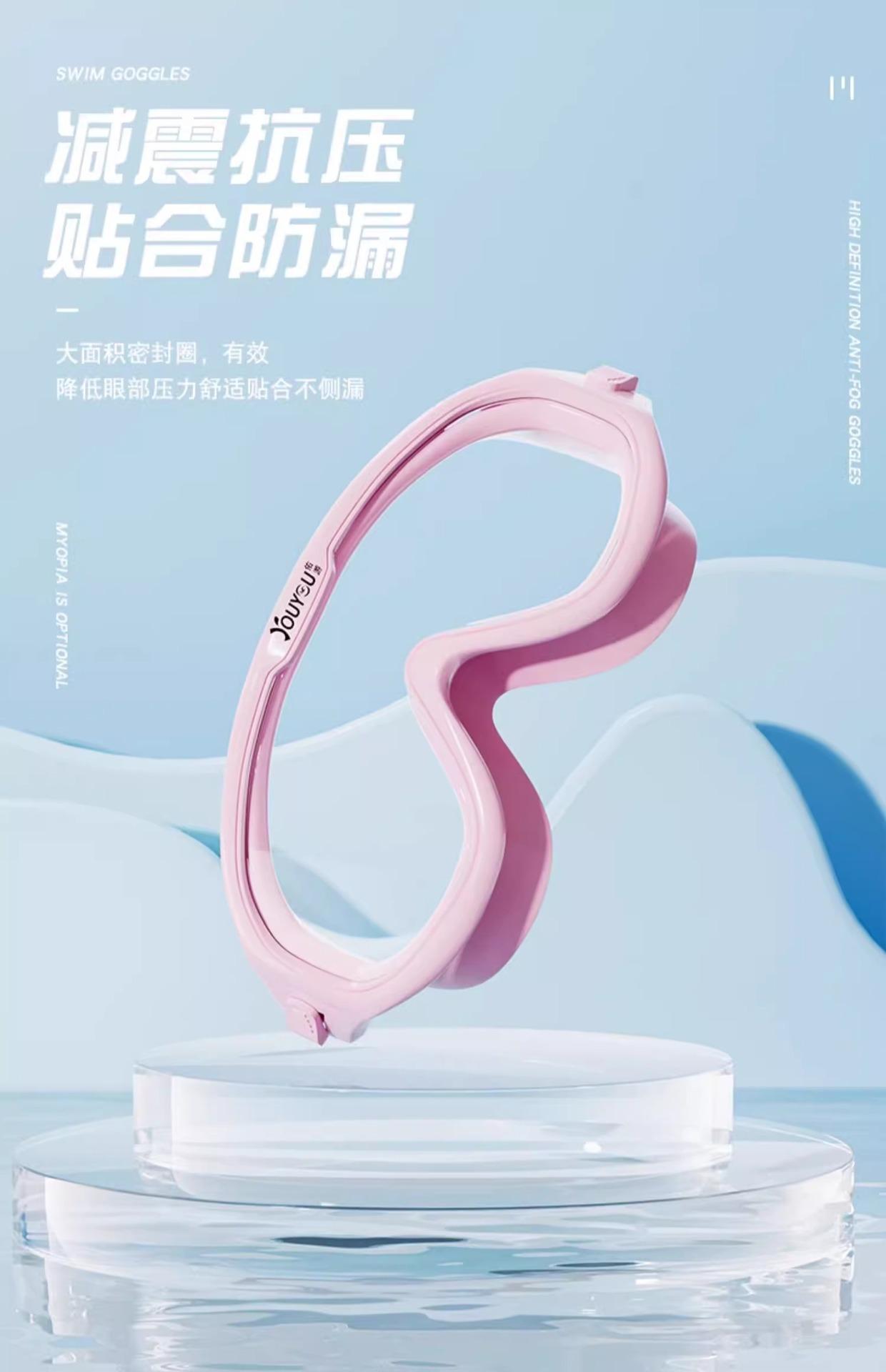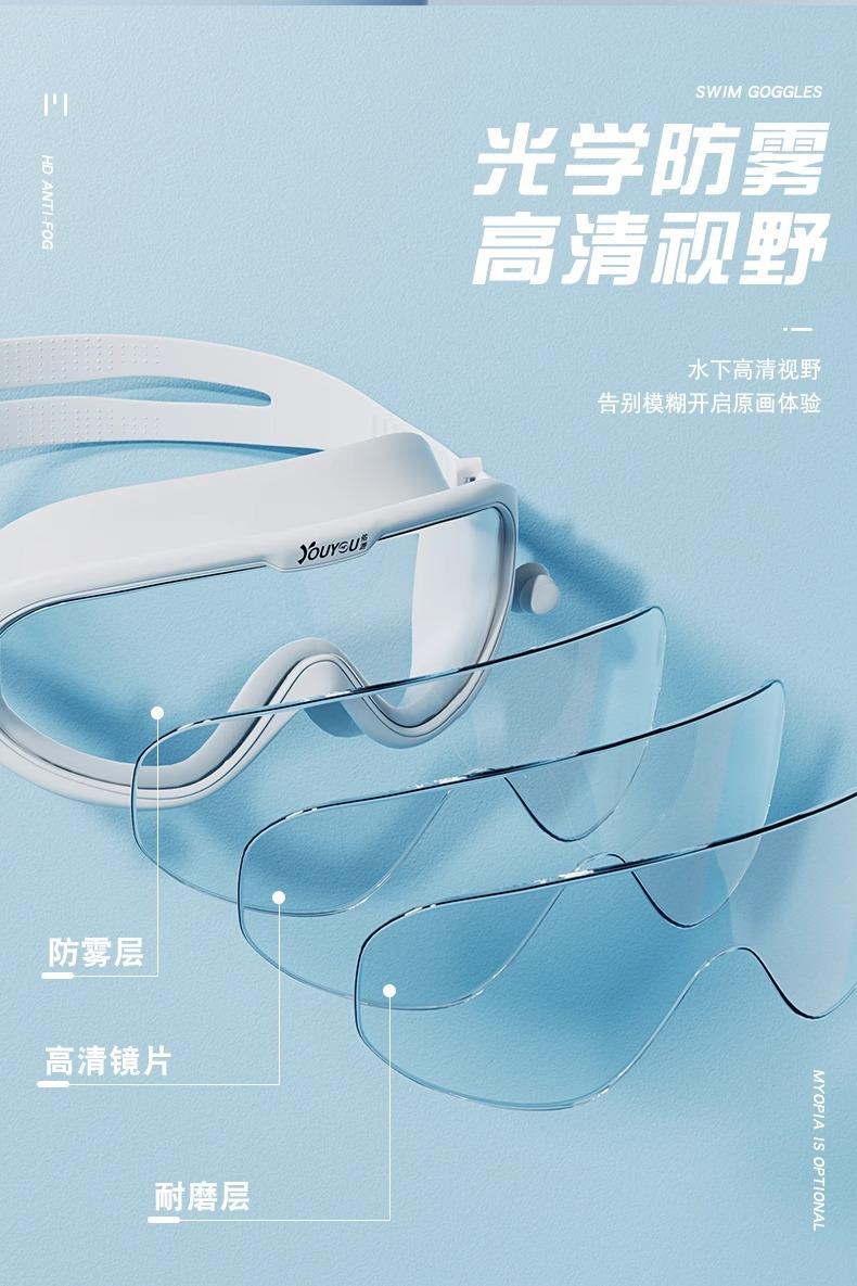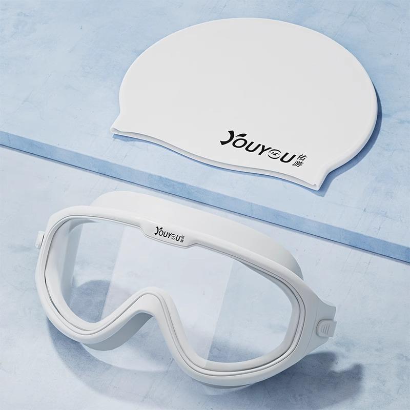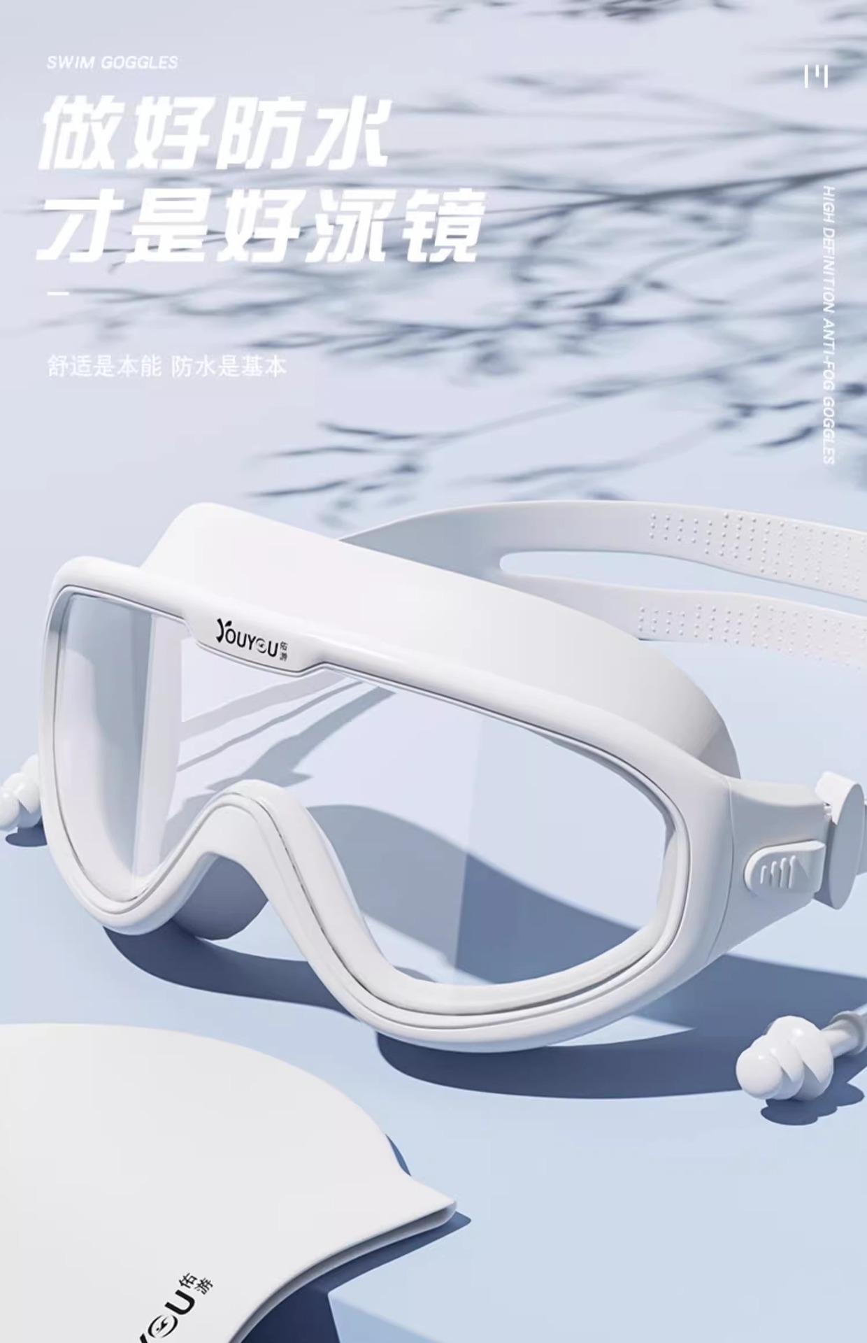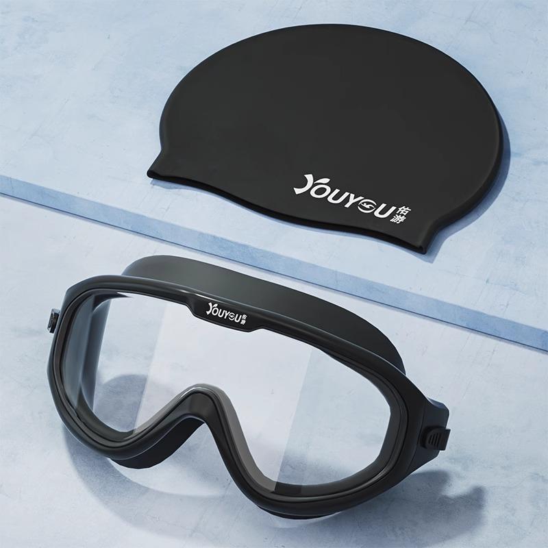 Gafas de Natación para Mujer Impermeables Antivaho Alta Definición Miopía Gafas de Natación Profesionales Marco Grande para Adulto Set de Gorro de Natación Equipo
