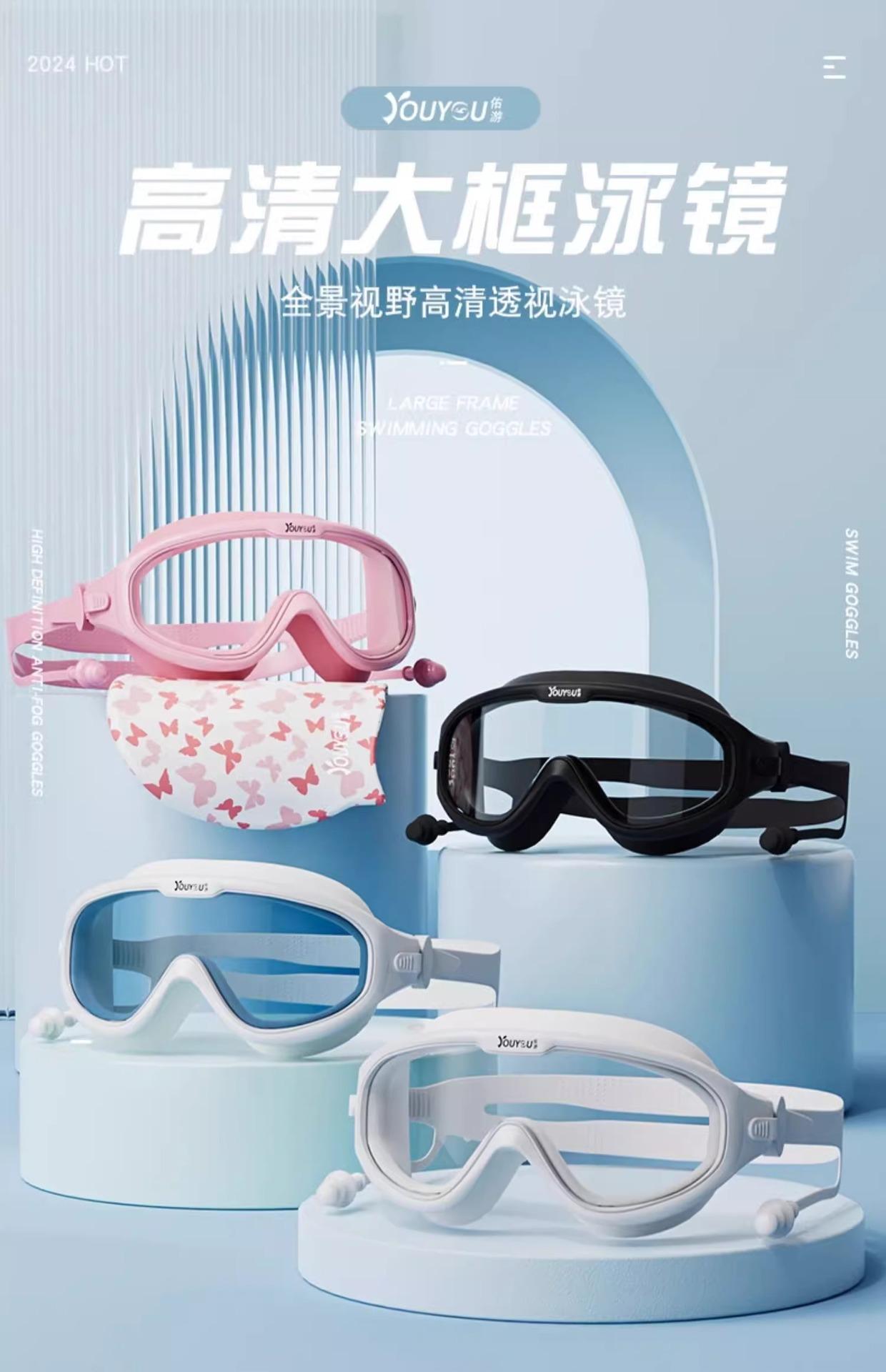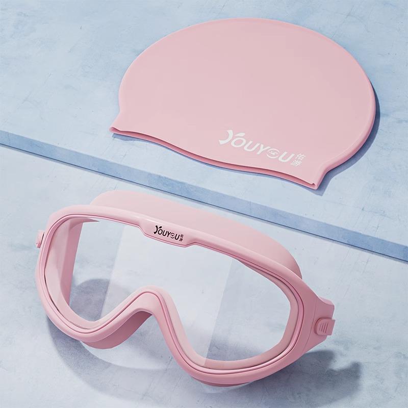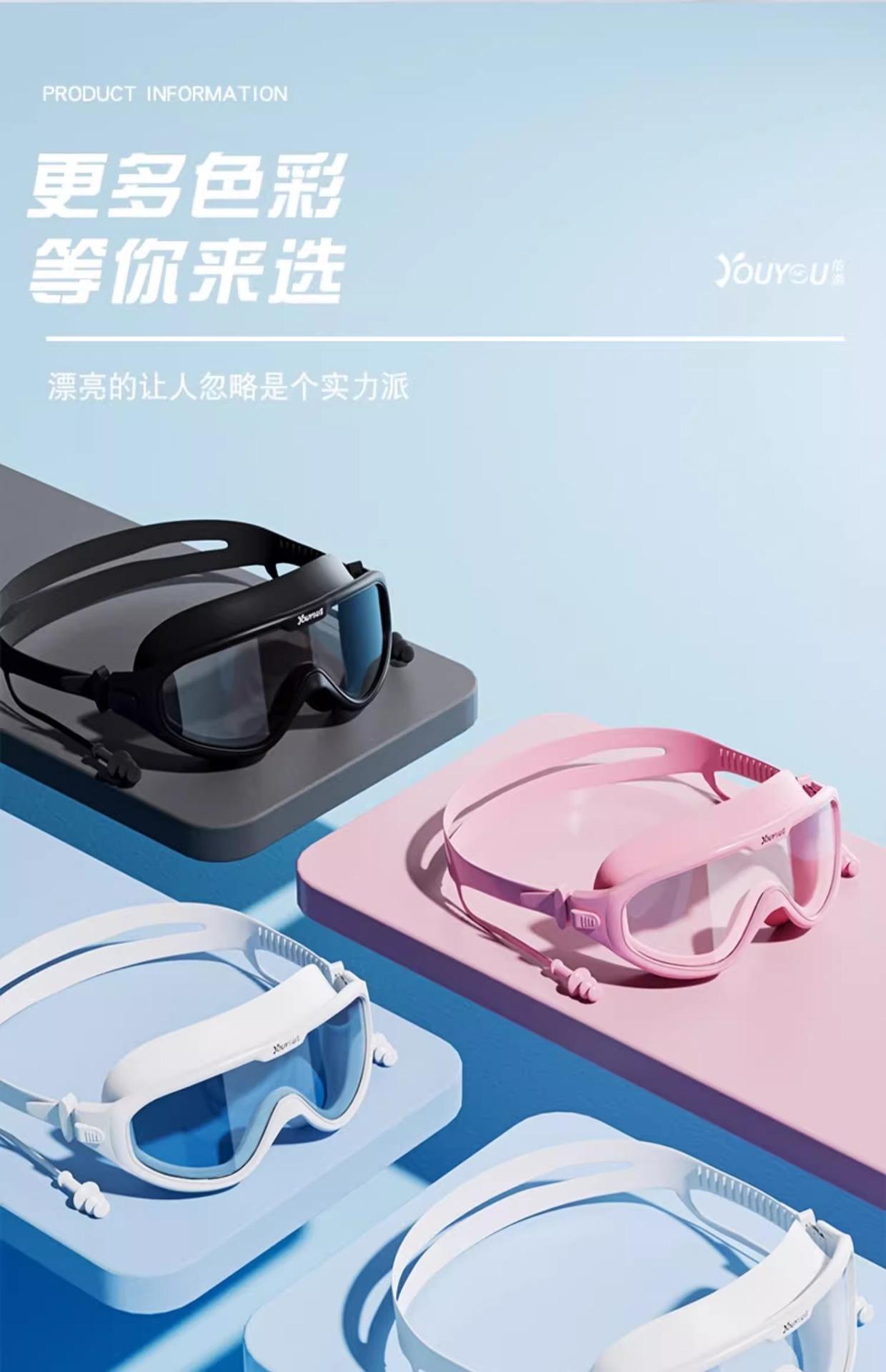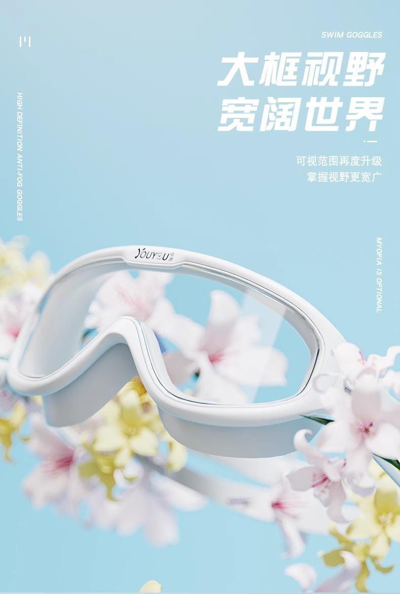 Gafas de Natación para Mujer Impermeables Antivaho Alta Definición Miopía Gafas de Natación Profesionales Marco Grande para Adulto Set de Gorro de Natación Equipo