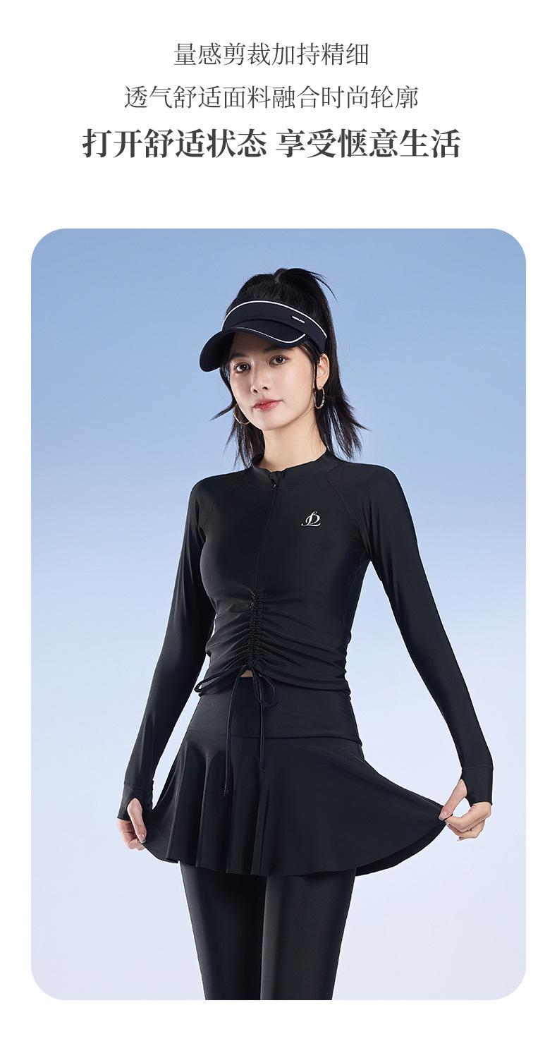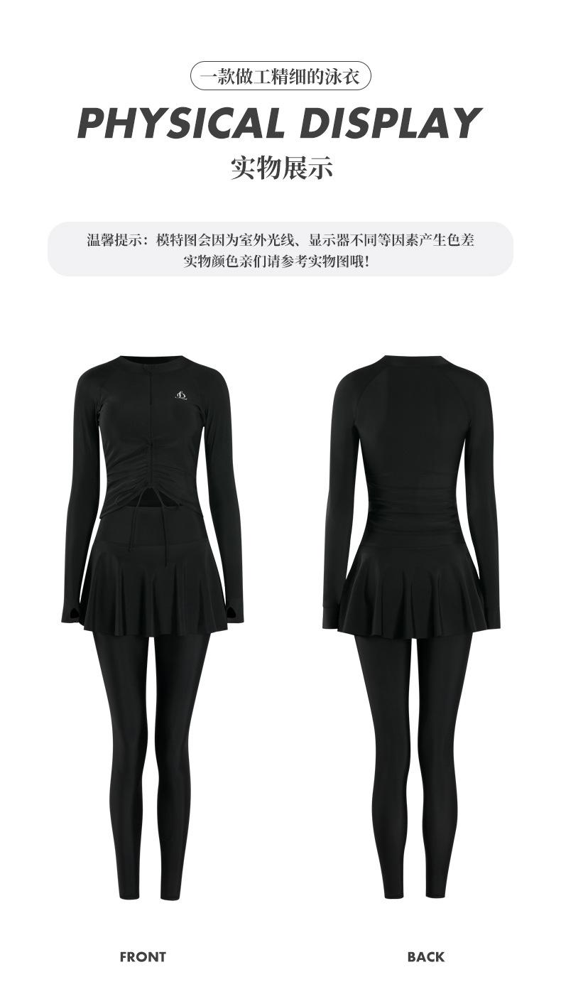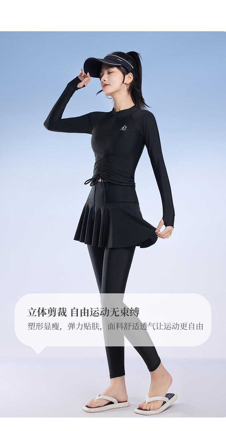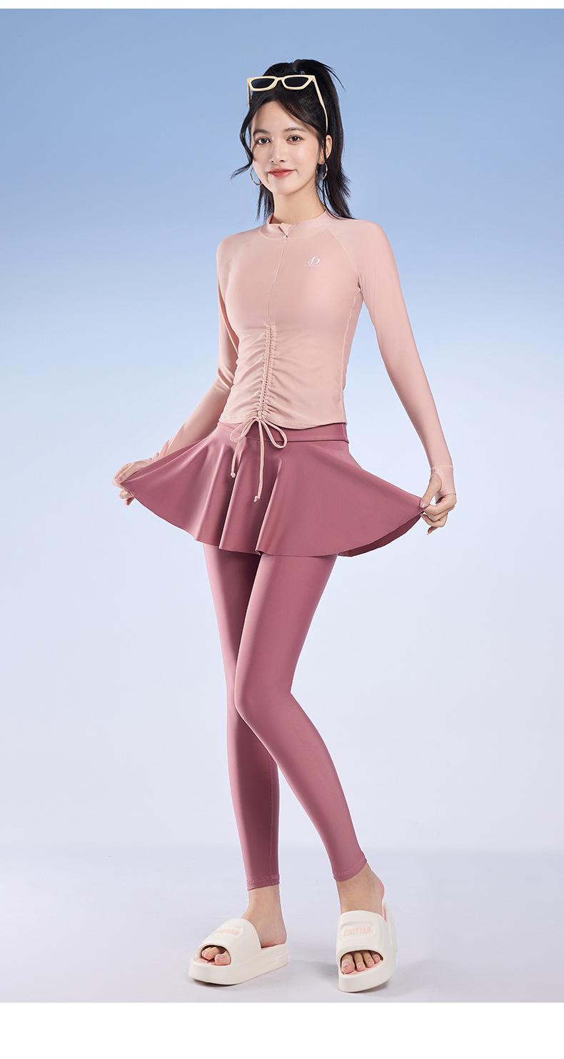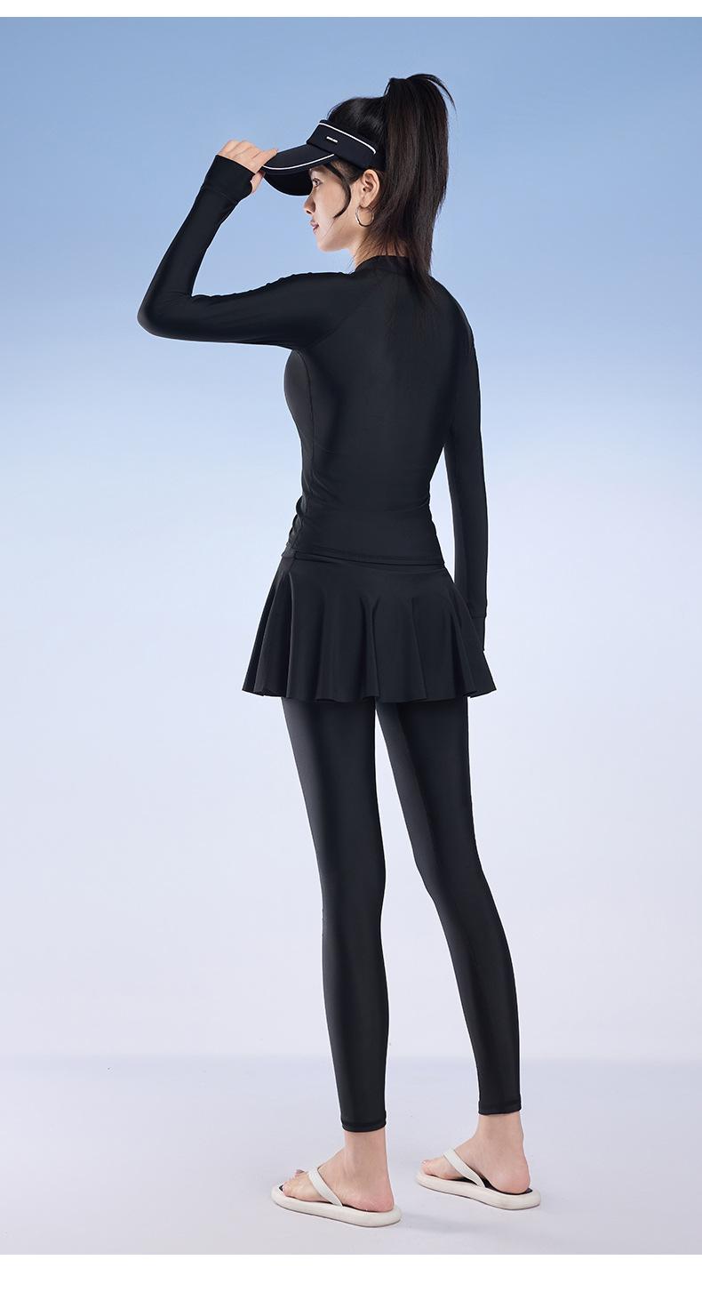 Traje de baño conservador con protección solar con estilo de falda adelgazante para mujeres ligeramente rellenitas, traje de baño de dos piezas de talla grande con manga larga y pantalón largo para mujer