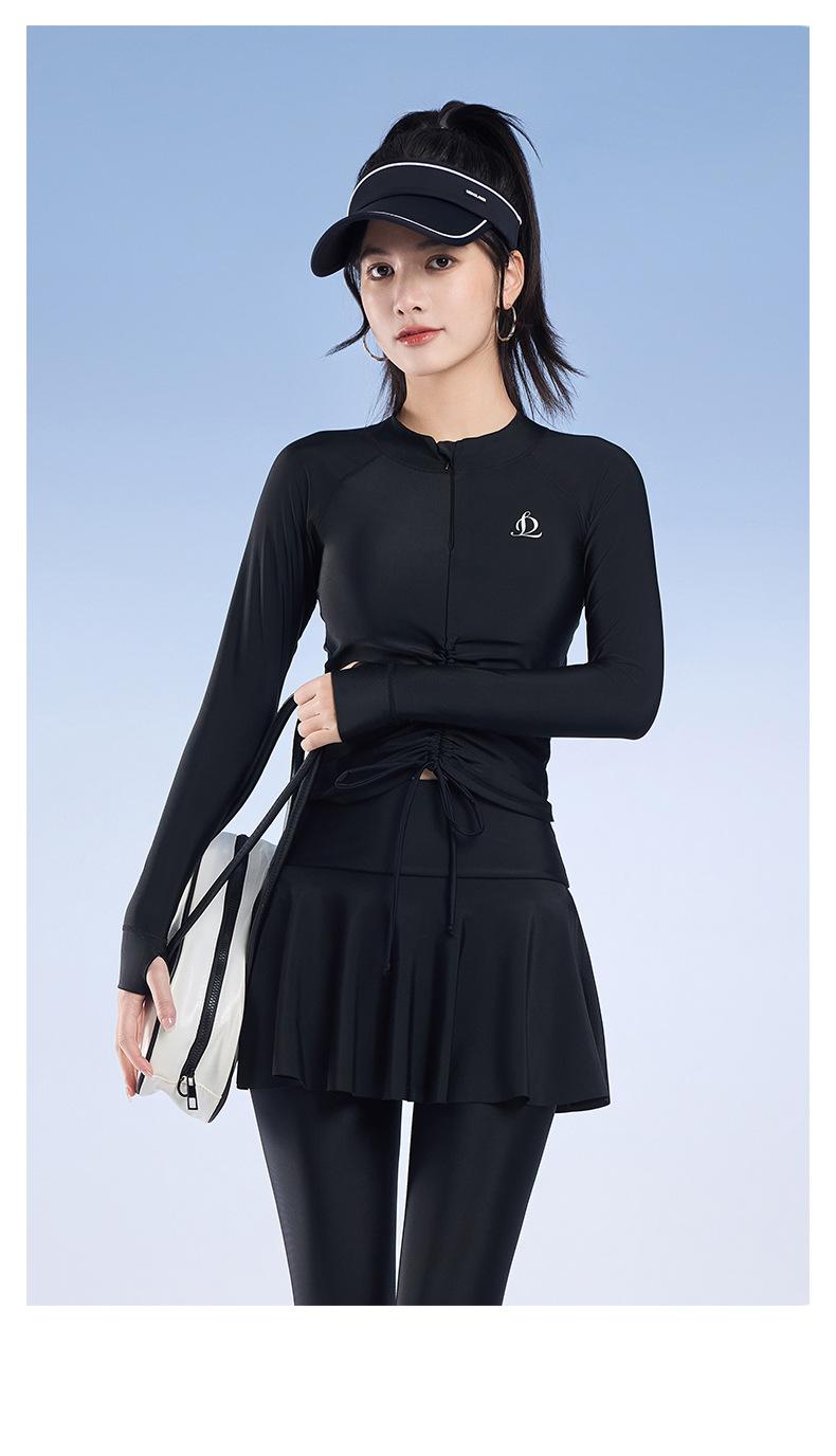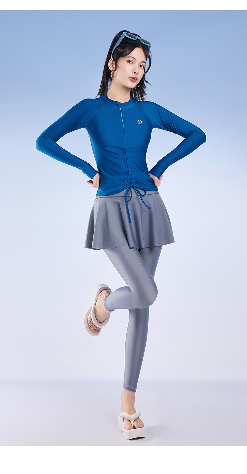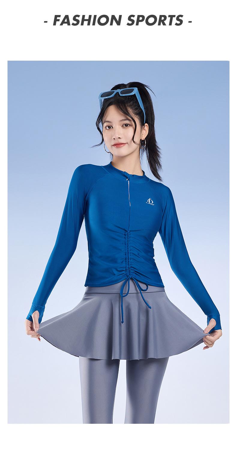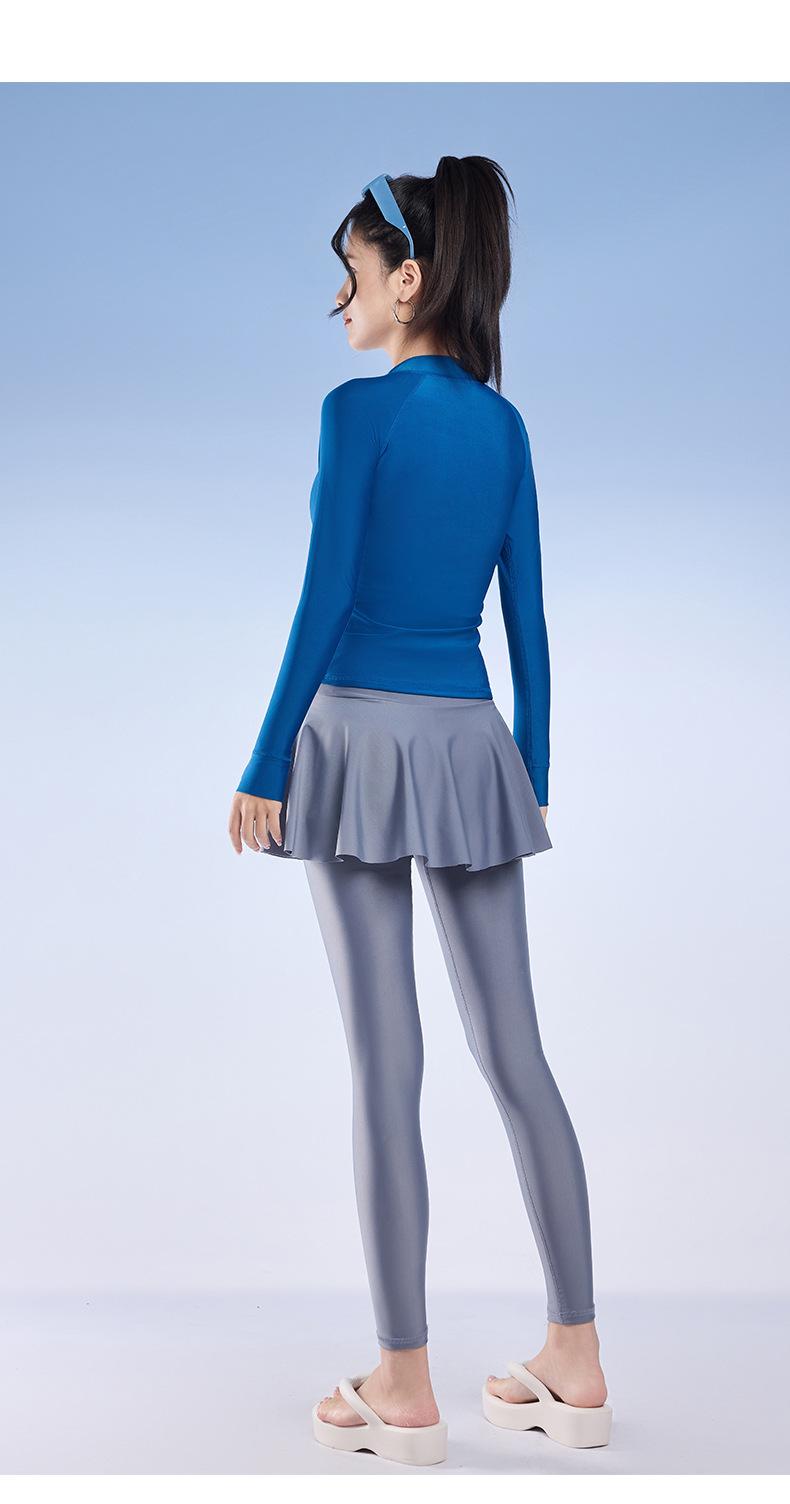 Traje de baño conservador con protección solar con estilo de falda adelgazante para mujeres ligeramente rellenitas, traje de baño de dos piezas de talla grande con manga larga y pantalón largo para mujer