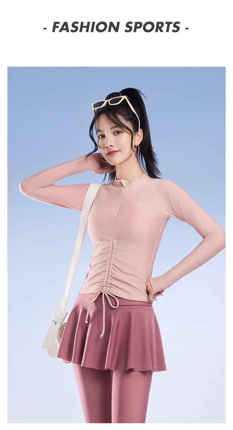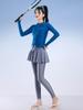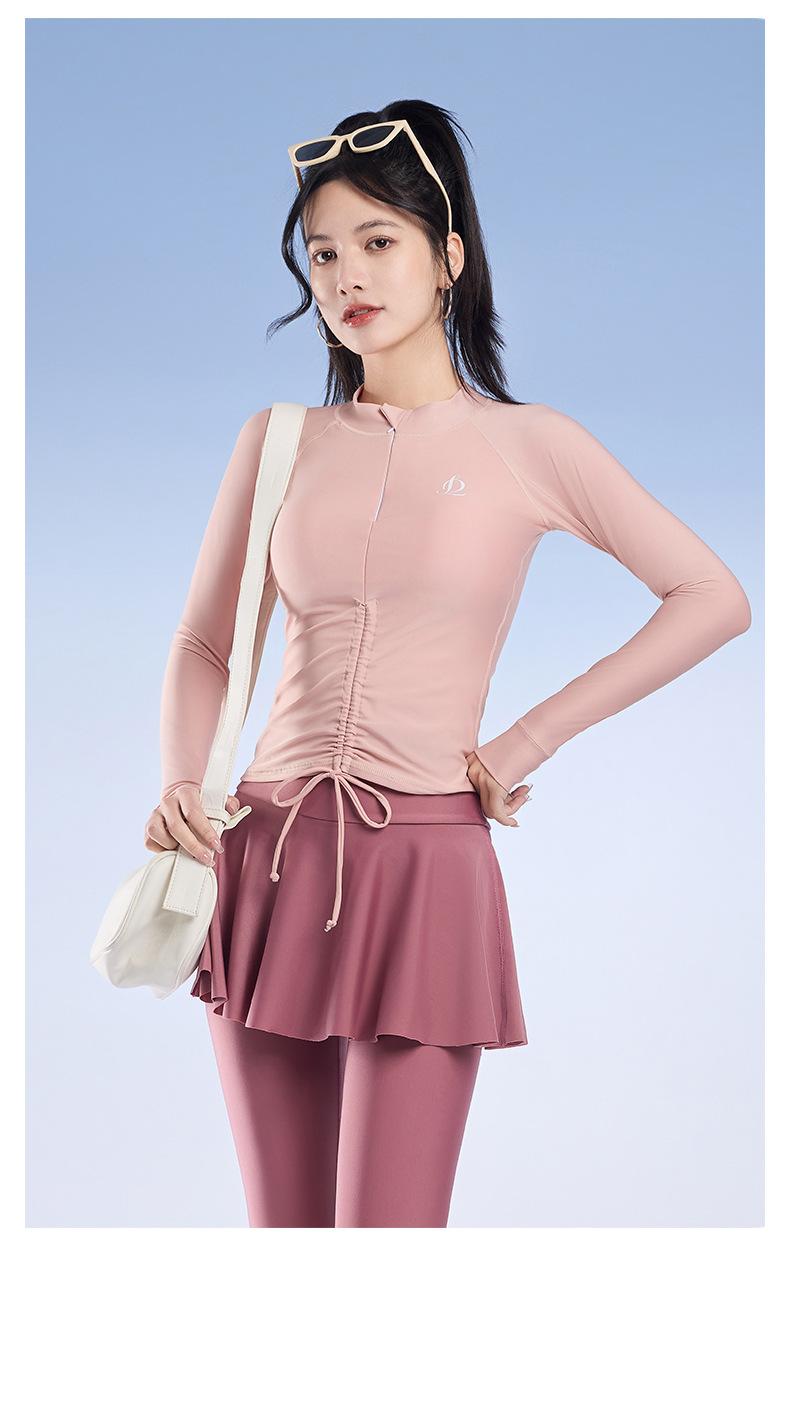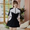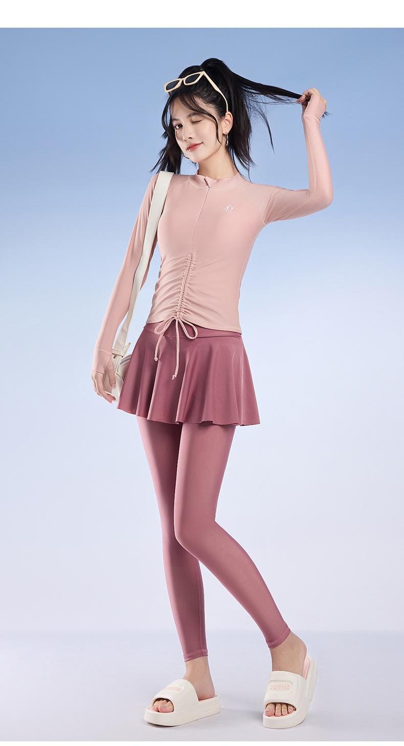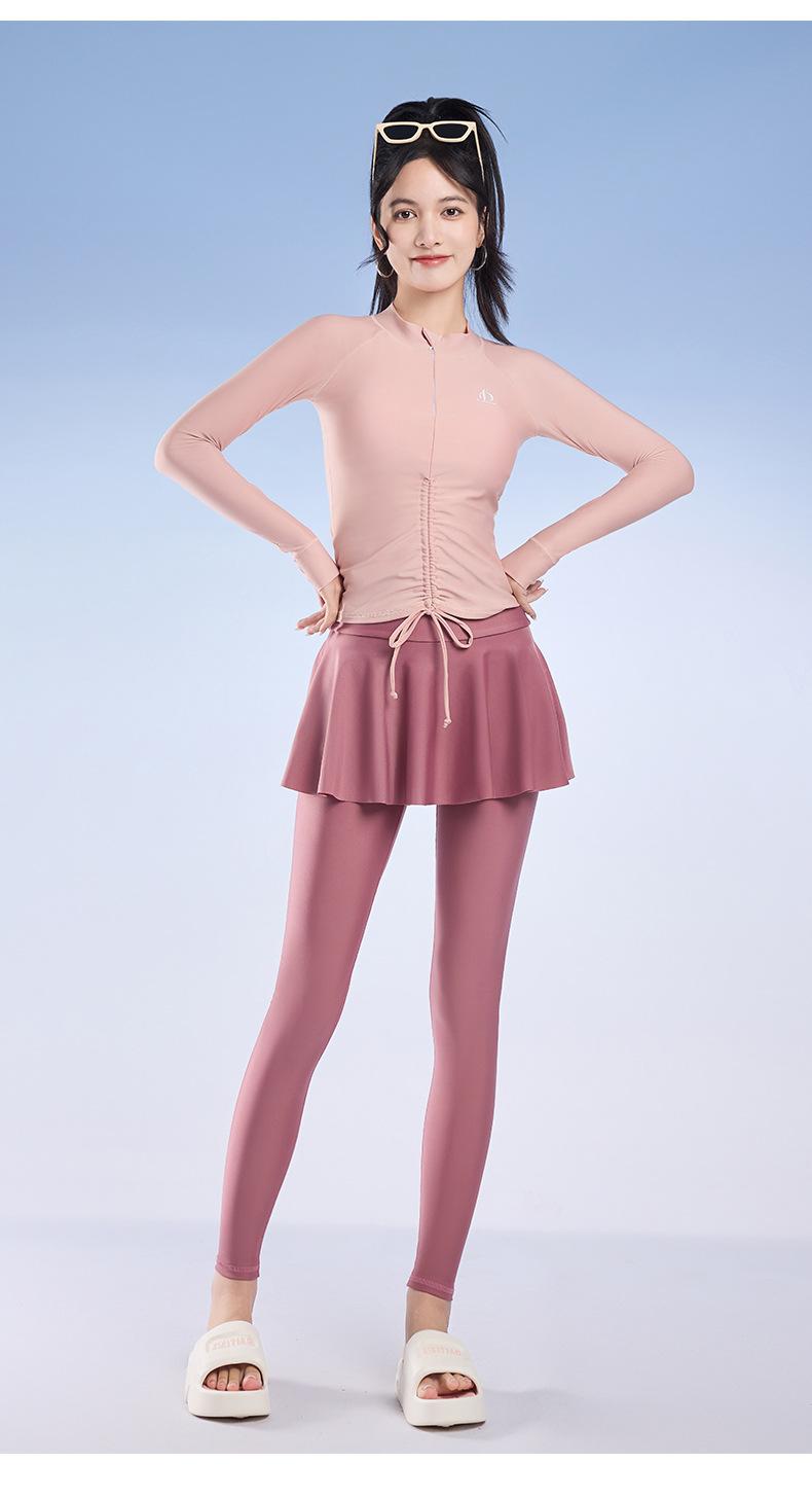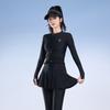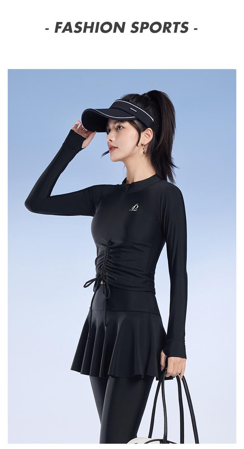 Traje de baño conservador con protección solar con estilo de falda adelgazante para mujeres ligeramente rellenitas, traje de baño de dos piezas de talla grande con manga larga y pantalón largo para mujer