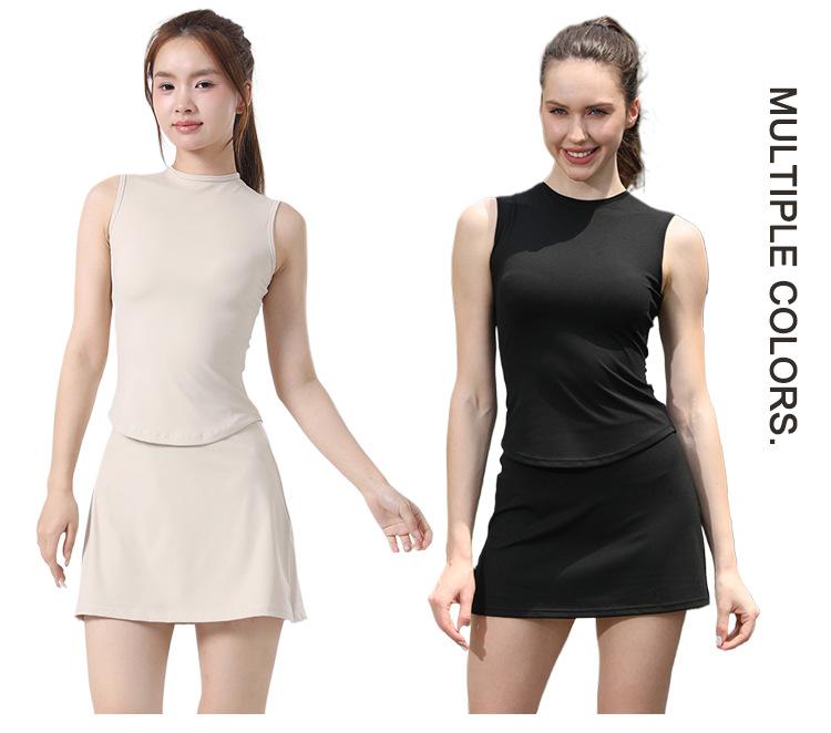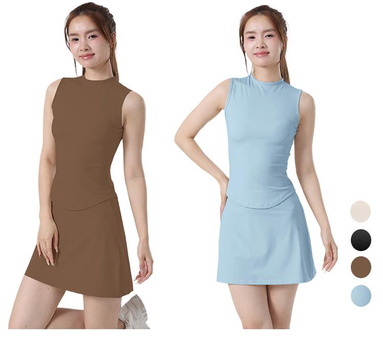 Traje de falda deportiva de fitness de verano transfronterizo antiexposición adelgazante de secado rápido exterior sin mangas yoga tenis