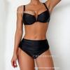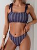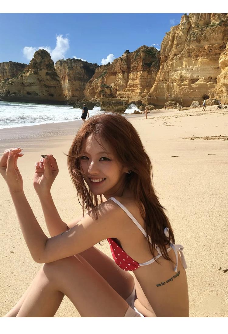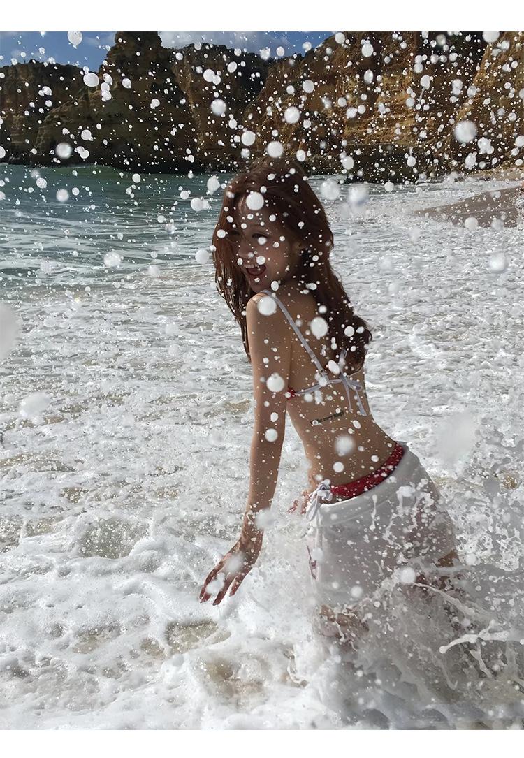 2025 Nuevo Bikini de Tres Puntos con Lazos de Onda Retro Europea y Americana Transfronterizo BIKINI Traje de Baño Dividido Traje de Baño