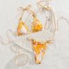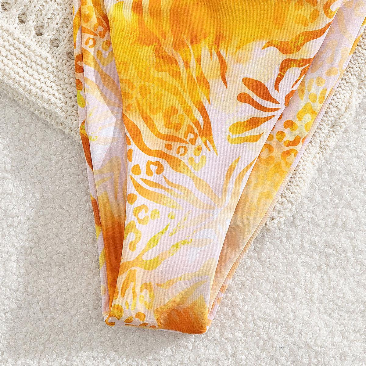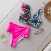Bikini de Tres Puntos Estampado Fresco y Sencillo con Volantes y Multitirantes Sexy Comercio Exterior 2025 Nuevo Traje de Baño de Dos Piezas