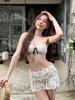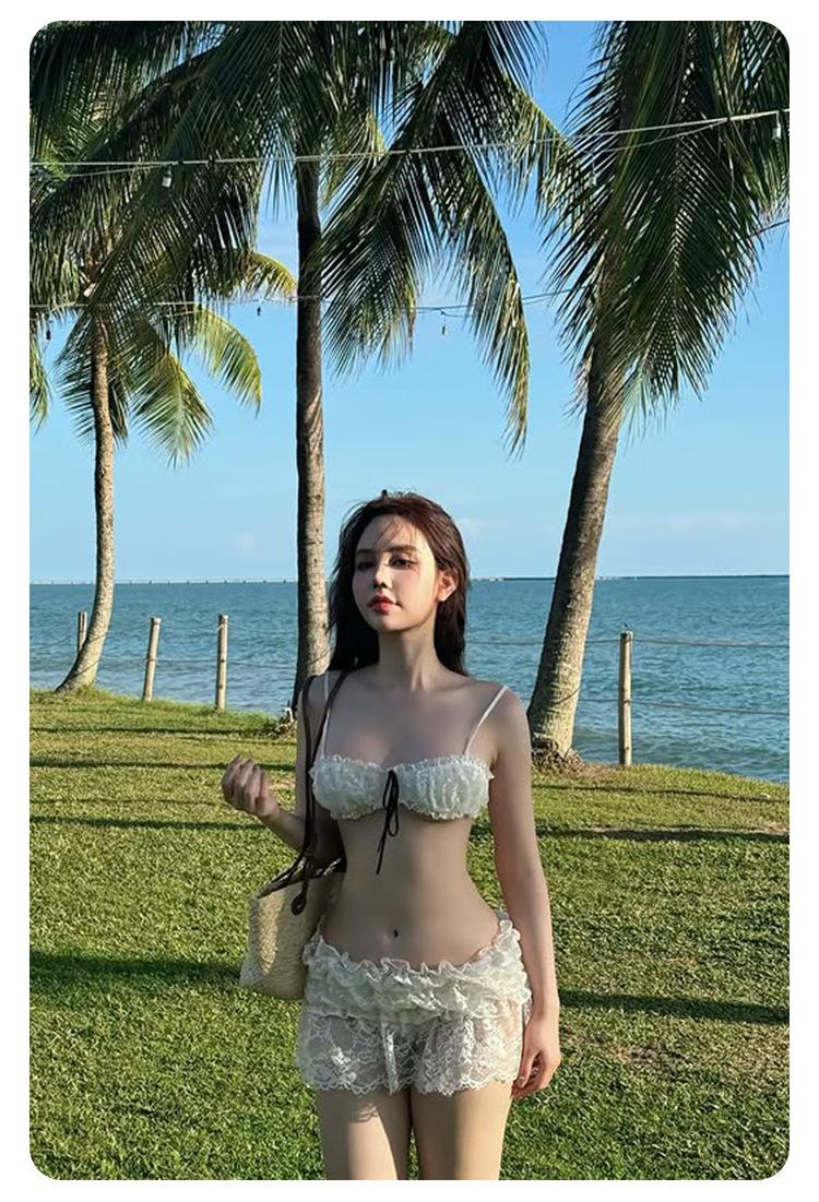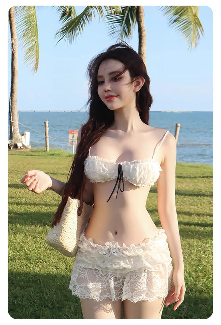 Traje de baño bikini estilo ins para mujer dividido deseo puro aguas termales encaje traje de baño niña dulce pecho pequeño traje de baño mujer