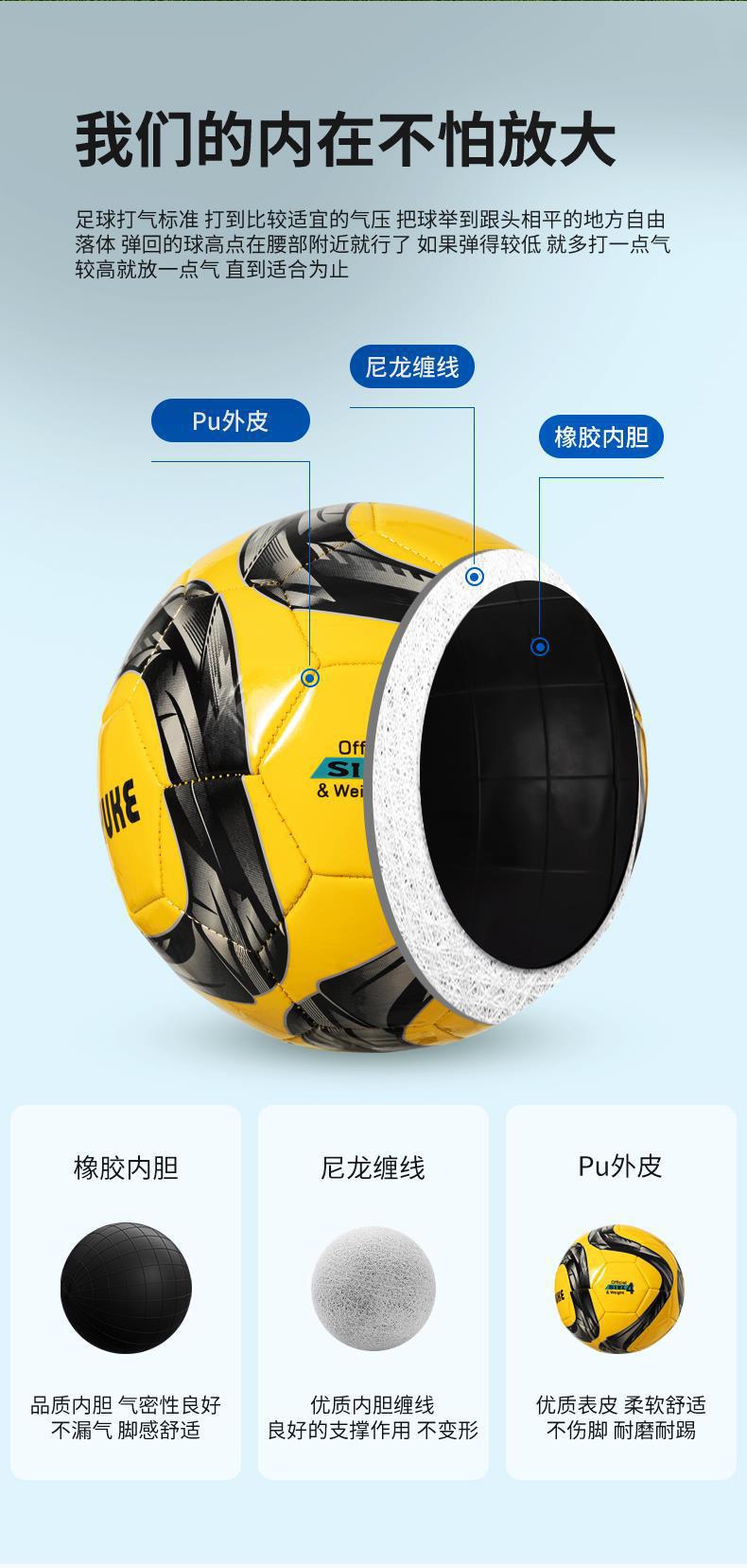 Blue and white size 4 (suitable for youth balls for ages 6-12) -- pvc non-peeling