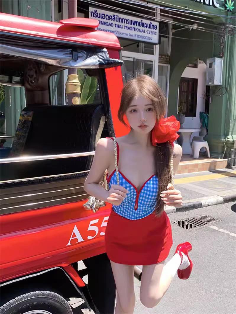 Traje de baño deportivo de una pieza de verano para buceo, para vacaciones, aguas termales, junto al mar, de alta gama, de dos piezas, sexy, sin espalda