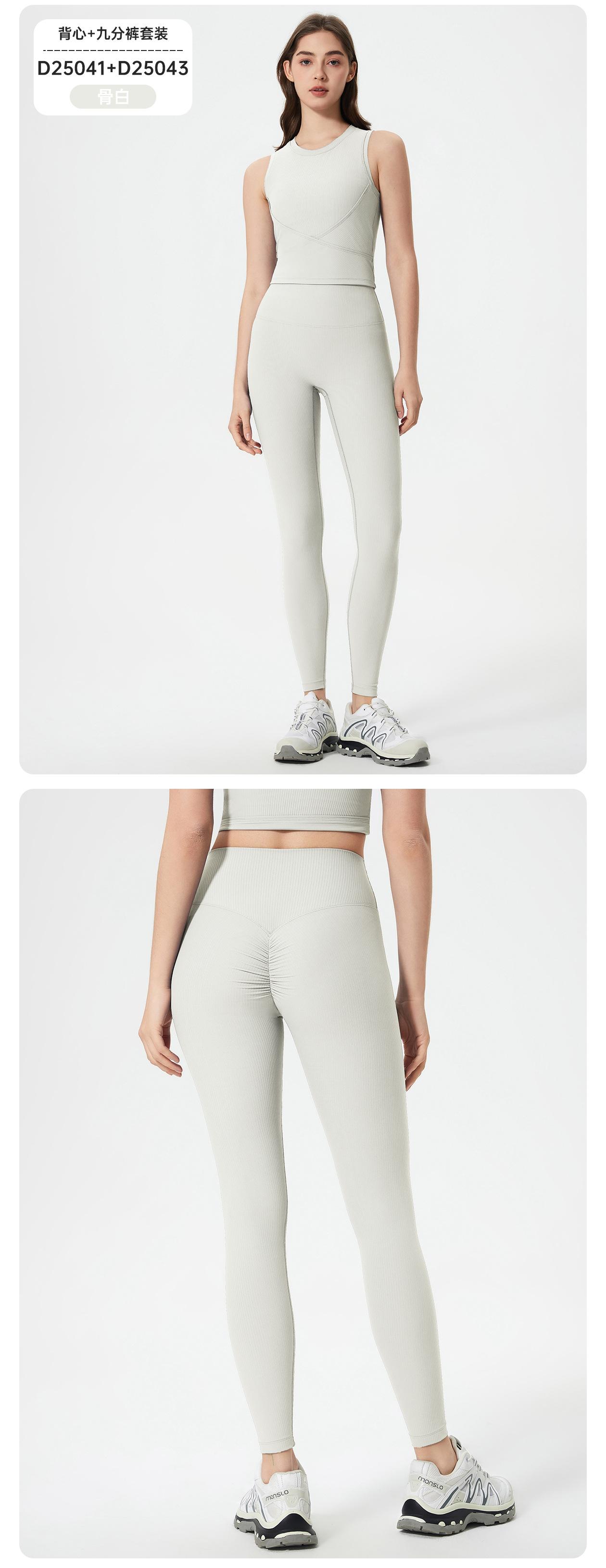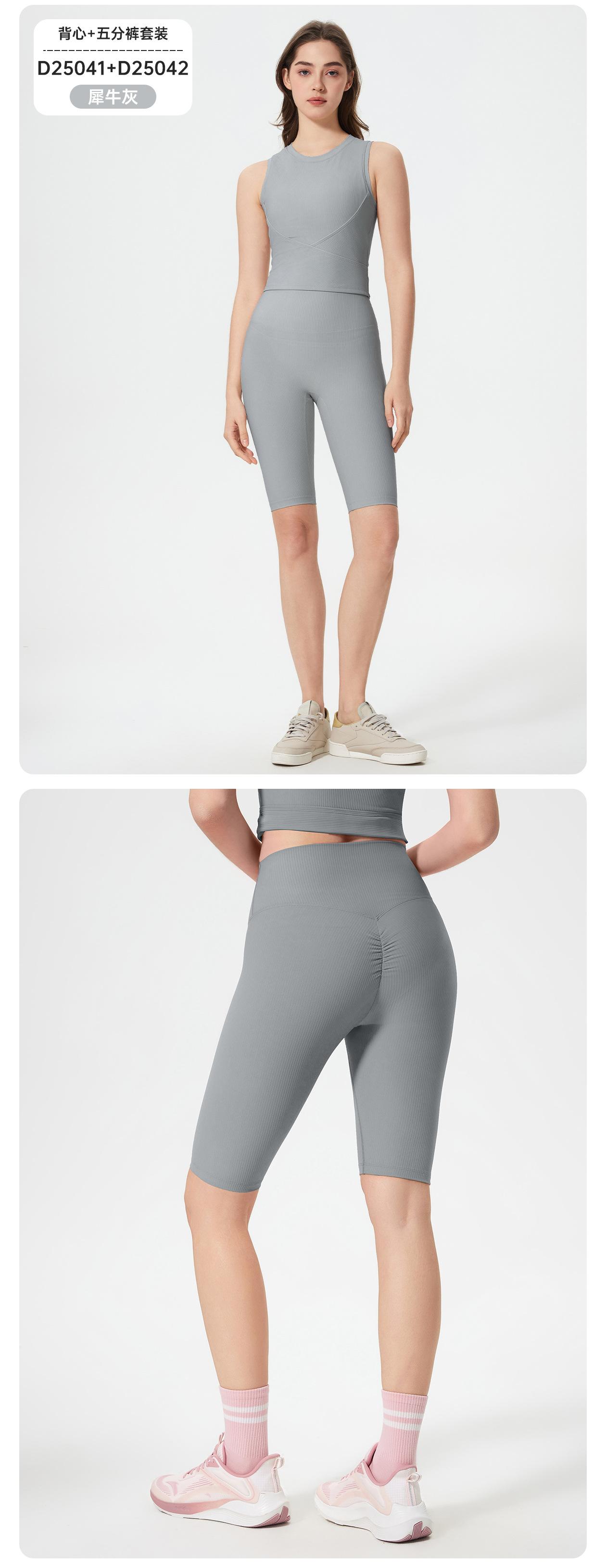 Traje Chaleco Deportivo para Mujer, Estilo Corto con Almohadillas en el Pecho, Chaleco de Yoga, Cintura Alta, Levantamiento de Cadera, Pantalones de Fitness Plisados, Set Completo