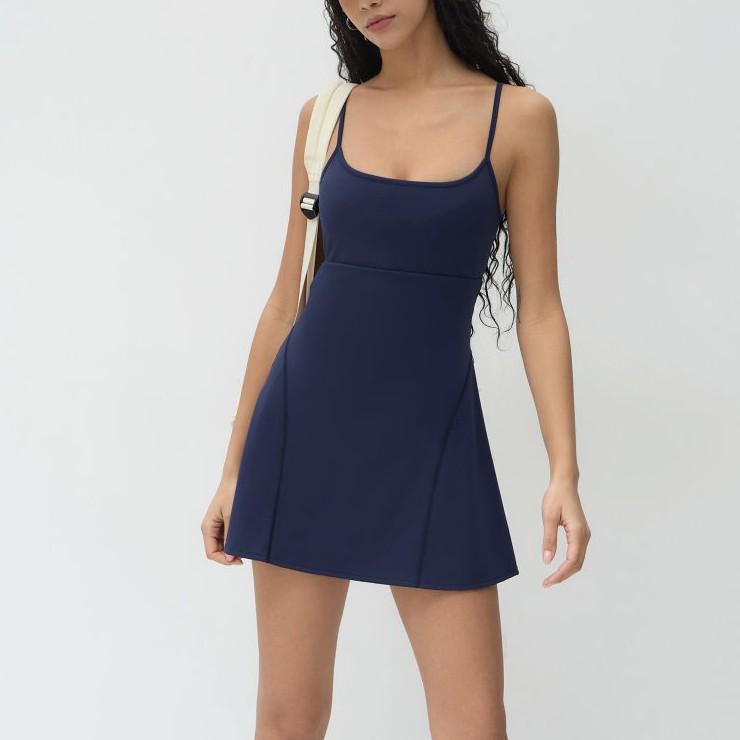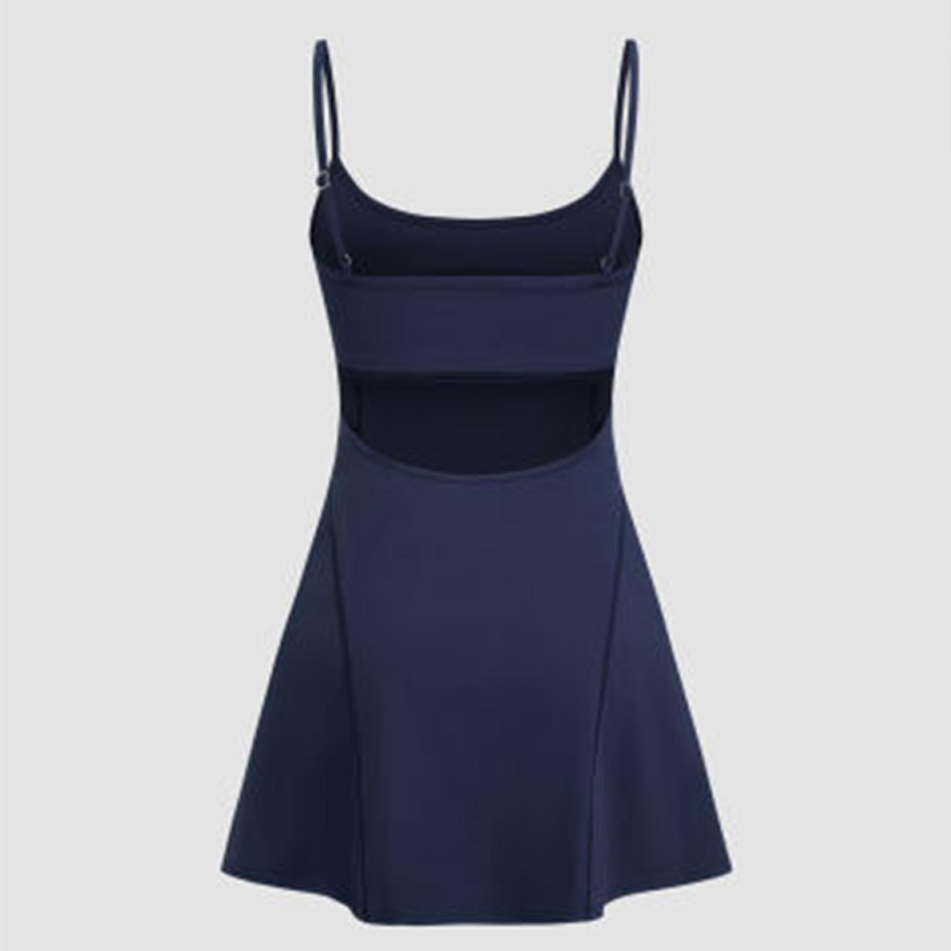 Vestido Deportivo Transfronterizo Antiexposición con Almohadilla en el Pecho, Transpirable para Exteriores, Tirantes Espagueti para Golf, Falda de Tenis Yoga sin Espalda