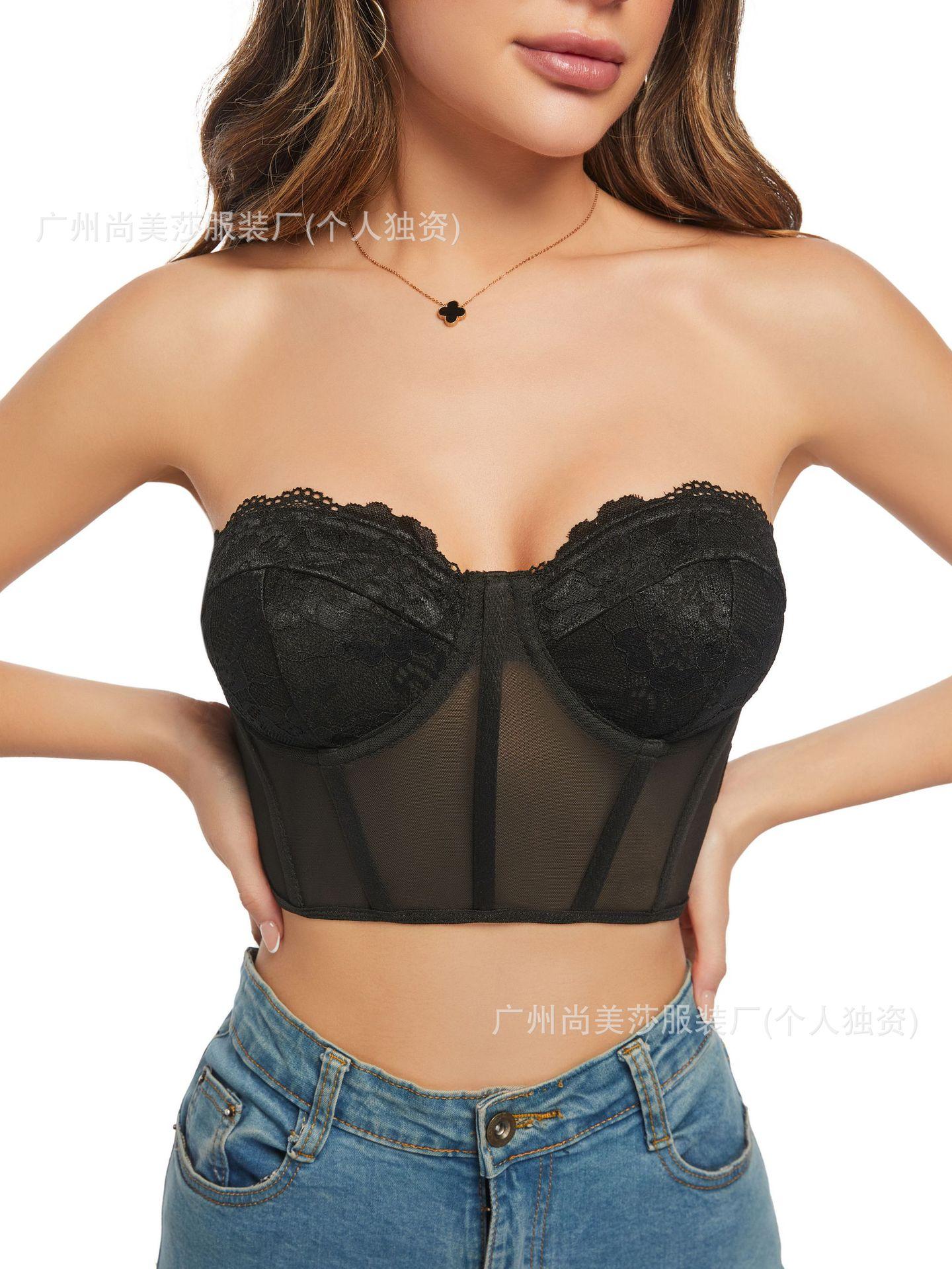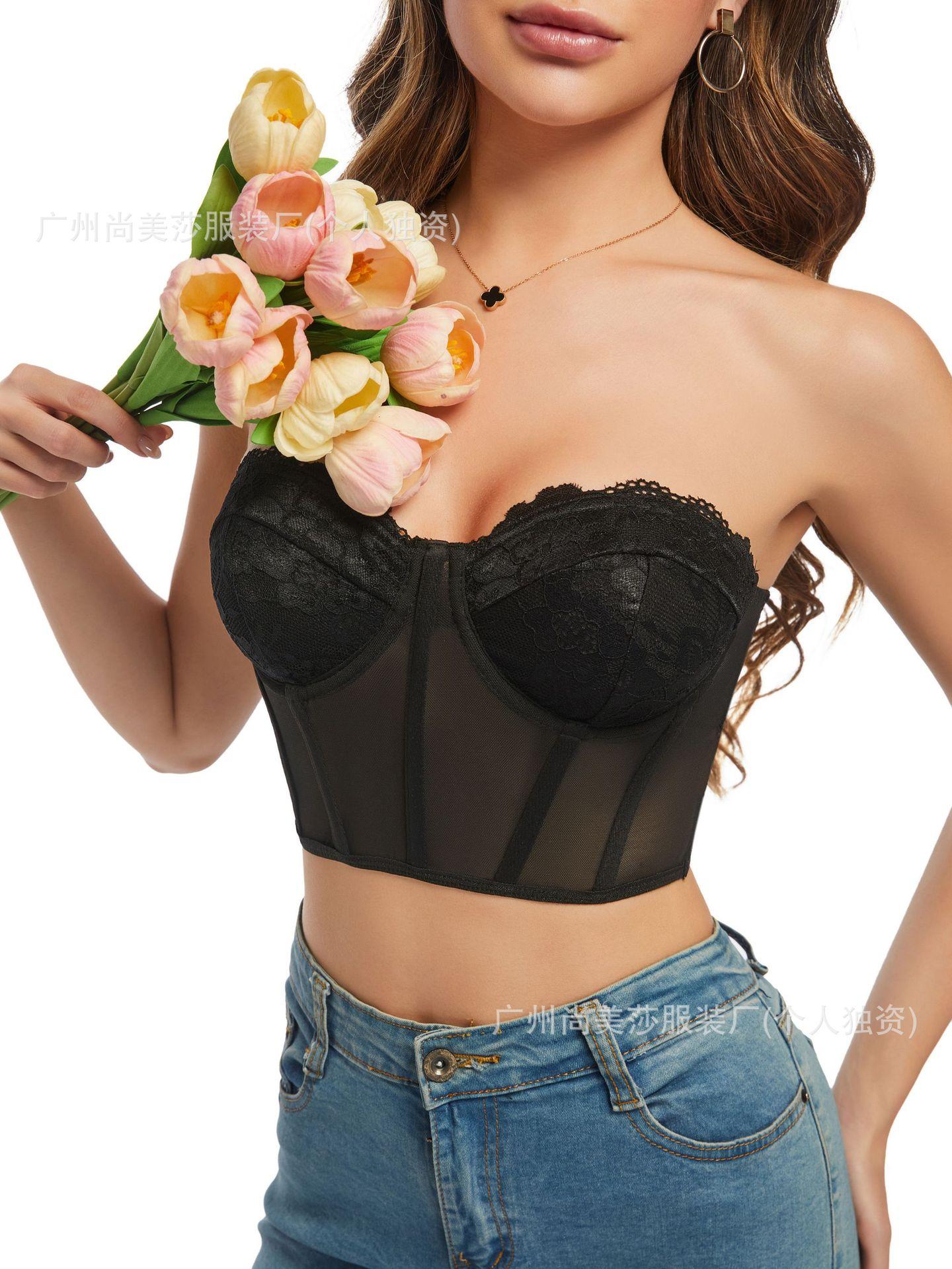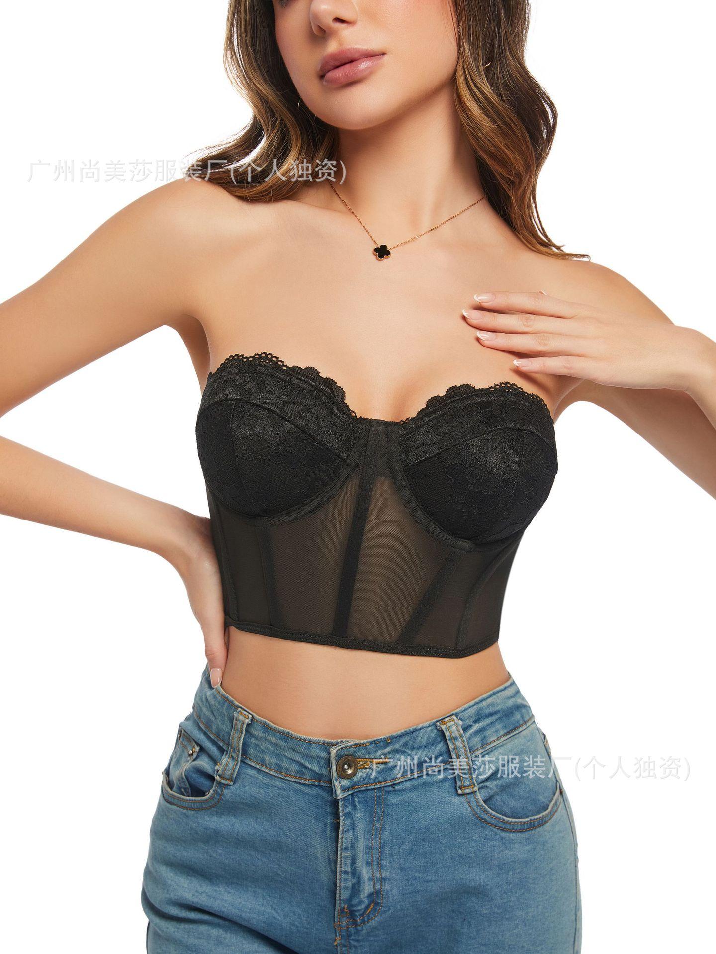 Amazon Transfronterizo para Mujer Chicas Calientes Deseo Puro Encaje Puntadas Aro de Acero Corsé Ballena Espalda Descubierta Ajustado Envoltura de Pecho Chaleco Pequeño