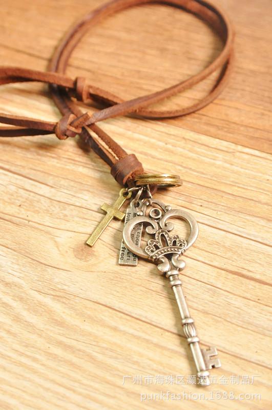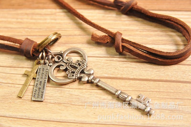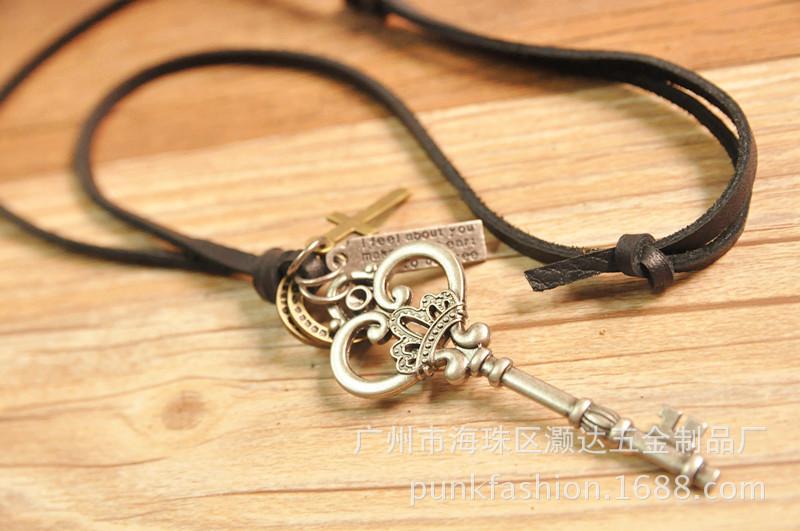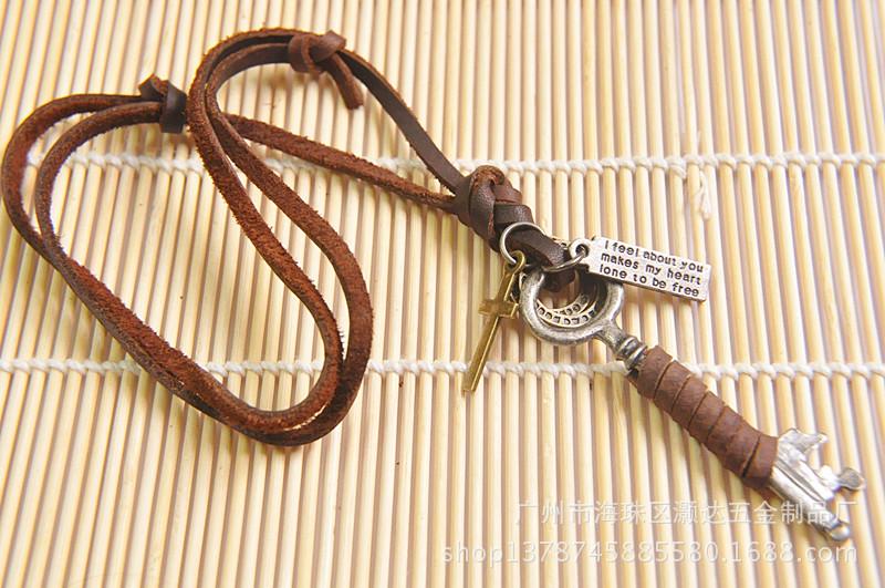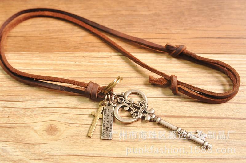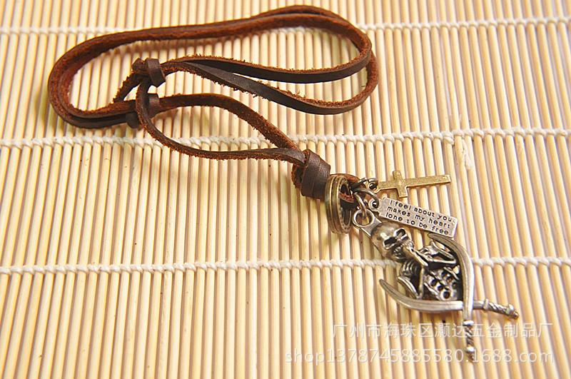El colgante puede llegar al abdomen(Puedes tirar del nudo para ajustar la longitud de la cadena de cuero a voluntad)