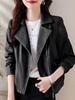 Chaqueta de Cuero para Mujer 2025 Primavera y Otoño Nueva Estilo Coreano Suelta Corta Moderna Solapa Chaqueta de Cuero Versátil Top Marea