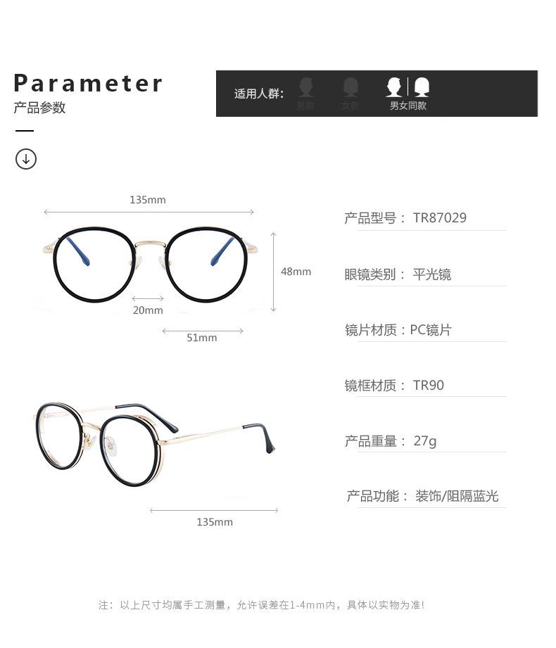 Gafas de montura tr90 nuevas transfronterizas para mujer, montura redonda retro, montura para gafas de miopía, lentes anti luz azul
