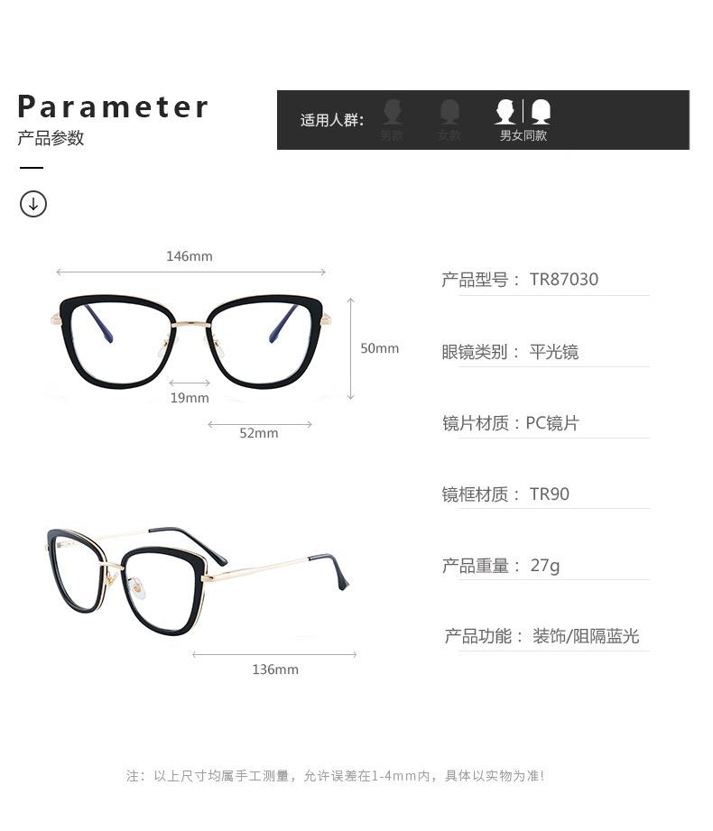 Nuevos lentes de moda personalizados tr90 retro de montura completa transfronterizos para mujer de cara grande, lentes anti luz azul