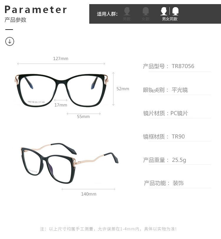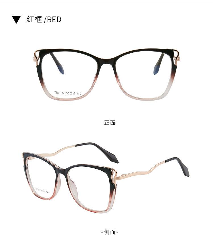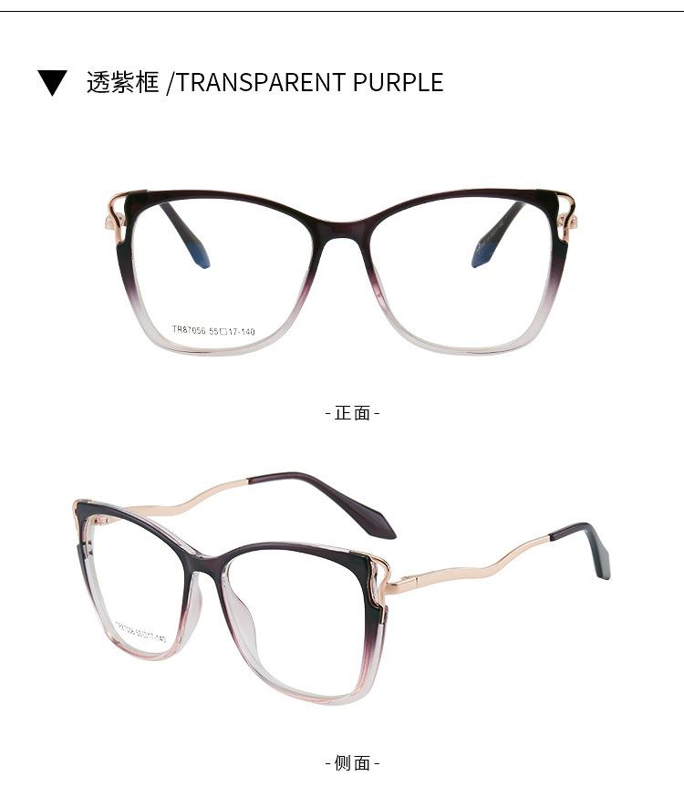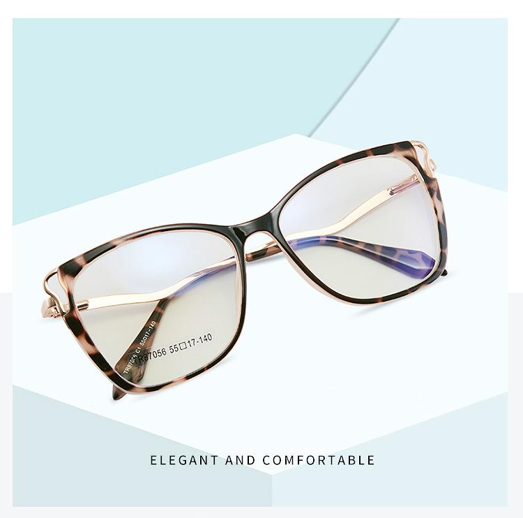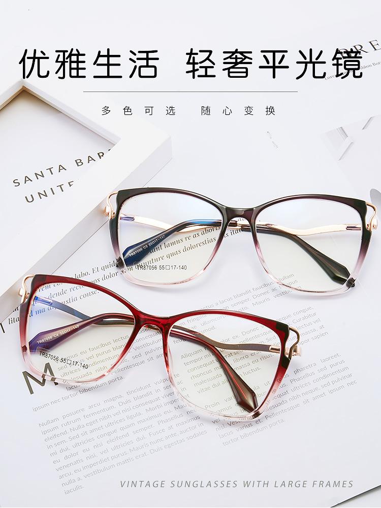7056 TR90 montura de gafas ojo de gato anti luz azul, patillas de resorte de metal, montura completa de metal, gafas de metal, venta caliente transfronteriza