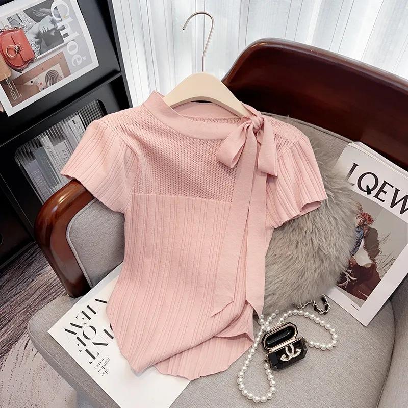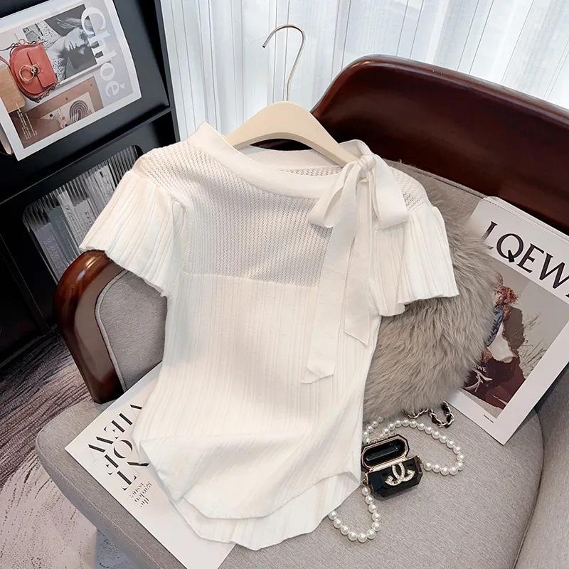 Diseño de Estilo Francés Nicho Tejido de Punto para Mujer Verano 2024 Nuevo Chica Dulce Picante Ajustado Ajustado Chic Top de Abrigo