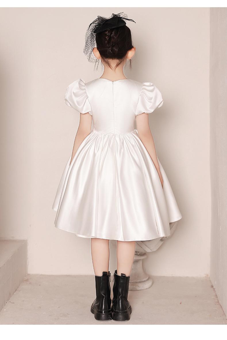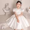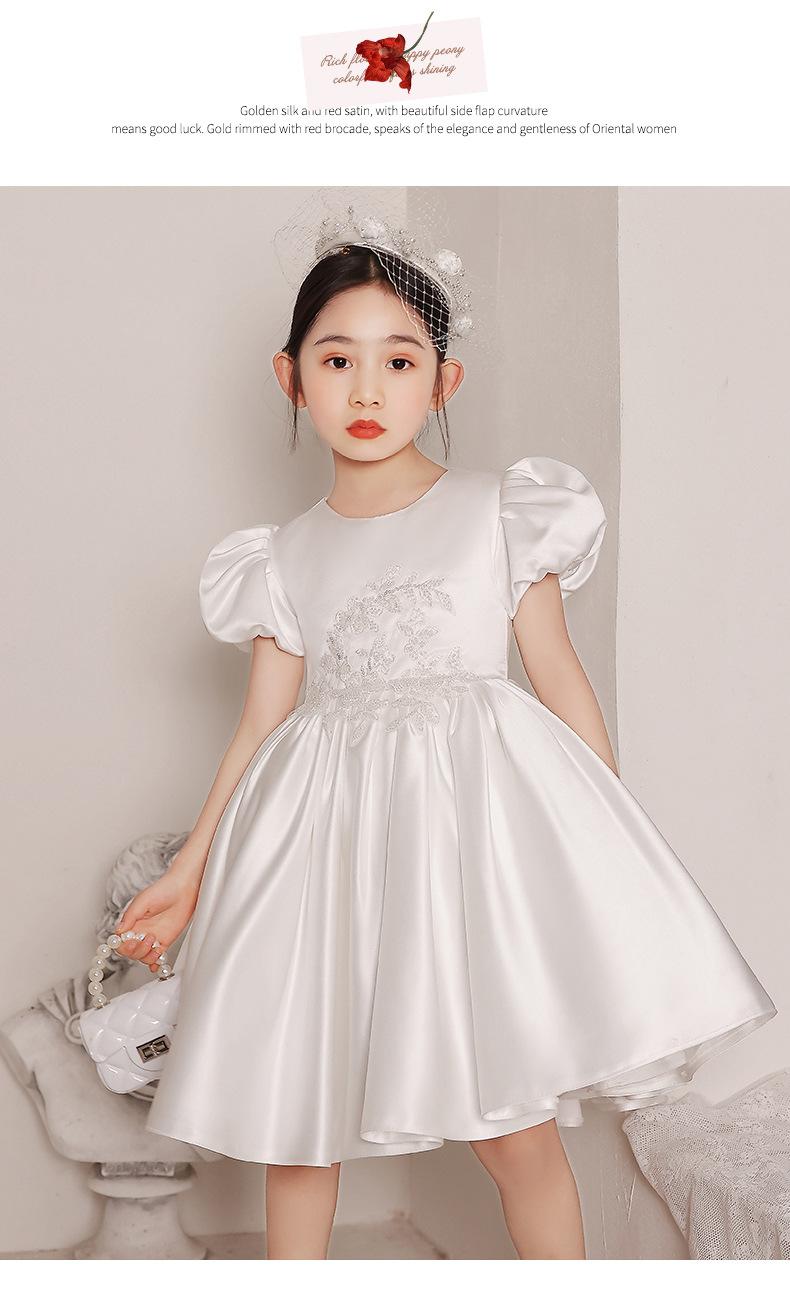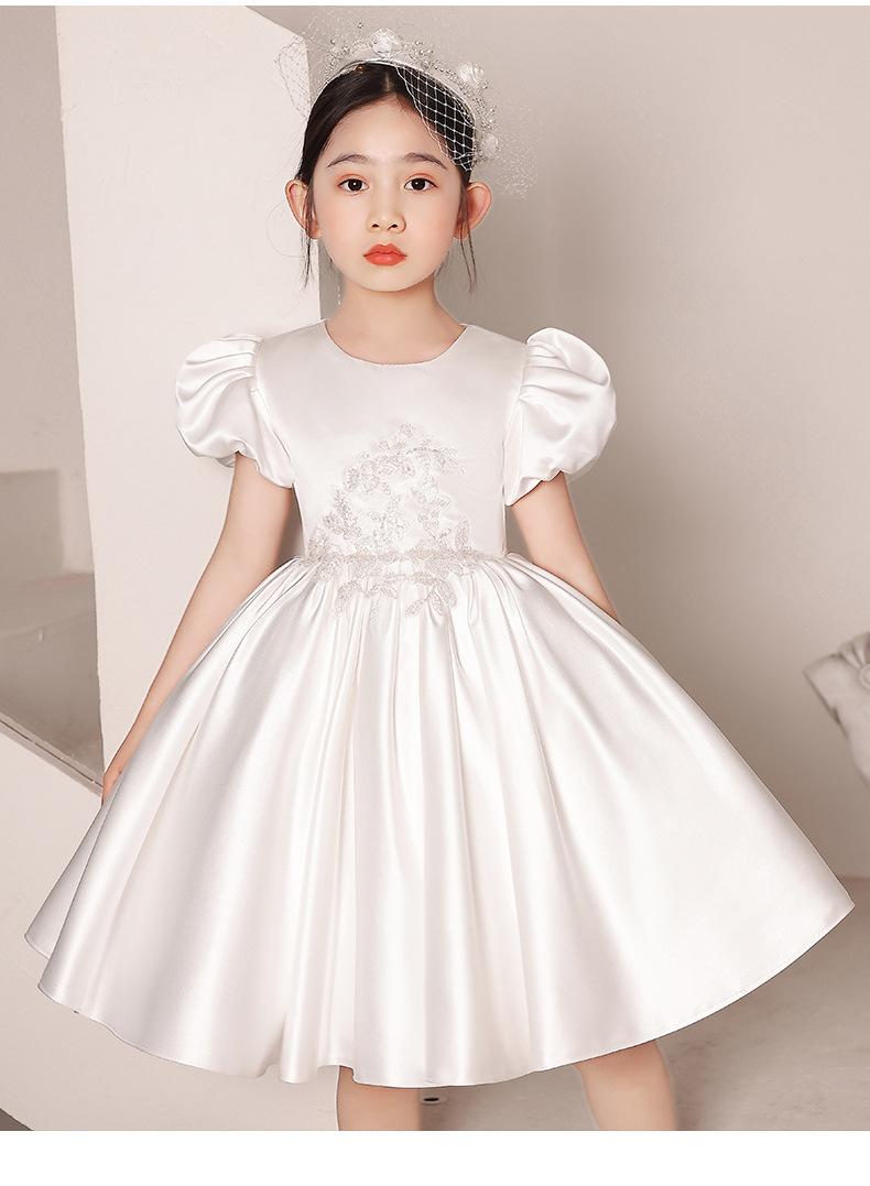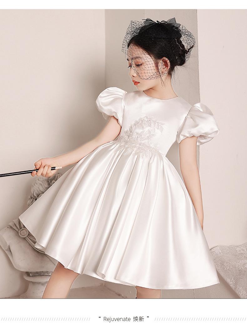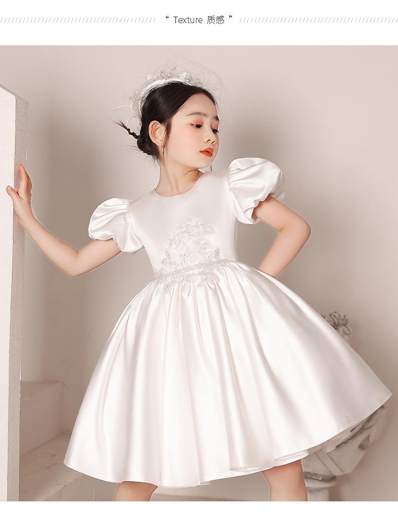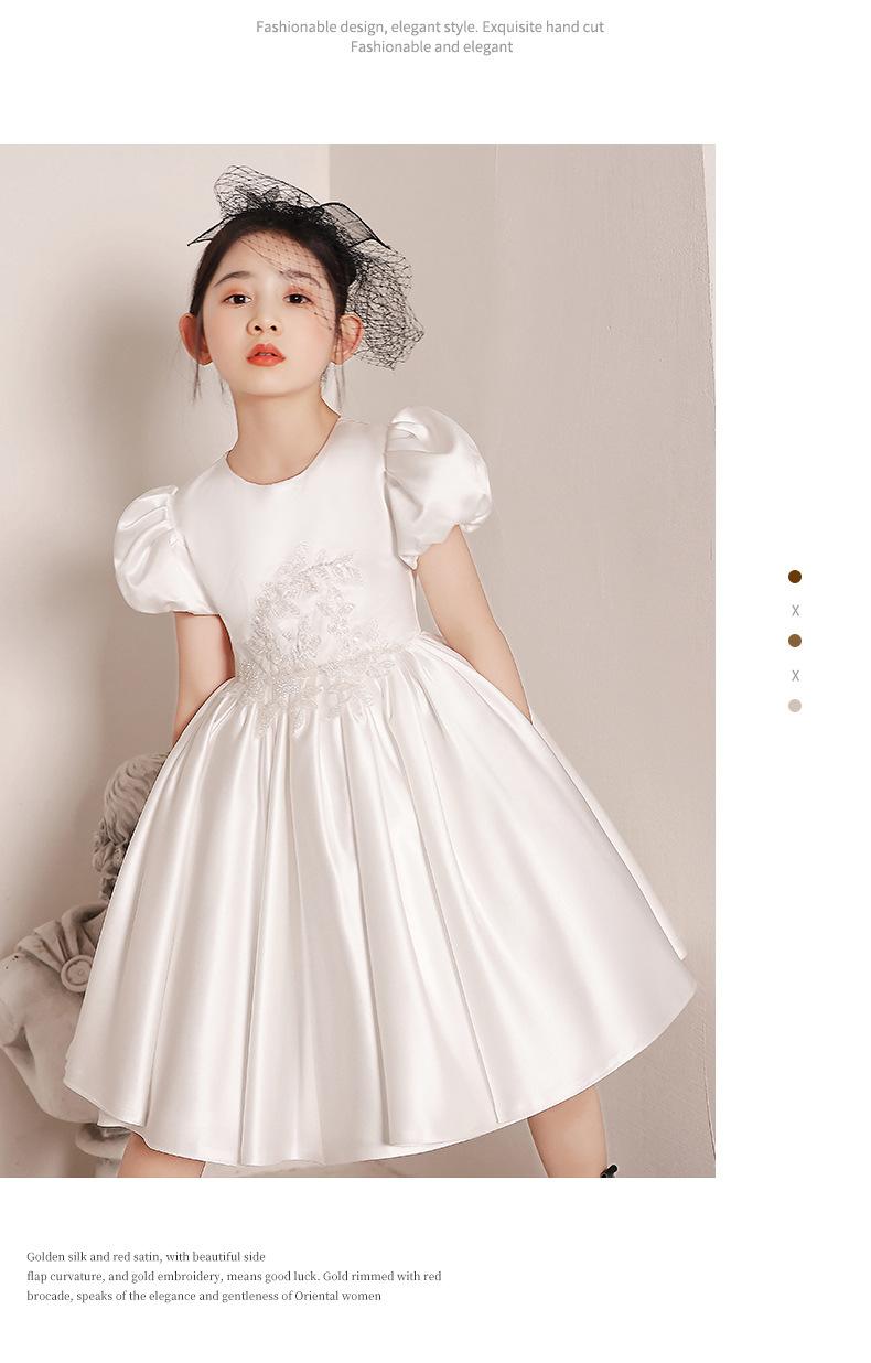 Vestido de Boda para Niña de las Flores de Satén Blanco Niña Pequeña Niños Anfitrión Cumpleaños Vestido de Princesa Niñas Tocar el Piano Verano