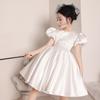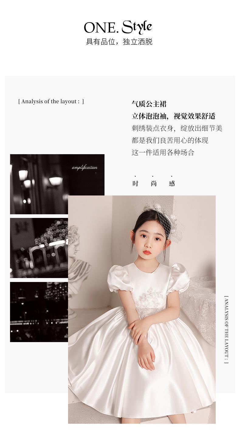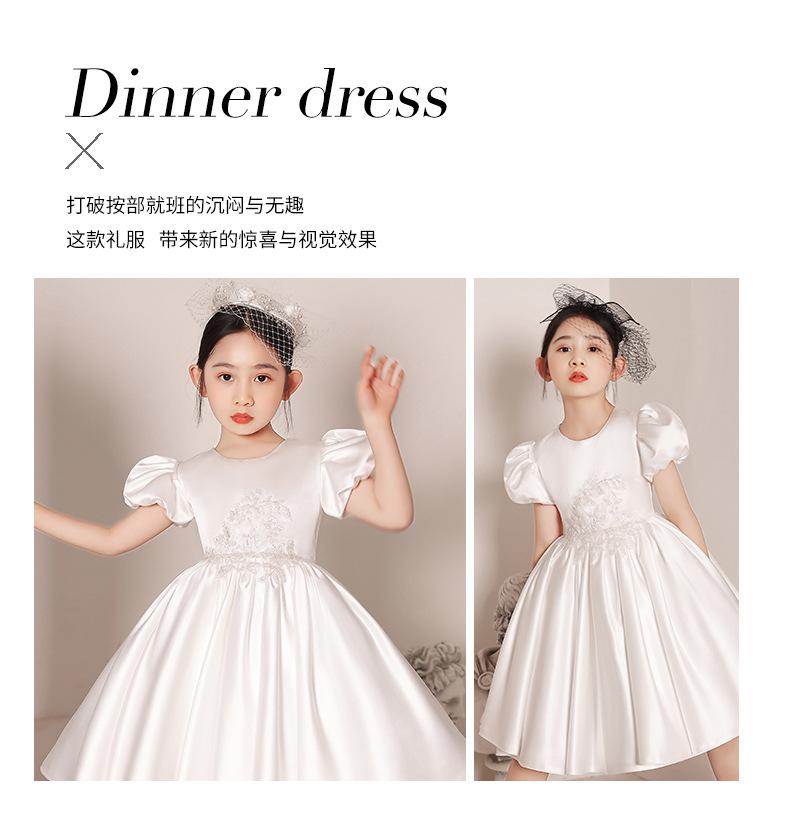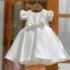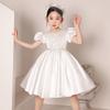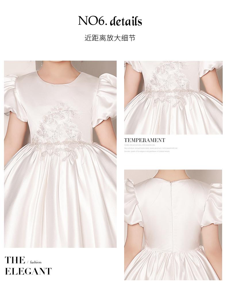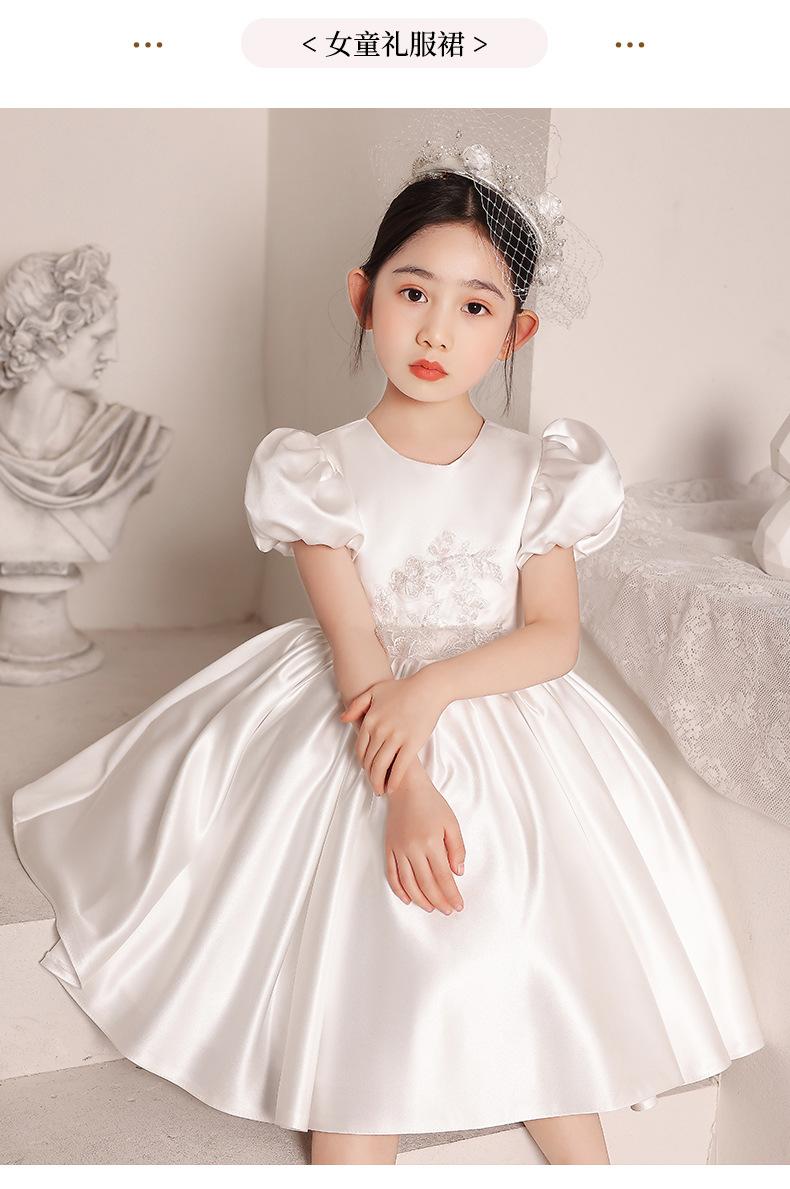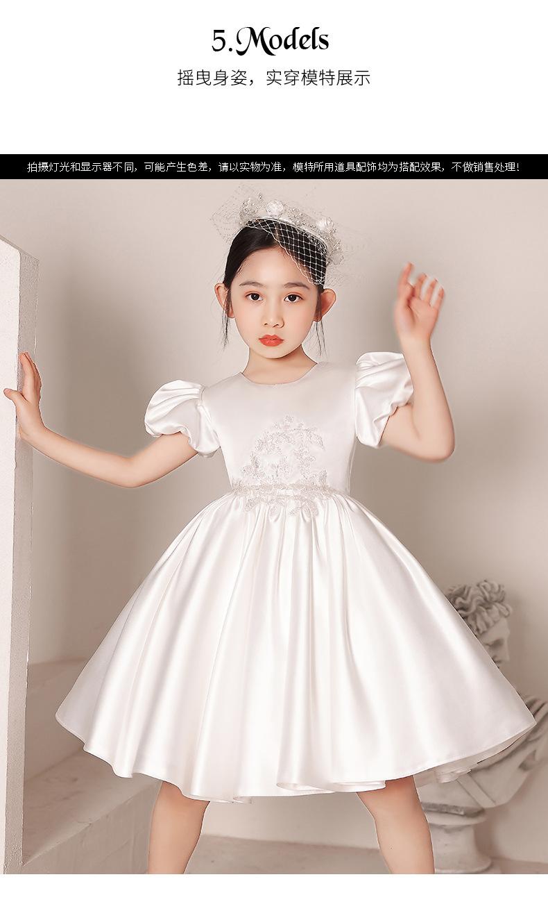 Vestido de Boda para Niña de las Flores de Satén Blanco Niña Pequeña Niños Anfitrión Cumpleaños Vestido de Princesa Niñas Tocar el Piano Verano