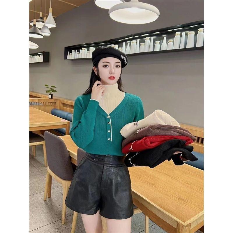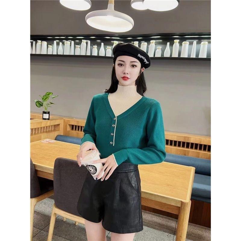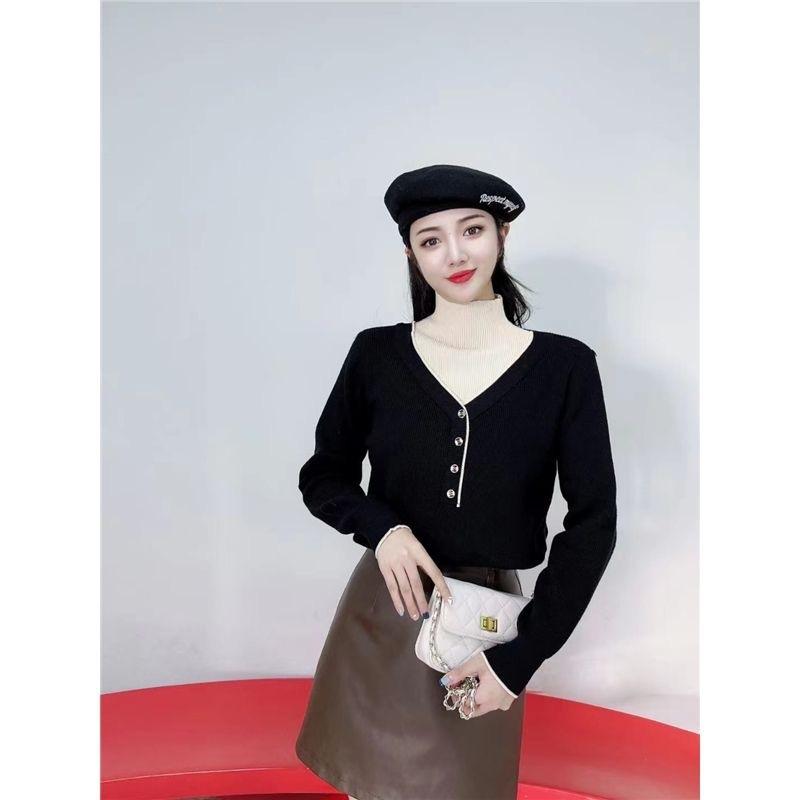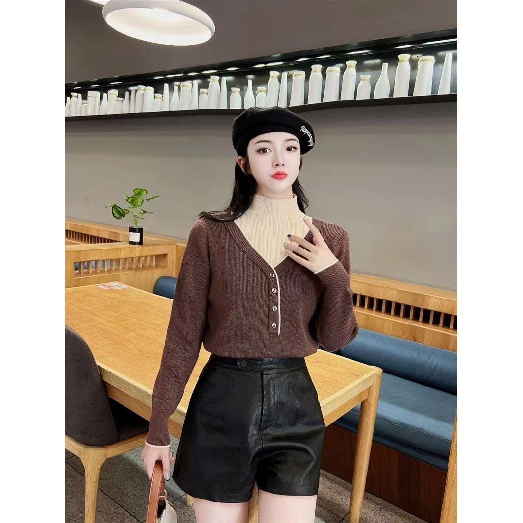 Suéter de cuello alto medio holgado versátil de estilo extranjero para mujer, Primavera y Otoño 2023
