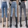 Pantalones de Mezclilla Delgados de Cintura Alta, Ajustados, Adelgazantes, Elásticos, Talla Grande, Color Sólido, Otoño, Tipo Lápiz, 2023 Nuevos, Delgados, para Mujer a la Moda