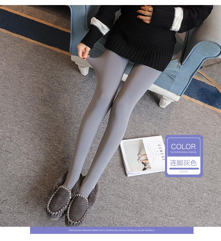 Invierno más calcetines acolchados de terciopelo nailon mujeres embarazadas un pantalón abdominal cintura alta pies delgados delgados más terciopelo 450g