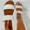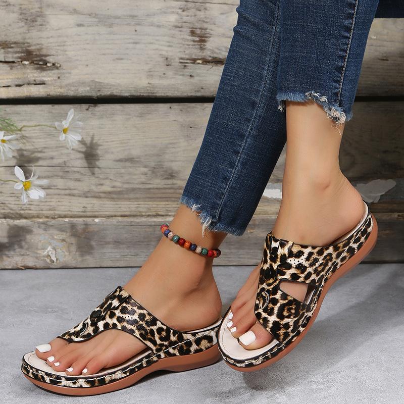 Pantuflas de Talla Grande para Comercio Exterior 2022 Primavera y Verano Nuevas Sandalias de Punta Redonda con Remaches y Clip para el Dedo, de Suela Gruesa, Pantuflas de Cuña de Leopardo para Mujer