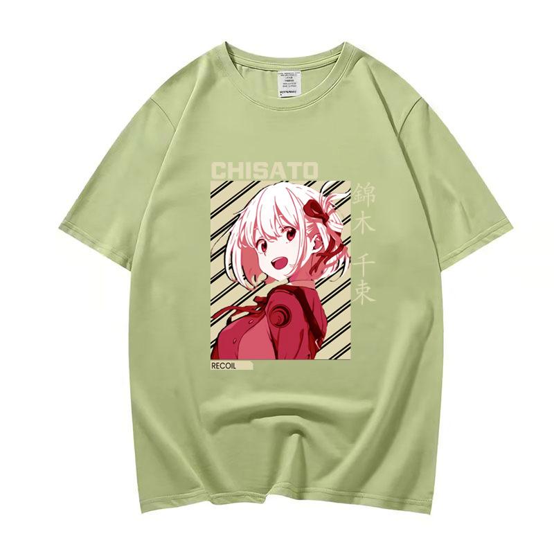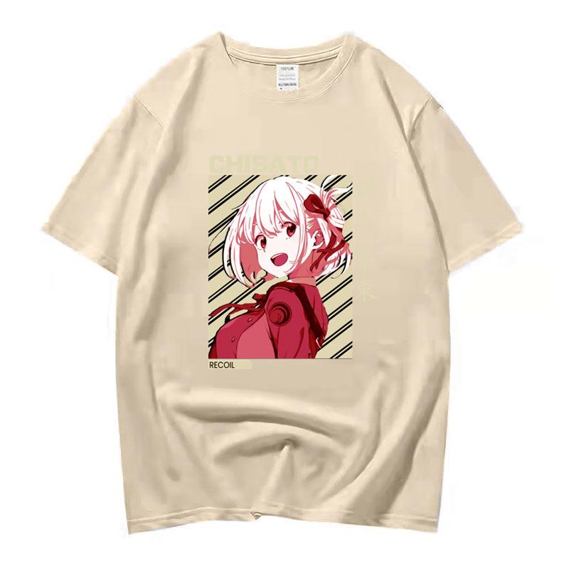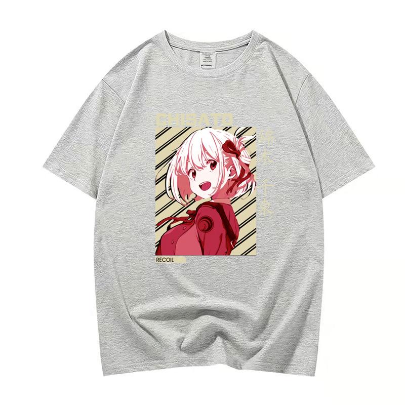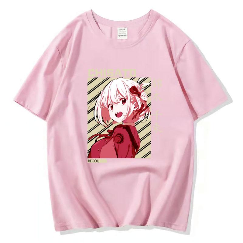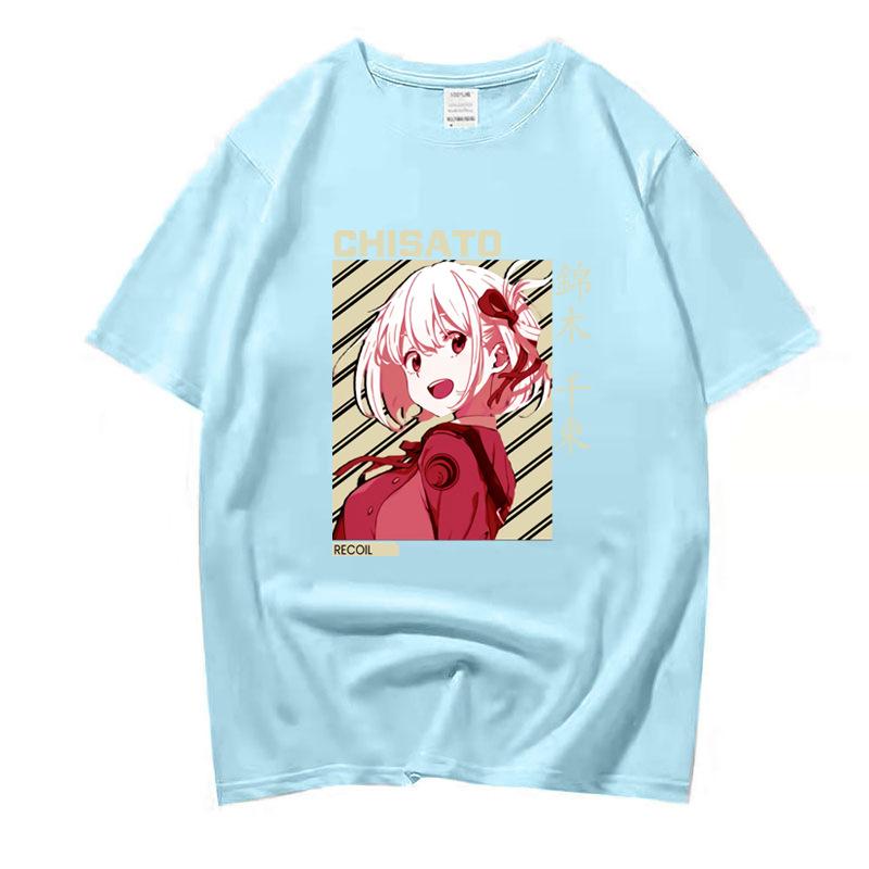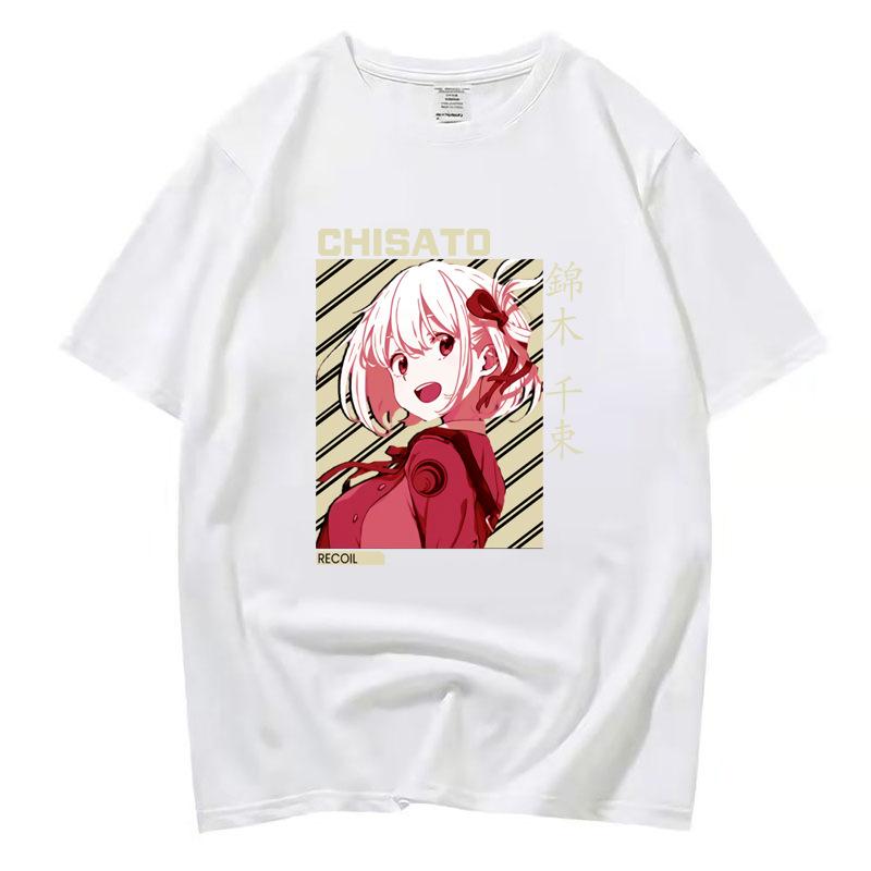 Anime Lycoris Recoil Licorice Camiseta Cuello Redondo Estampado de Letras Verano Hombre y Mujer Manga Corta Algodón