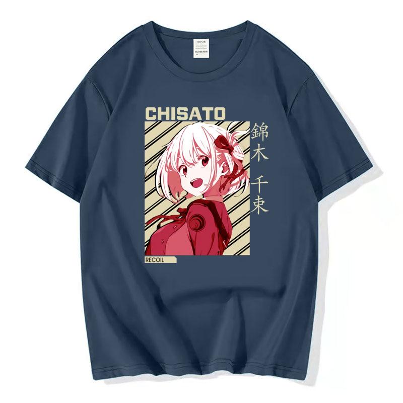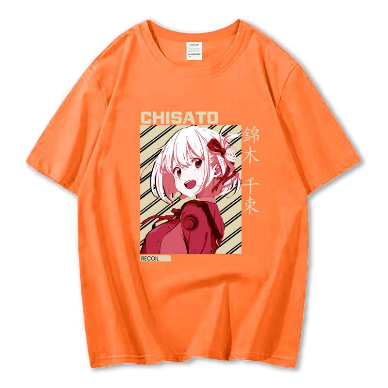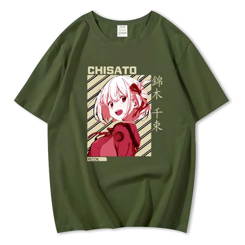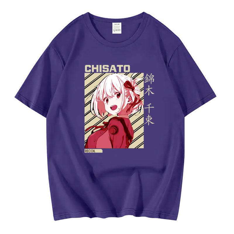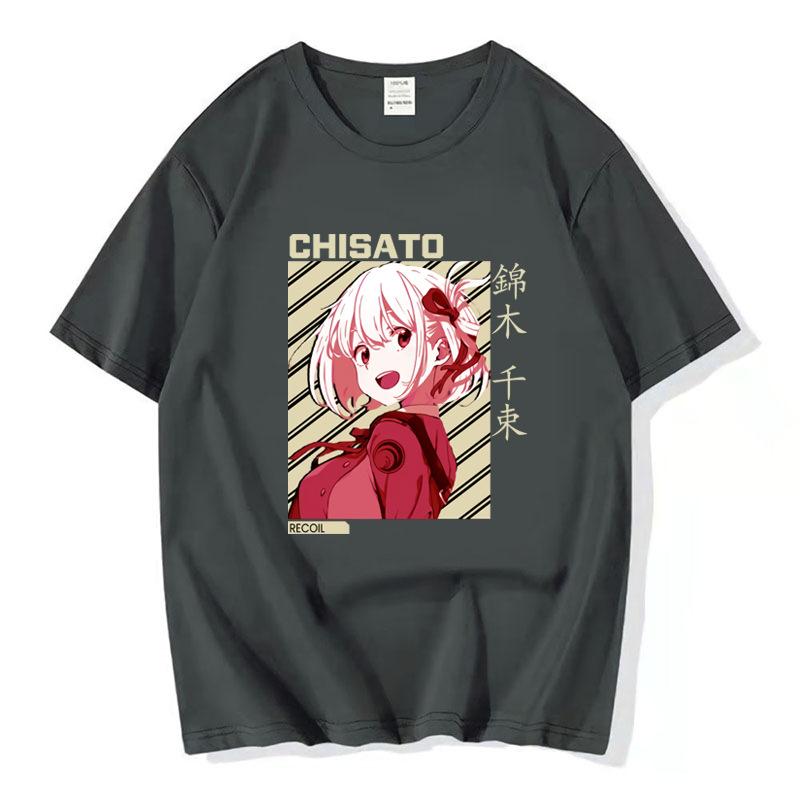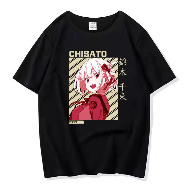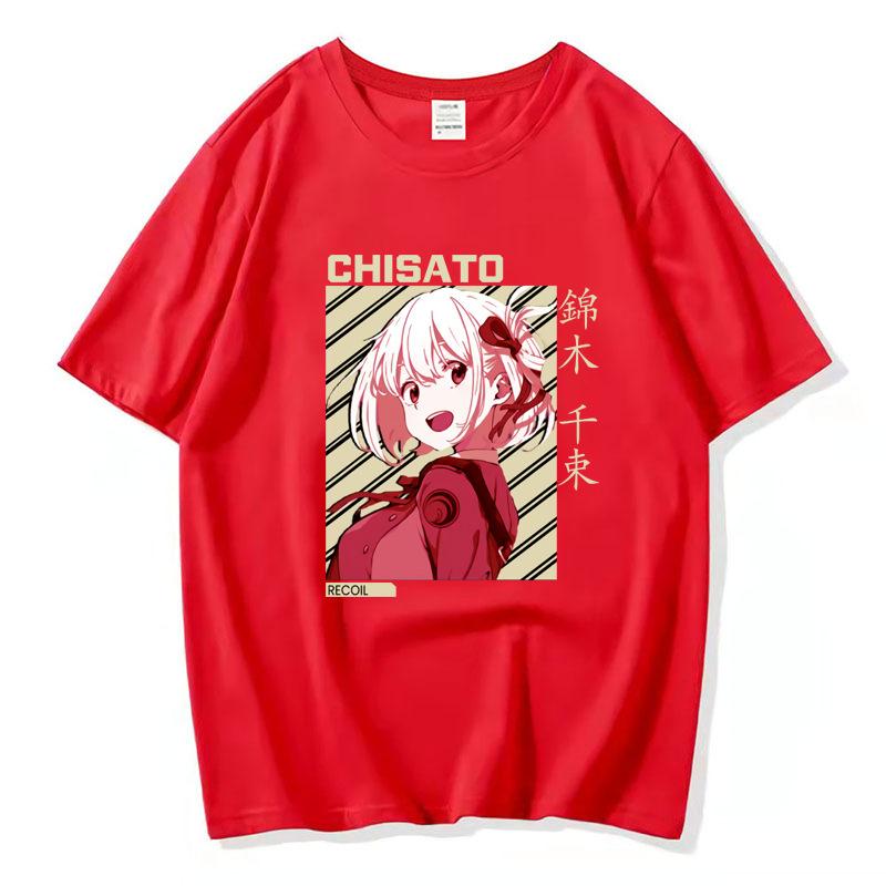 Anime Lycoris Recoil Licorice Camiseta Cuello Redondo Estampado de Letras Verano Hombre y Mujer Manga Corta Algodón