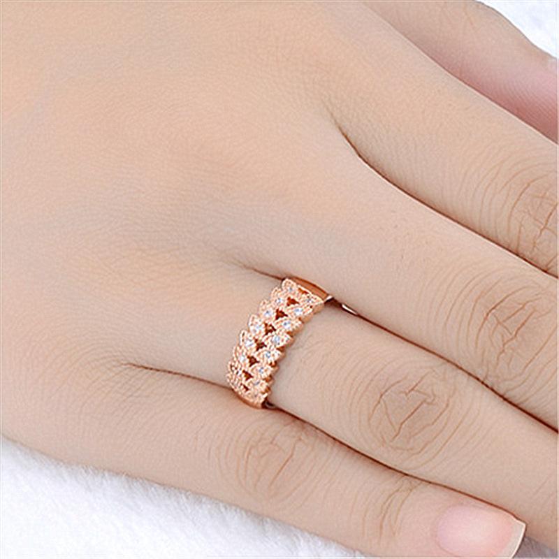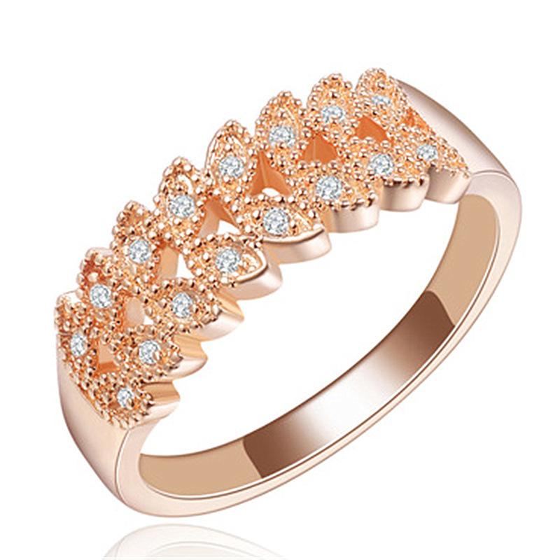 AliExpress gran venta popular europeo y americano chapado en oro rosa lujo hojas textura anillo moda anillo de circón naranja